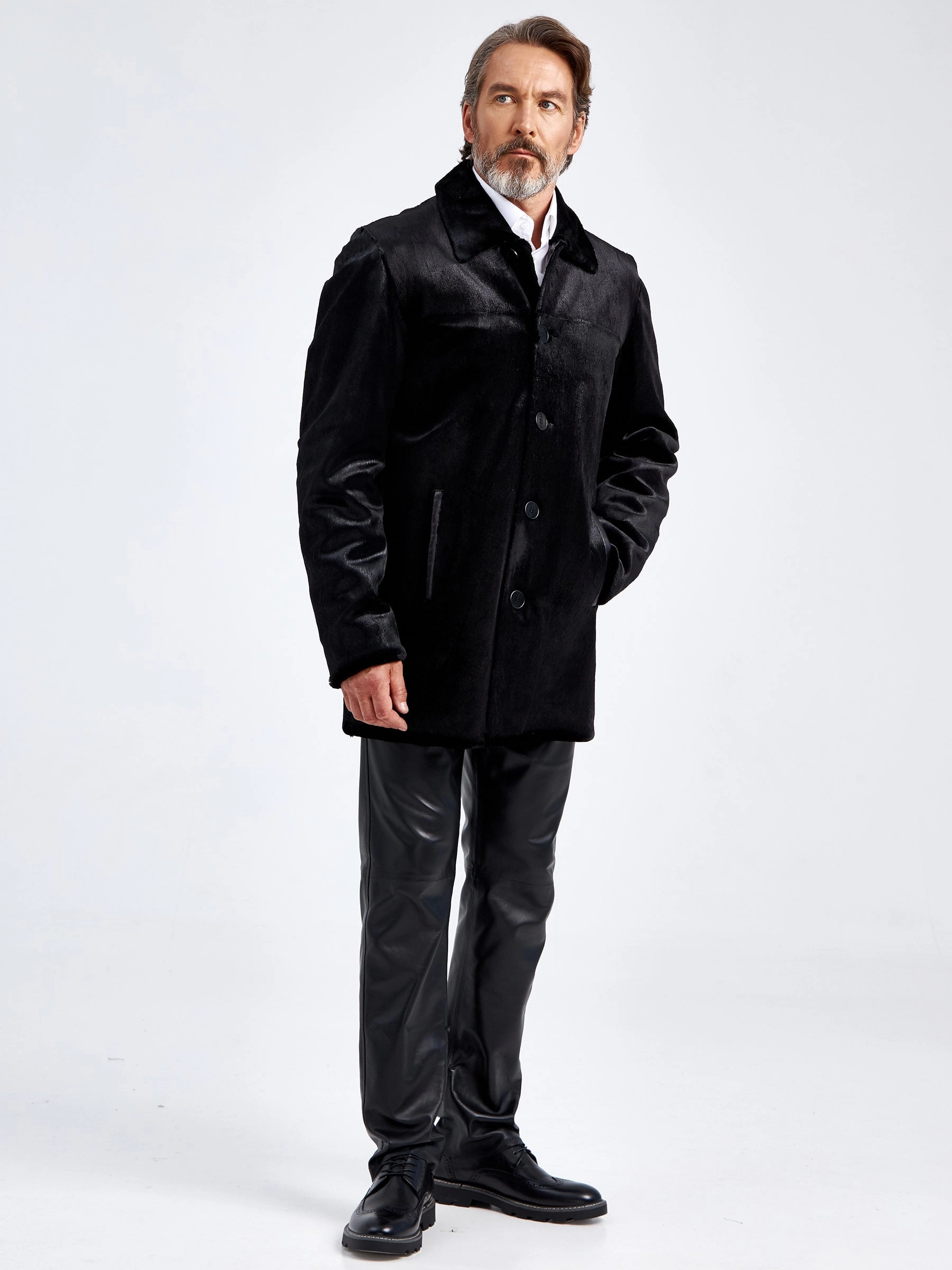 Мужская меховая куртка из меха канадской нерпы премиум класса VE-7885, черная, размер 48, артикул 40790