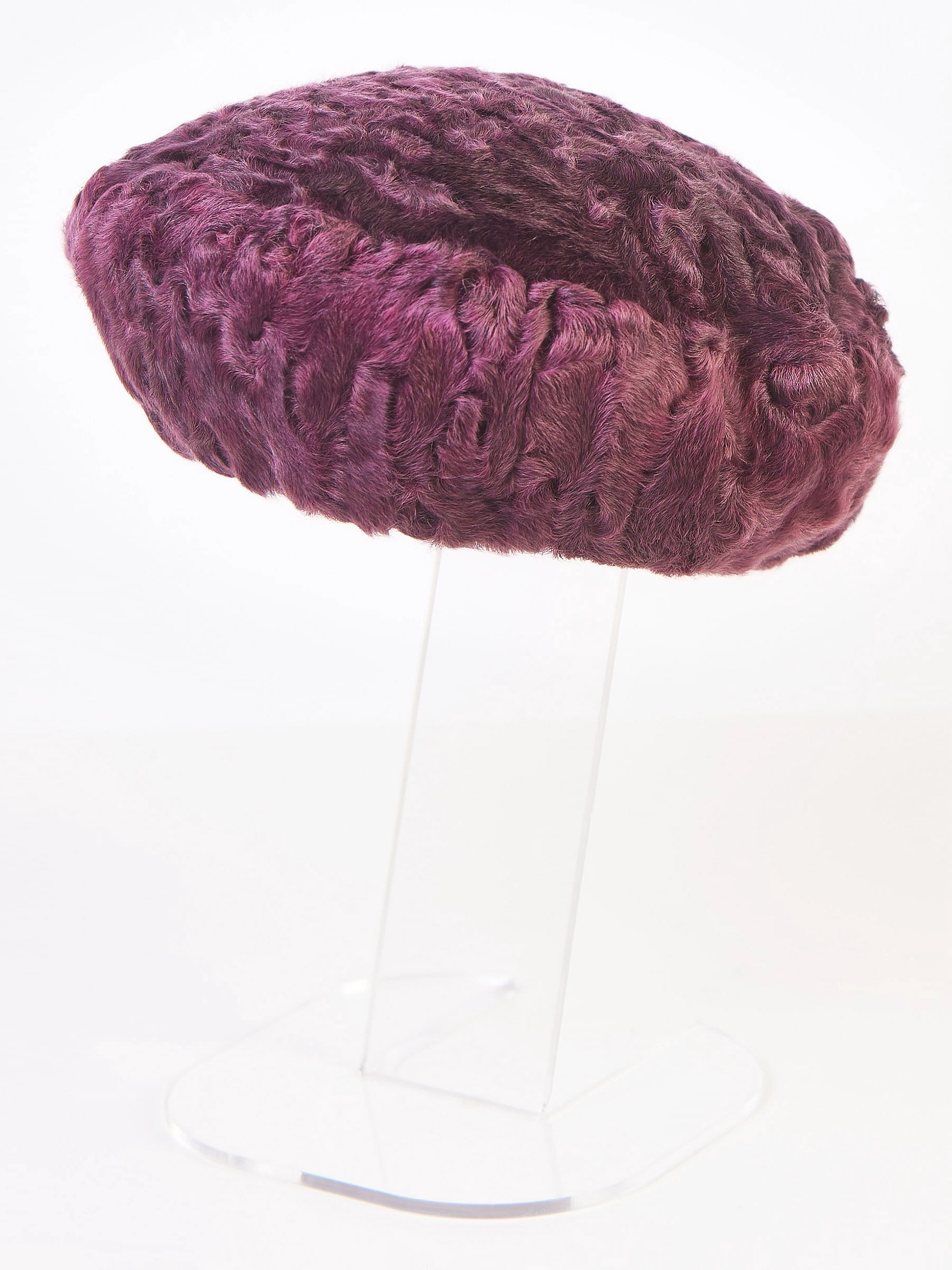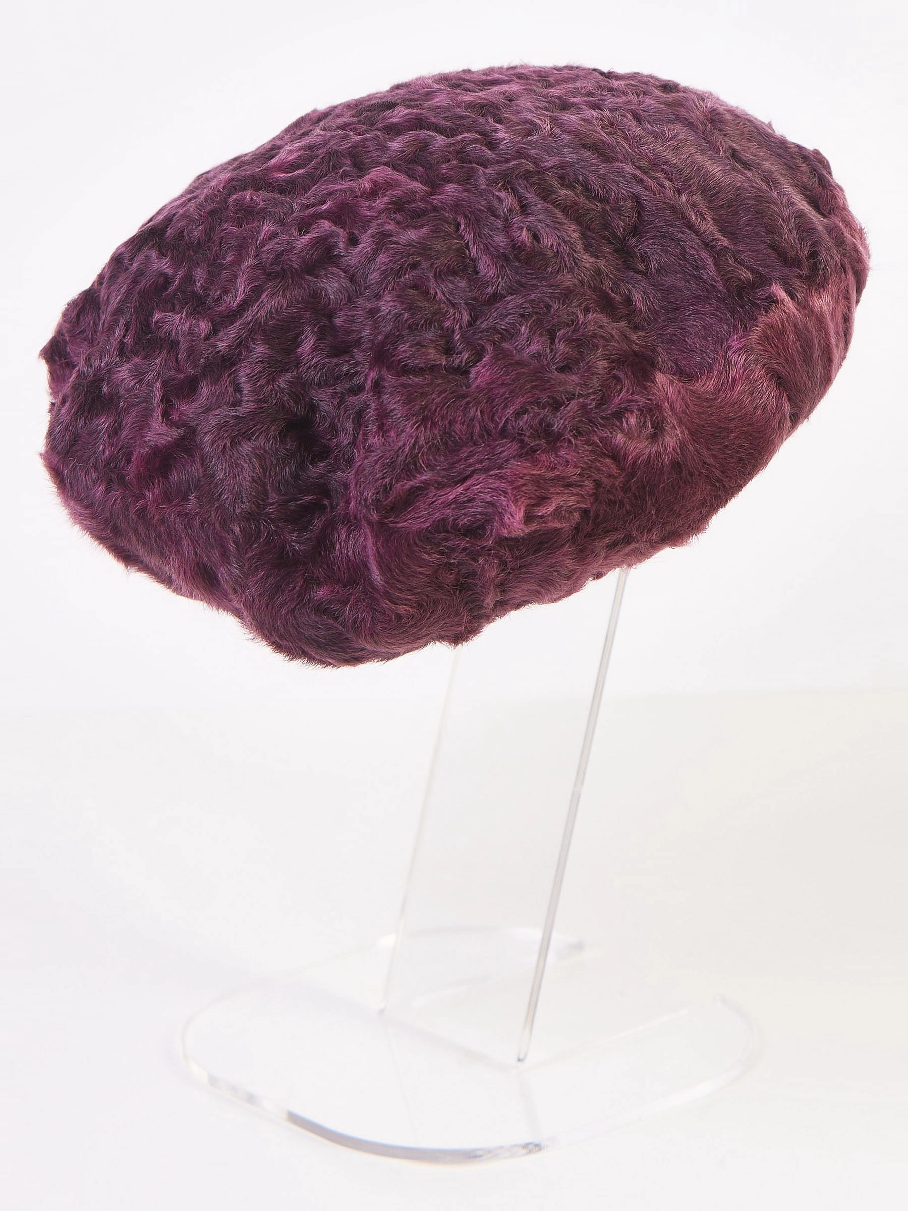 Товар меховой головной (берет) убор из меха каракуля женский м-277, фиолетовый, размер 58, артикул 51340 выполнен из каракуль. Рассчитан на сезон: весна-осень.