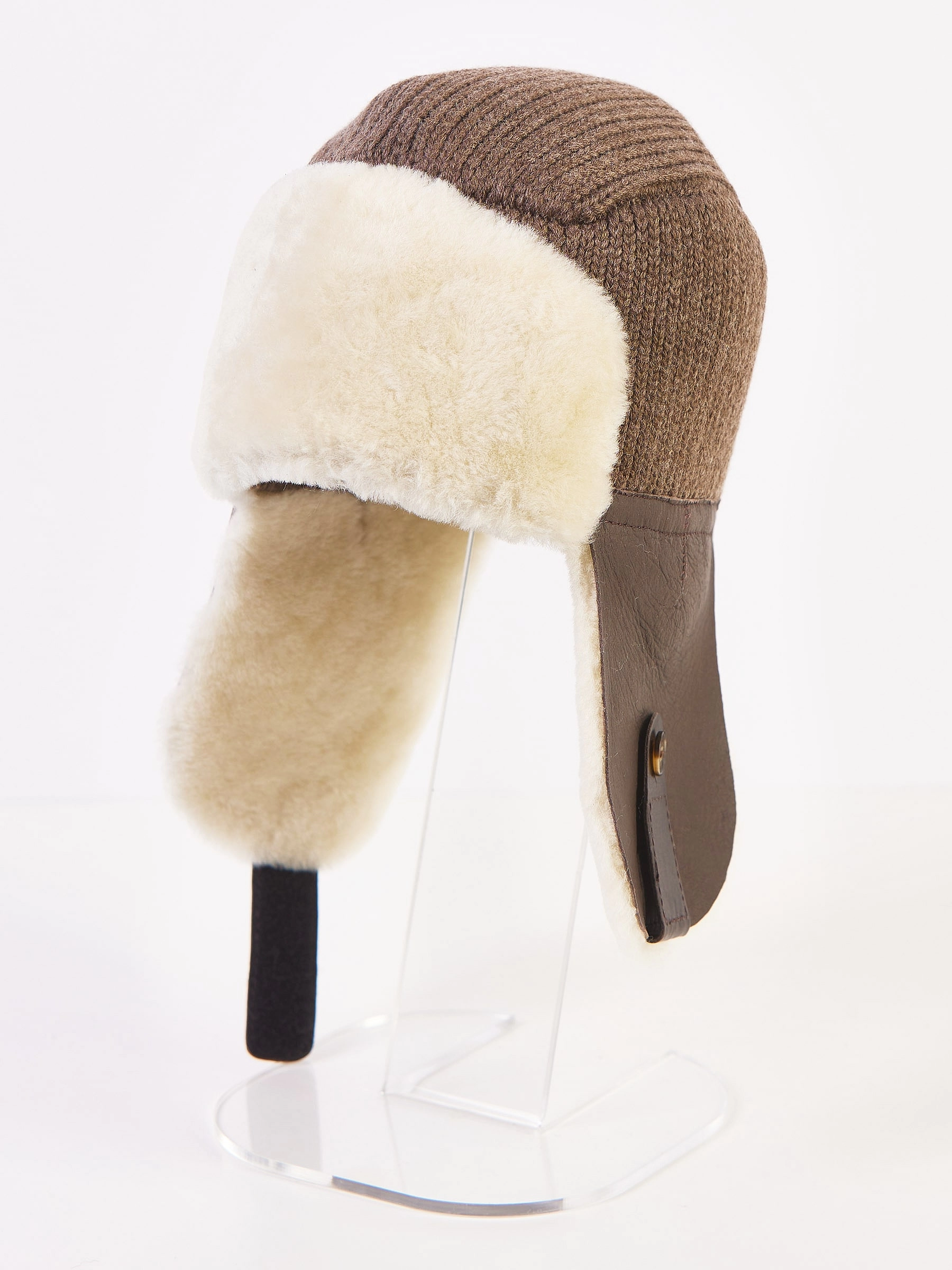 Женская шапка-ушанка выполнена из плотного трикотажа в тандеме с плотной овчиной. Глубокая посадка, меховые ушки можно легко зафиксировать двумя широкими кожаными ремешками под подбородком для максимальной защиты от мороза.