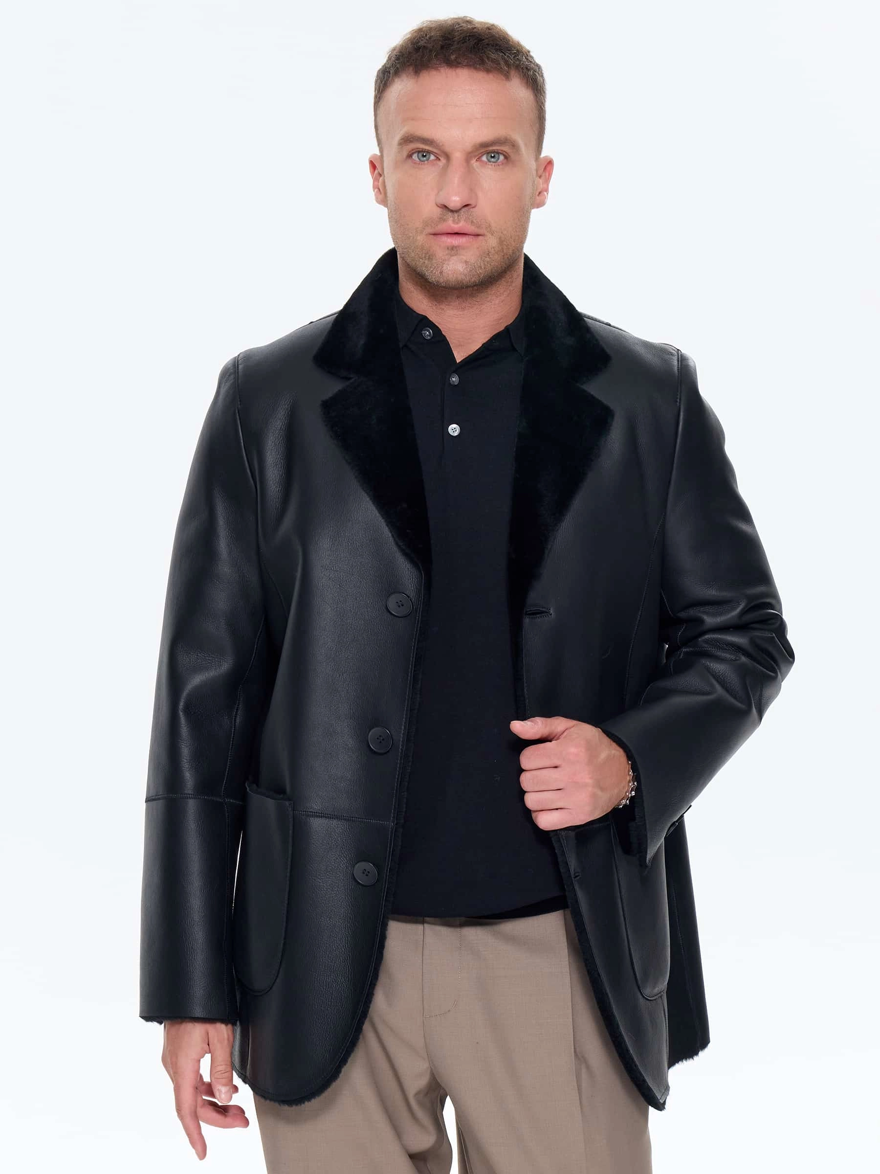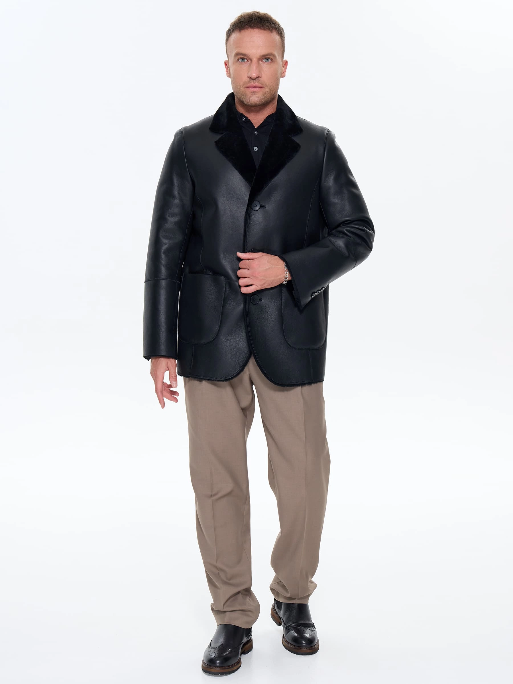 Классическая мужская дубленка в пиджачном стиле из натуральной овчины мерино премиального качества воплощает идеальный баланс элегантности и функциональности. Модель сшита из отборных шкур с гипоаллергенным мехом шелковистой текстуры и отличается строгим V-образным силуэтом, который подчеркивает линию плеч и идеально сочетается с галстуком, шарфом или снудом. Оптимальная длина изделия обеспечивает комфорт при вождении, городских прогулках и деловых встречах, а продуманный крой с удлиненной спинкой сохраняет тепло, не сковывая движений. Дубленка дополнена невысокой шлицей сзади для свободы движений и застегивается на пуговицы, предлагая универсальное решение для современных мужчин, ценящих качественные материалы, безупречную посадку и лаконичный дизайн в классических оттенках.