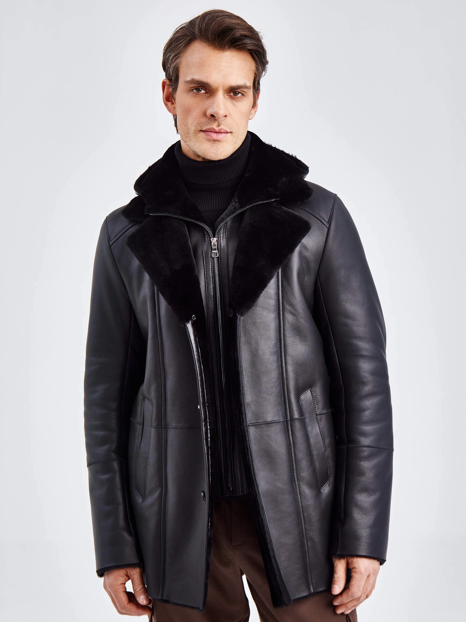 Товар мужская классическая дубленка премиум класса со съемным капюшоном 436, черная, размер 48, артикул 71450 выполнен из овчина "мерино" с застежкой пуговицы. Рассчитан на сезон: зима. Длина изделия 78 см, силуэт прямой.