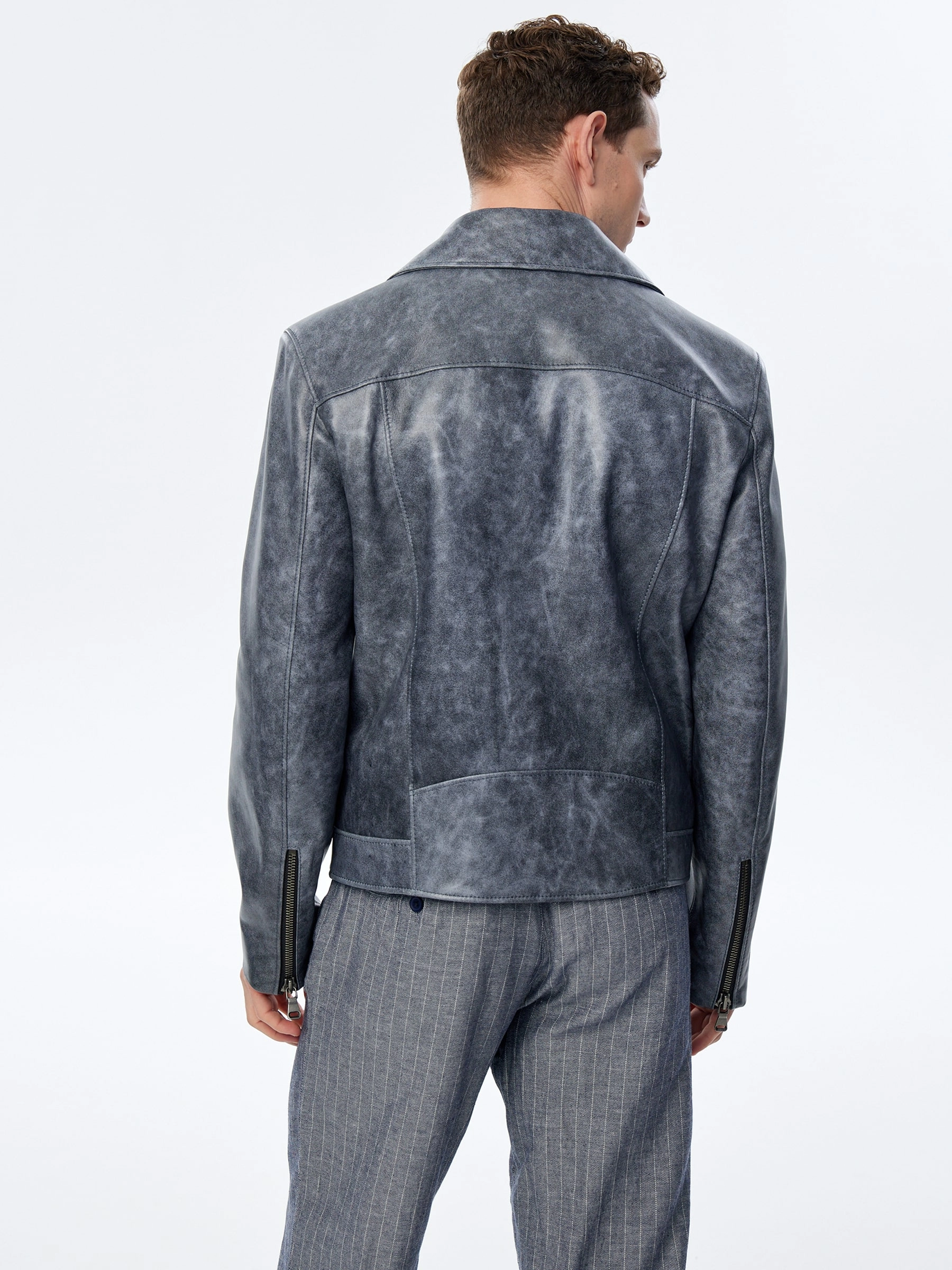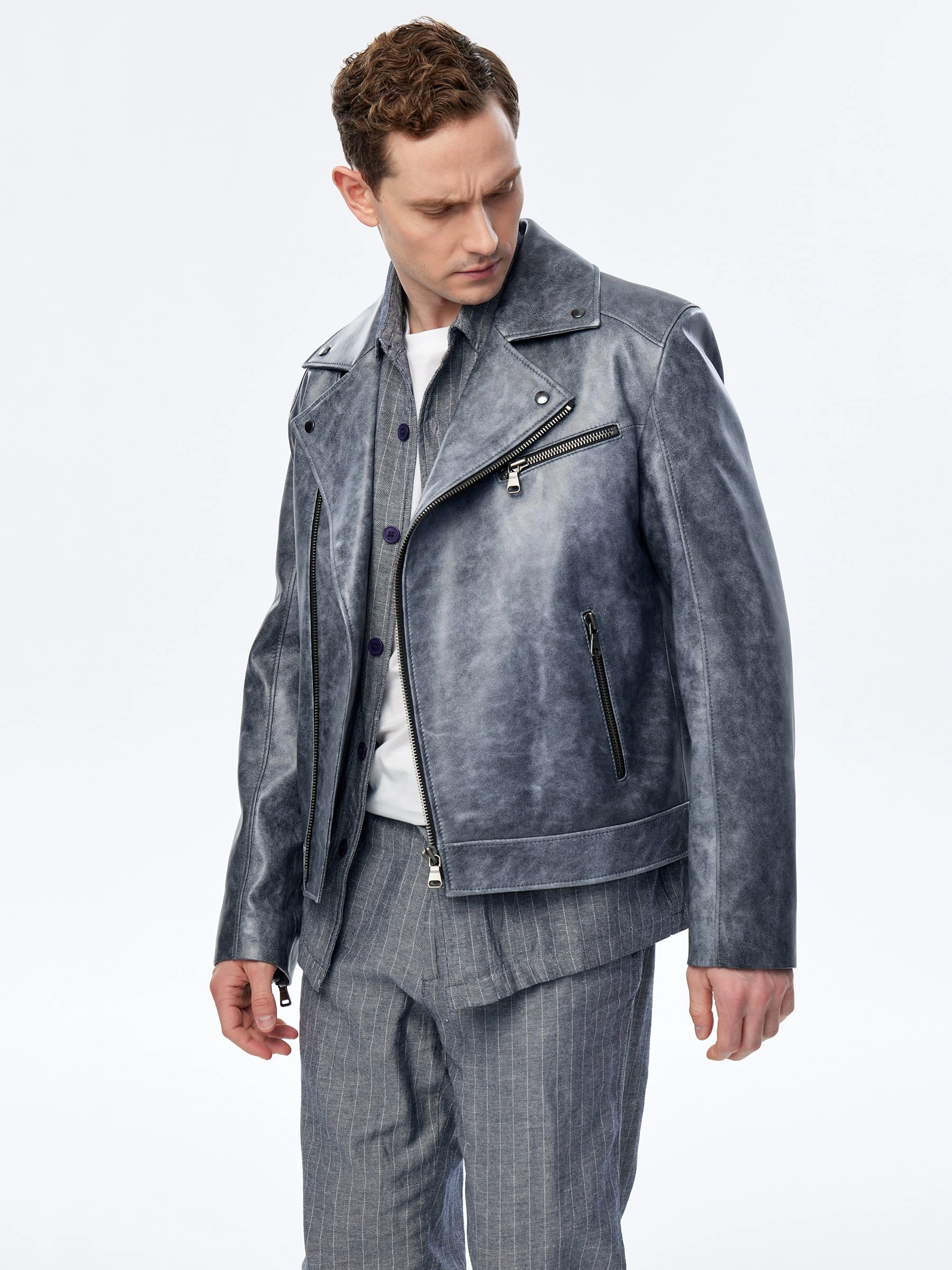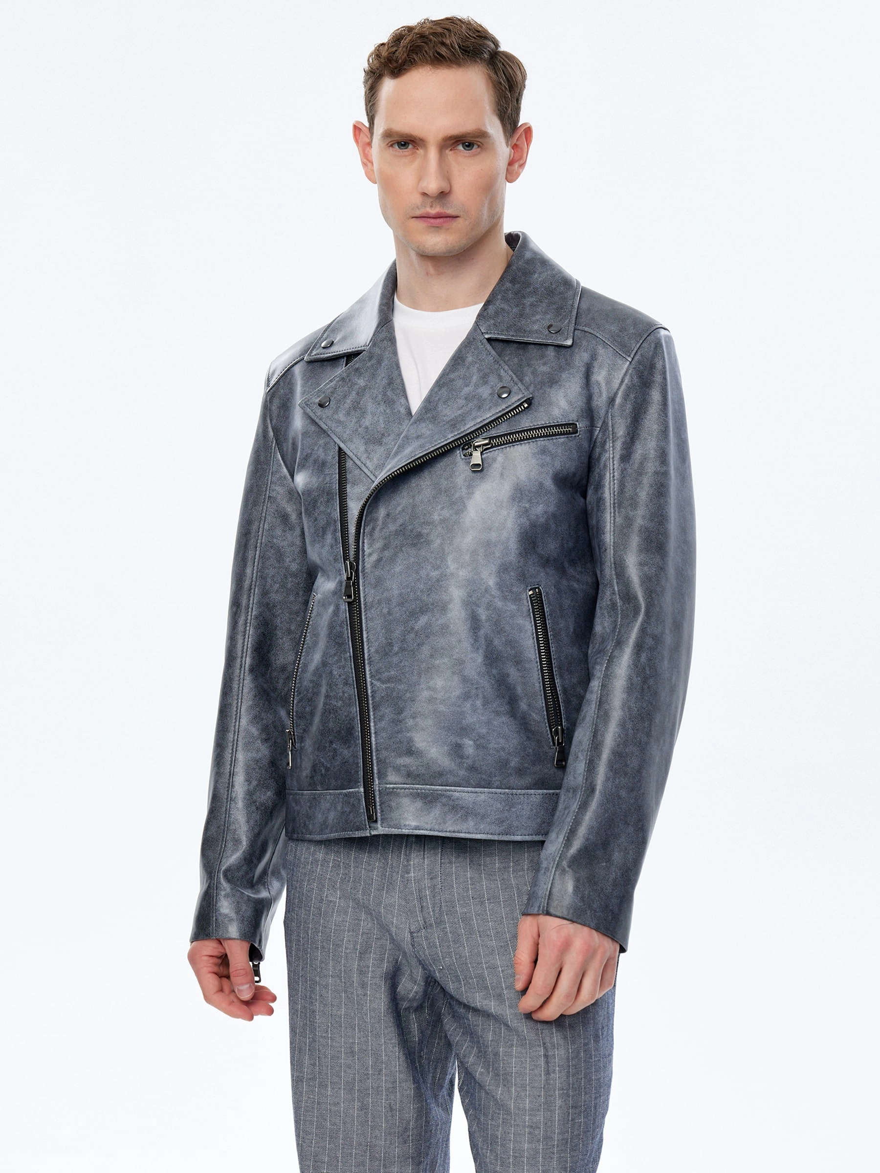 Мужская кожаная куртка косуха премиум класса 560, серая, размер 48, артикул 29670