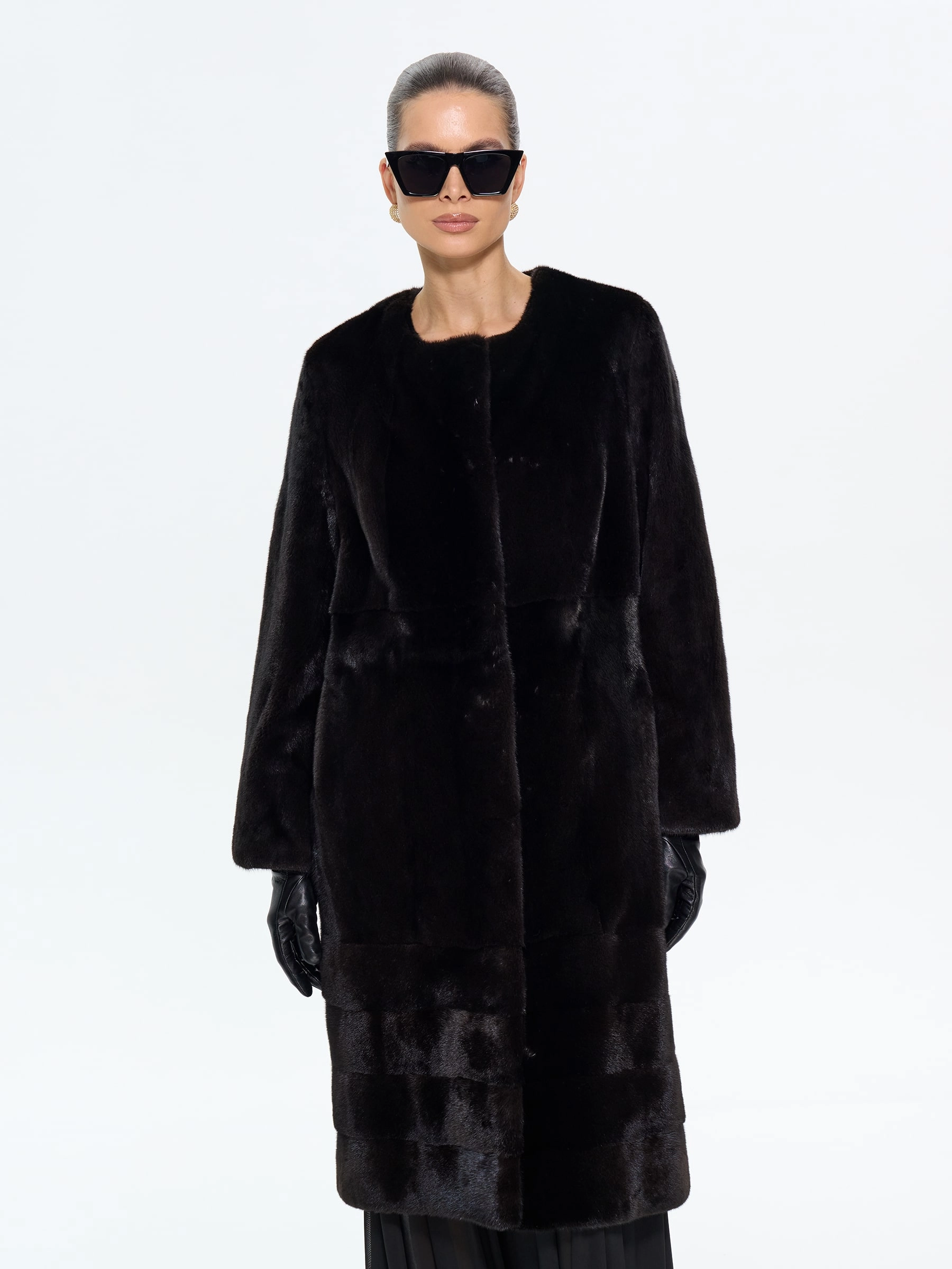 Норковая женская шуба BRASCHI NJ 13/C13, черная, размер 44, артикул 34380