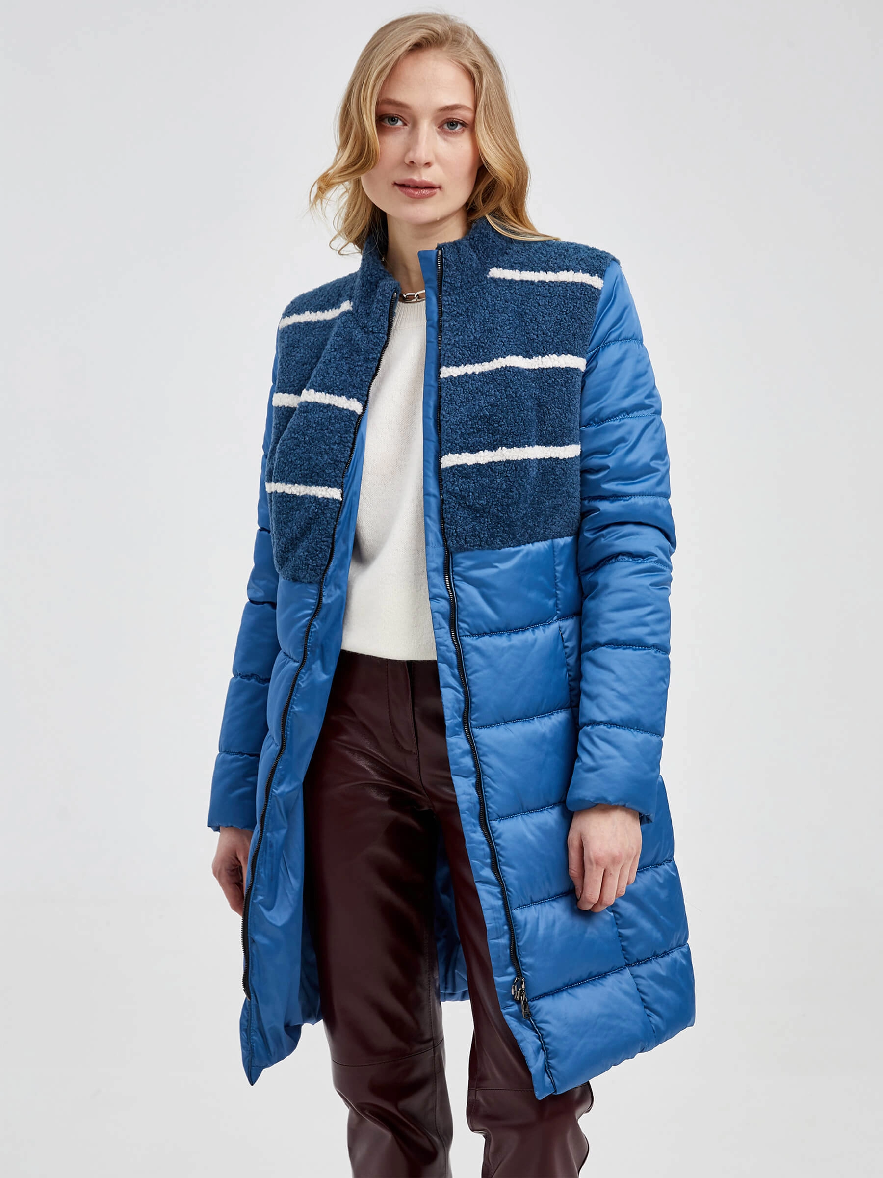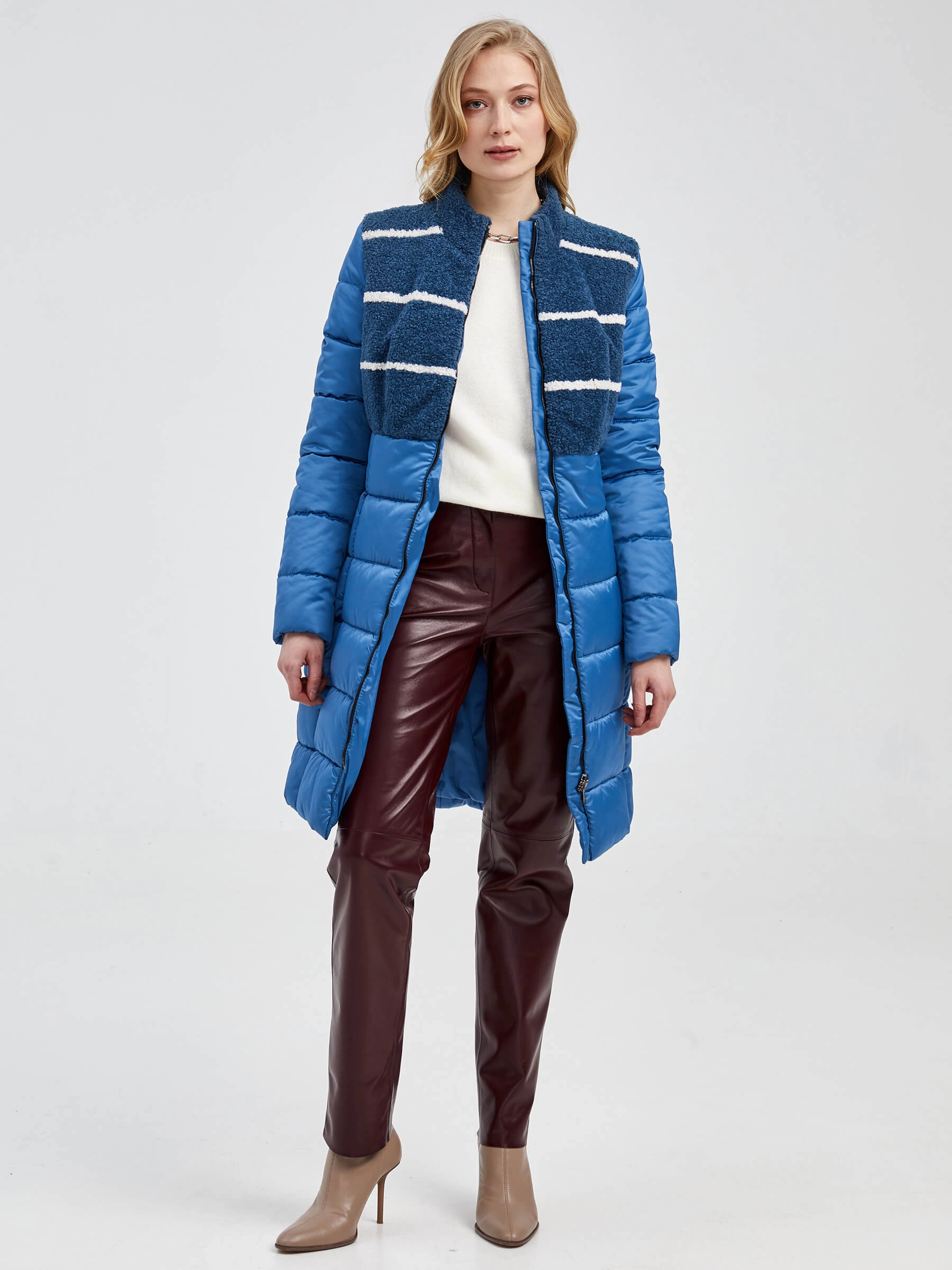 Товар текстильный женский пуховик с мехом астрагана 805, голубой, размер 40, артикул 13390 выполнен из овчина "астраган" с застежкой молния. Рассчитан на сезон: осень-зима. Длина изделия 75-90 см, силуэт полуприлегающий.