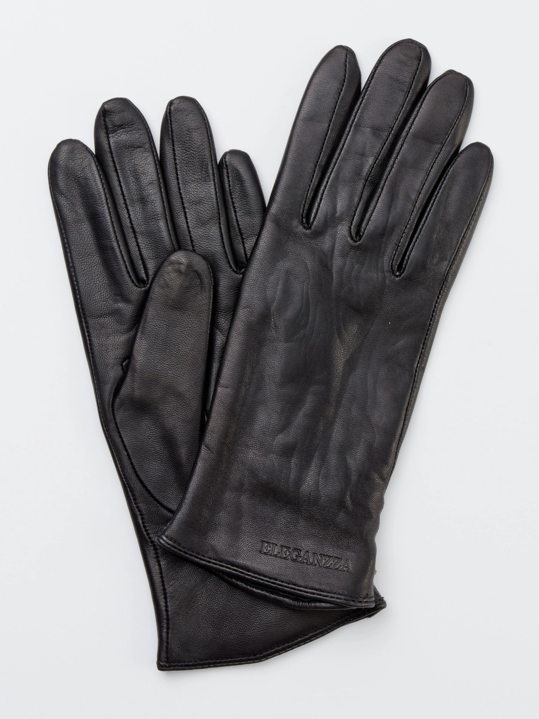 Классические перчатки женские торговой марки ELEGANZZA из натуральной кожи ягненка. В углу перчатки со стороны мизинца фирменный "штамп" ELEGANZZA. Длина манжеты от нижней точки большого пальца до края перчаток составляет - 5,5 см.