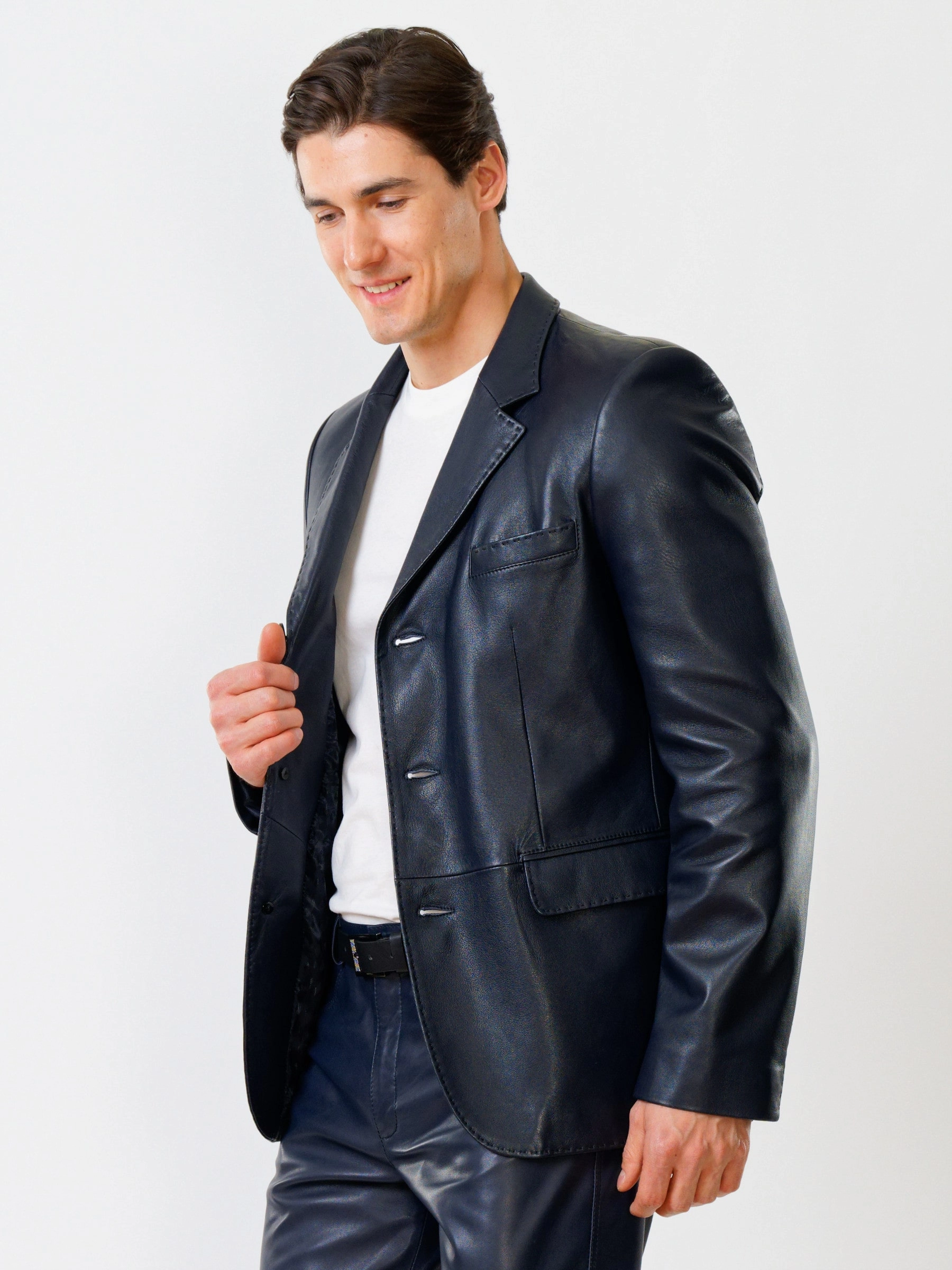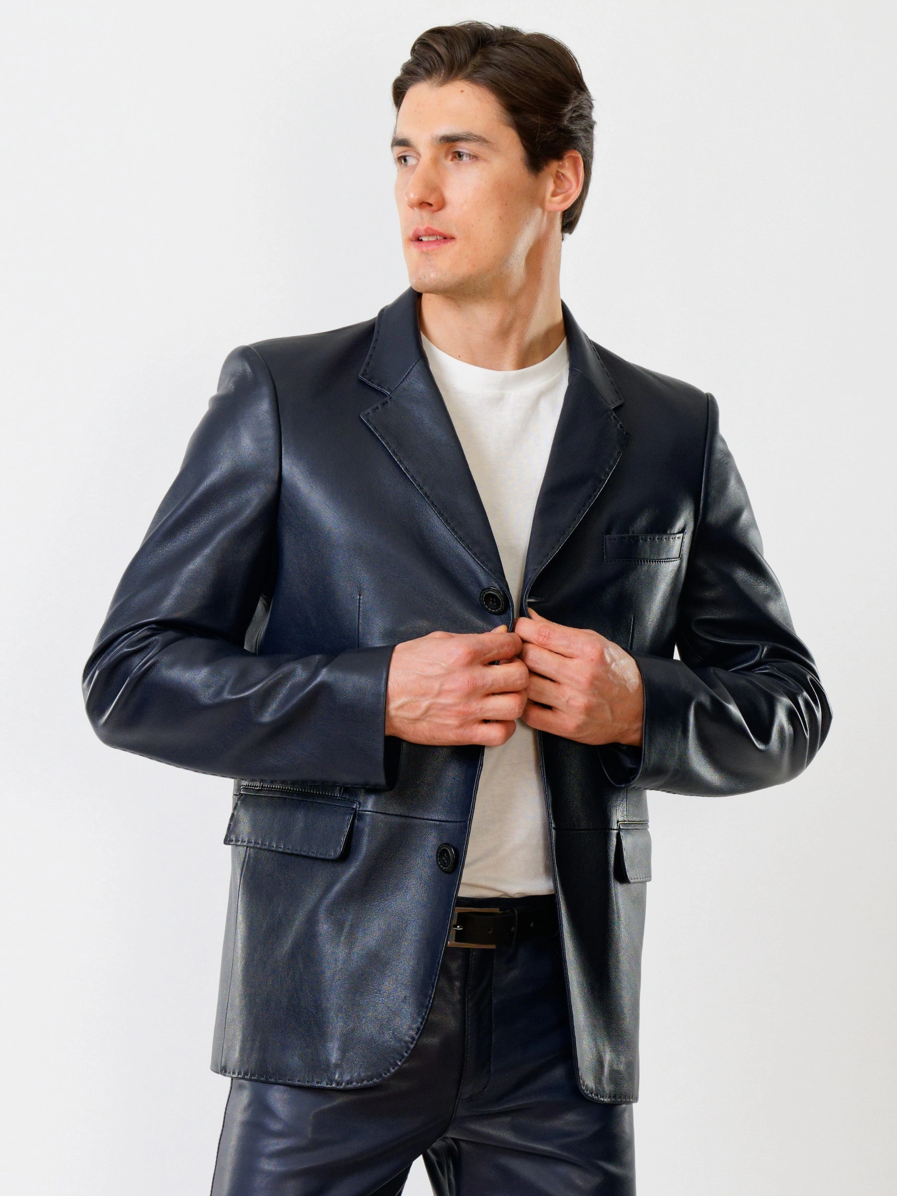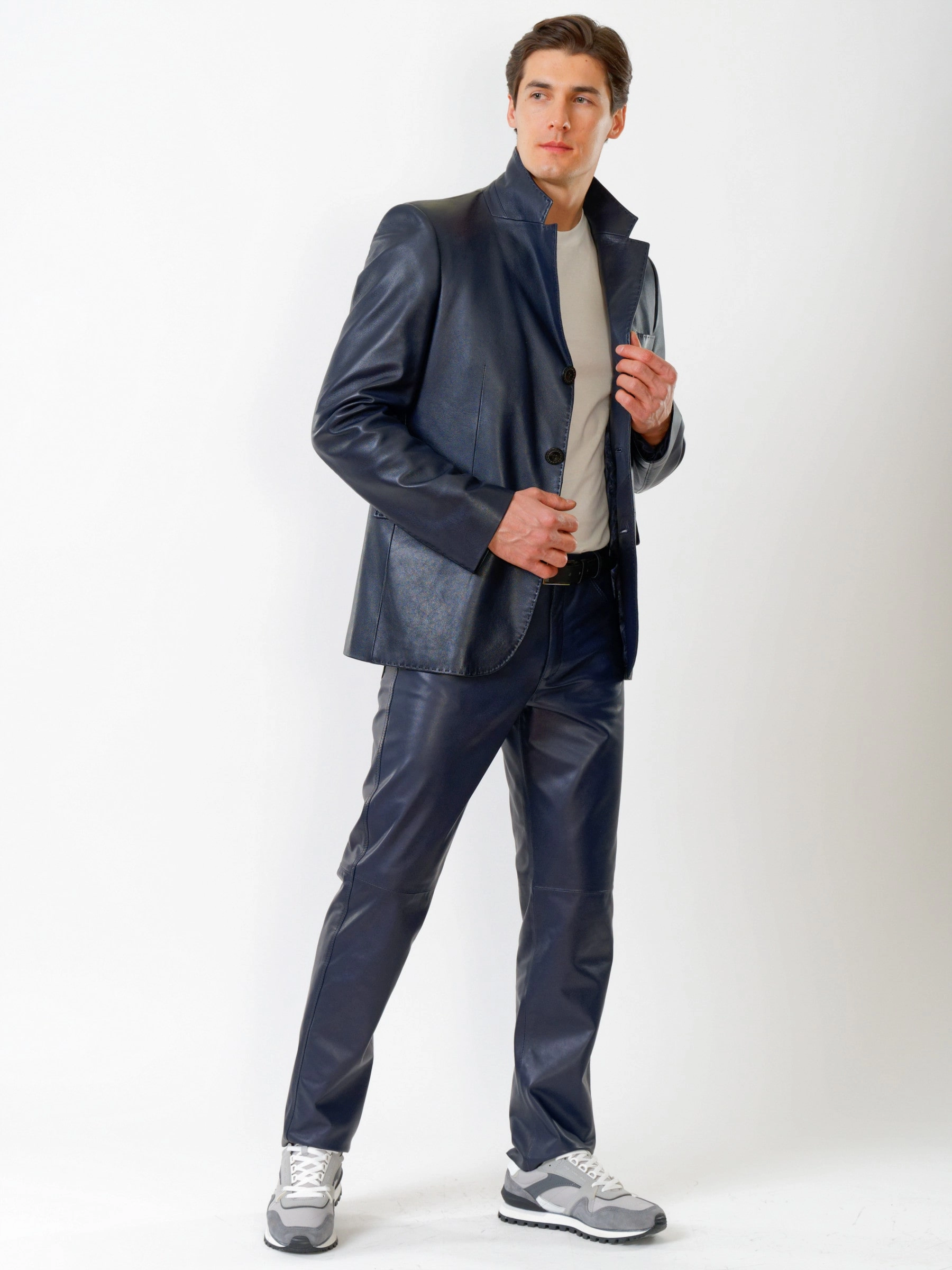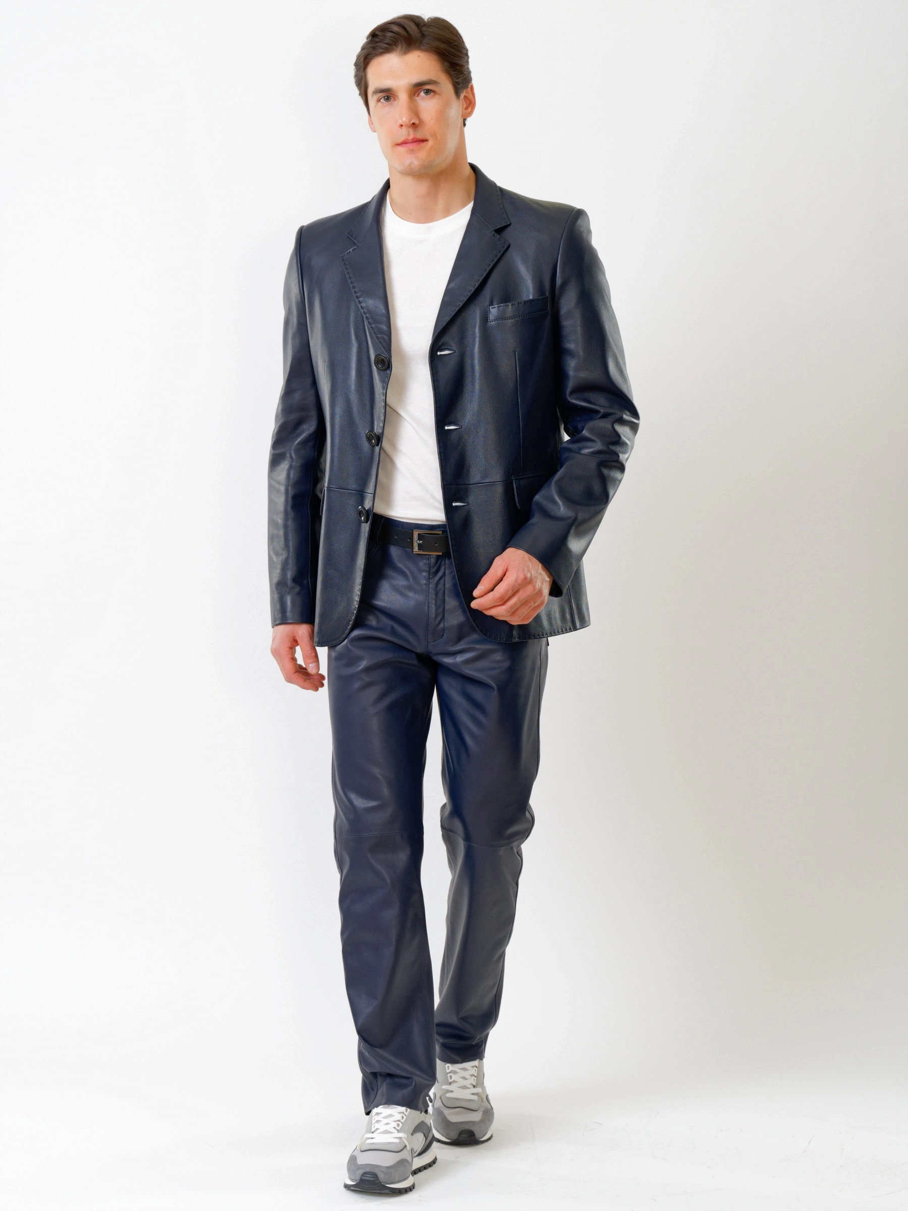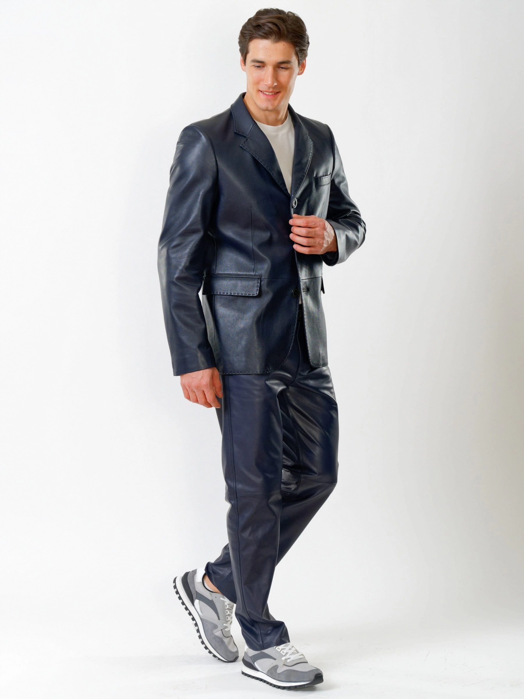 Кожаный костюм мужской: Пиджак 543 + Брюки 01, синий, р. 48, артикул 140150