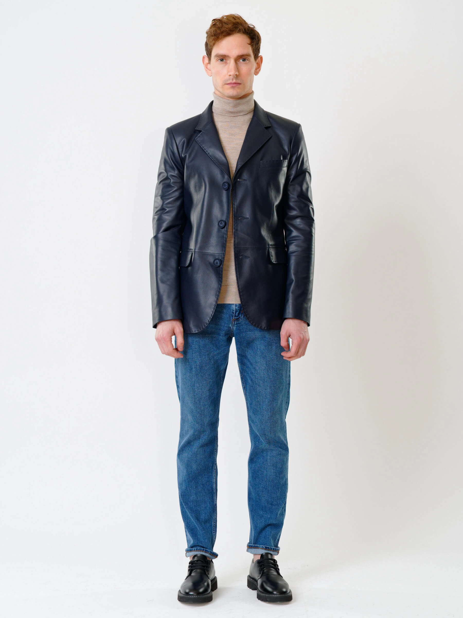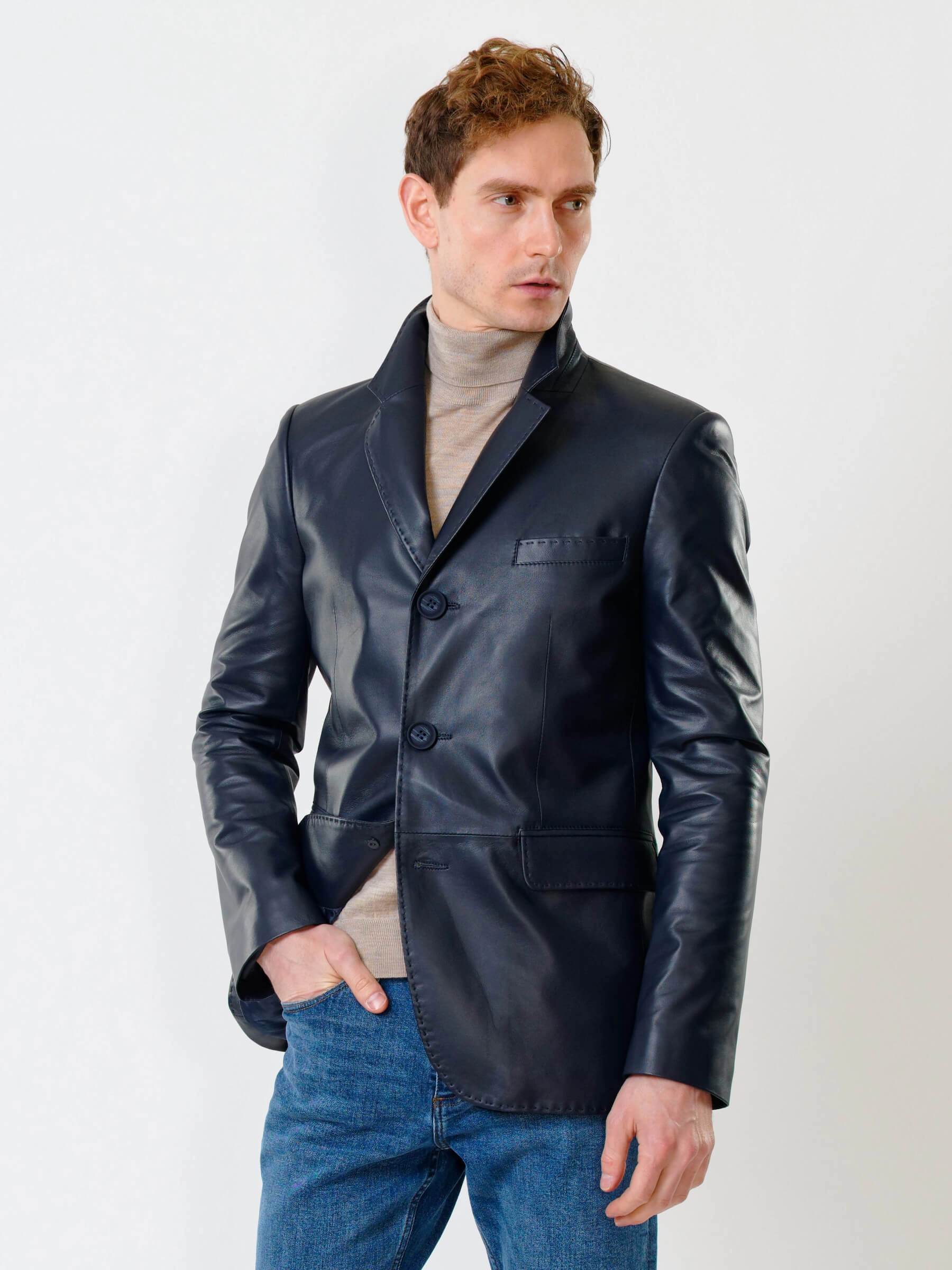 Товар мужской кожаный пиджак на ручном стежке премиум класса 543, синий, размер 50, артикул 28441 выполнен из натуральной кожи с застежкой пуговицы. Рассчитан на сезон: весна-лето. Длина изделия 78 см, силуэт полуприлегающий.