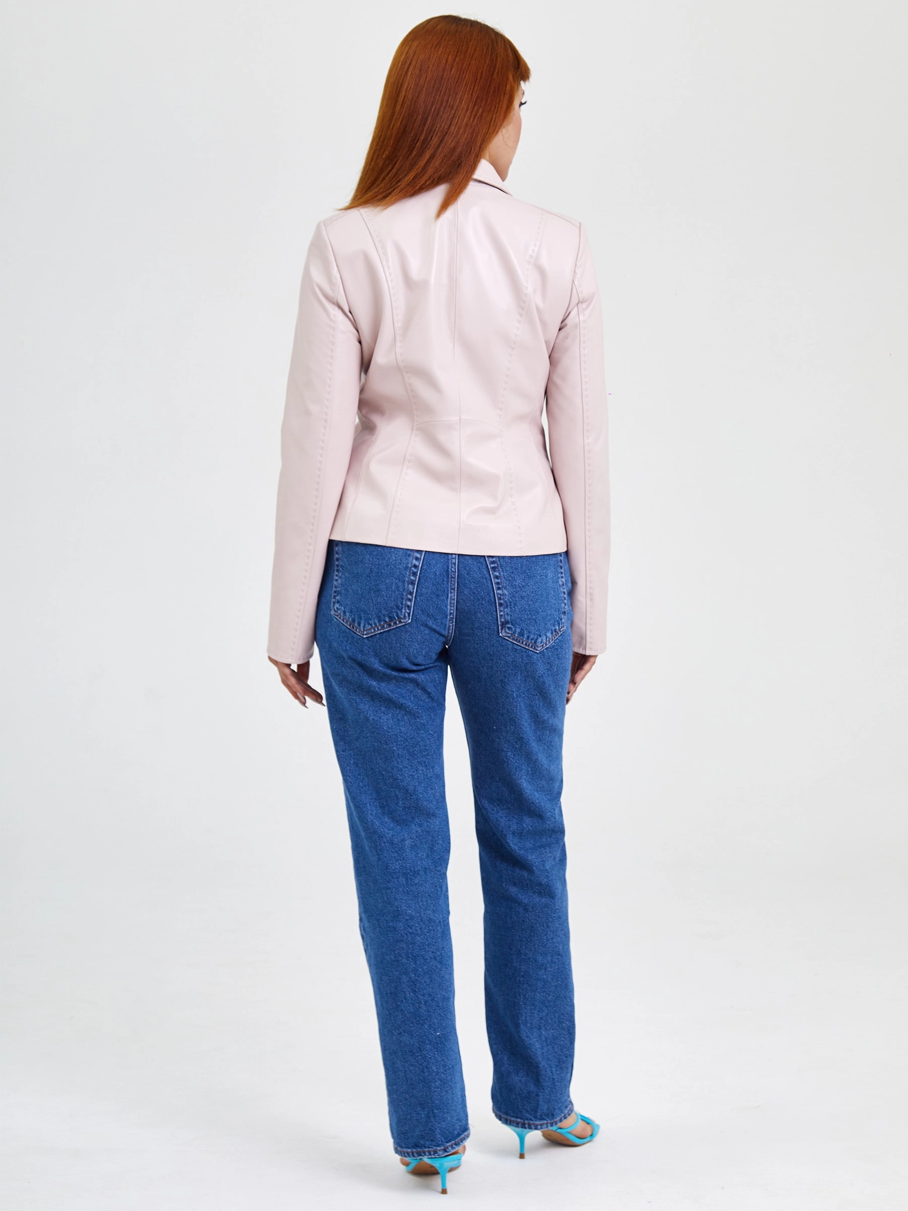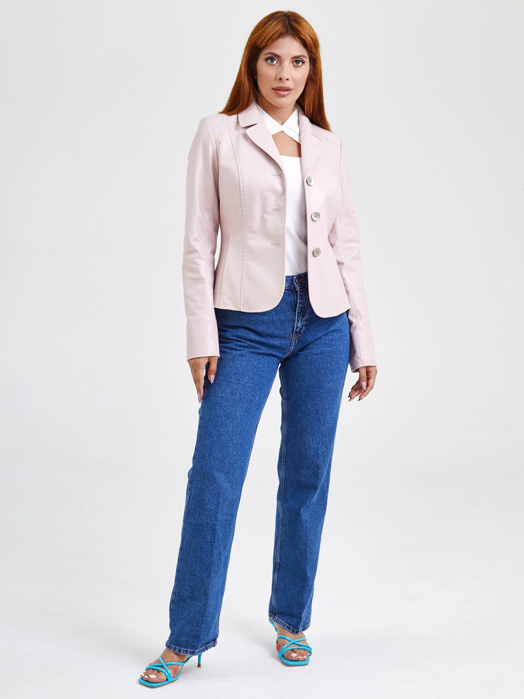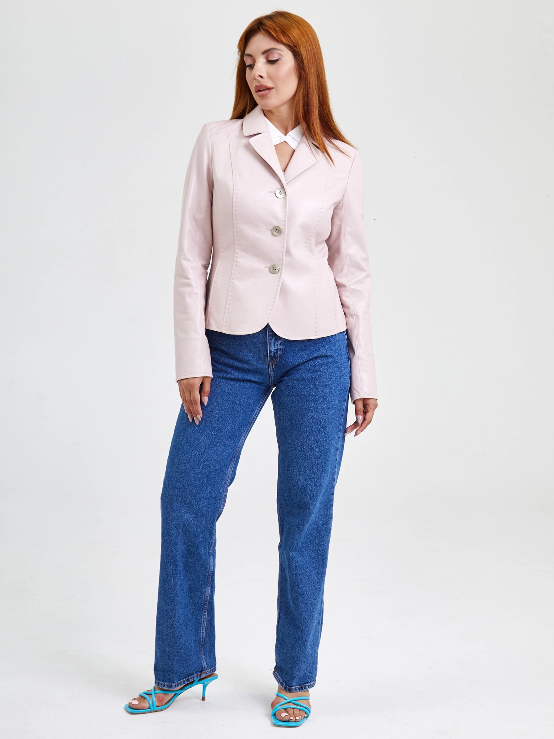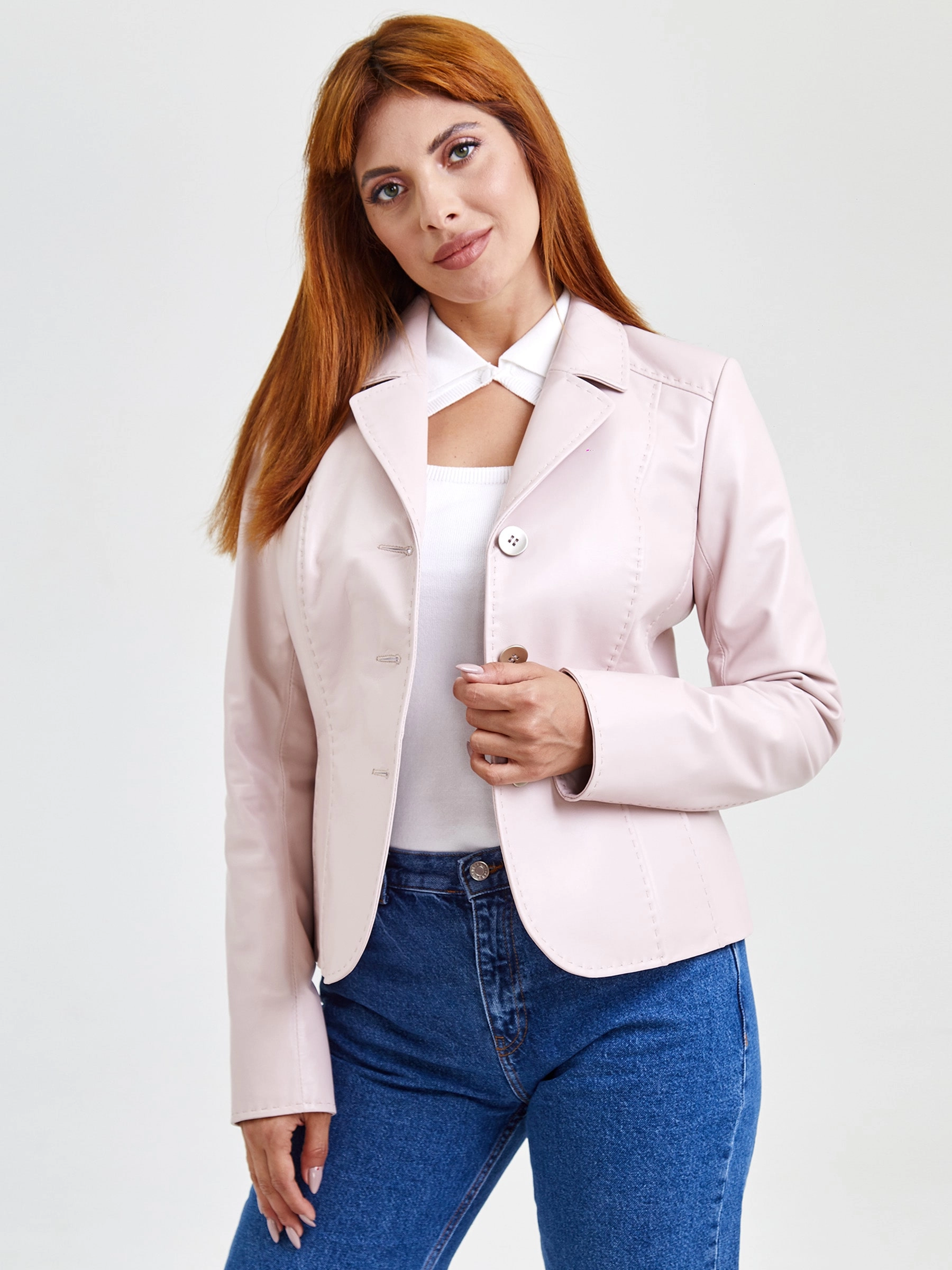 Кожаный женский пиджак 316рс, пудровый, размер 48, артикул 91522