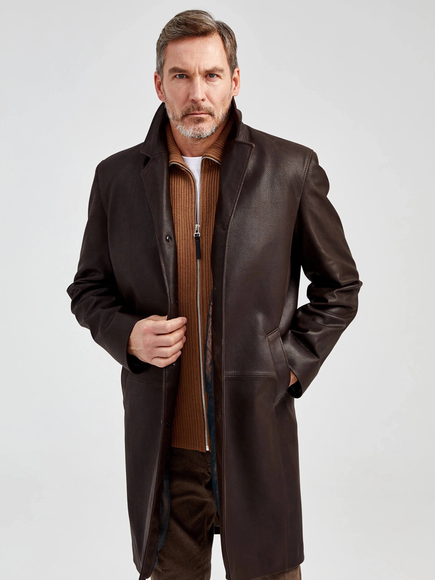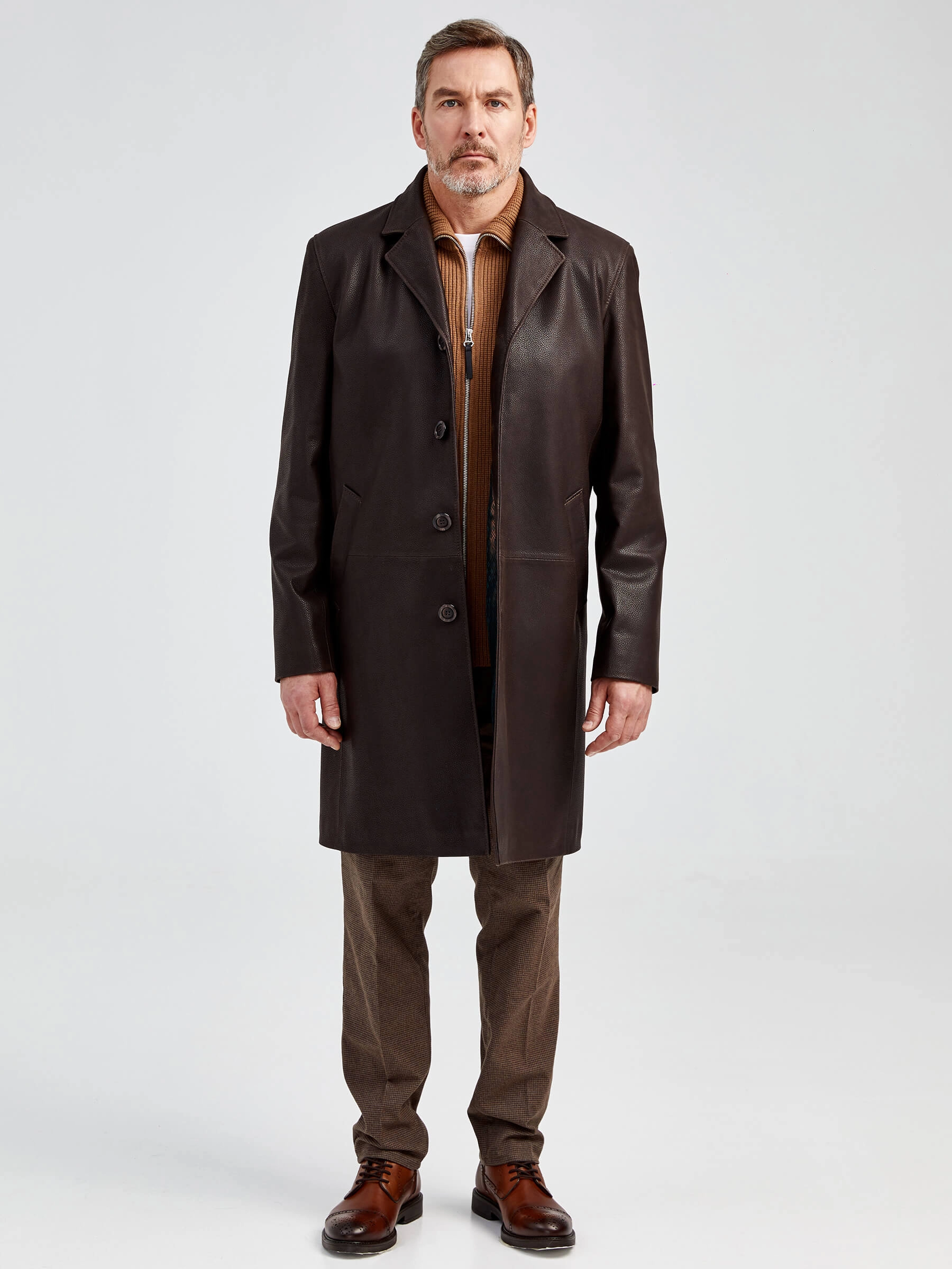 Товар мужской кожаный френч премиум класса 22/1, коричневый ds, размер 56, артикул 40530 выполнен из натуральной кожи с застежкой пуговицы. Рассчитан на сезон: демисезон. Длина изделия 105 см, силуэт прямой.