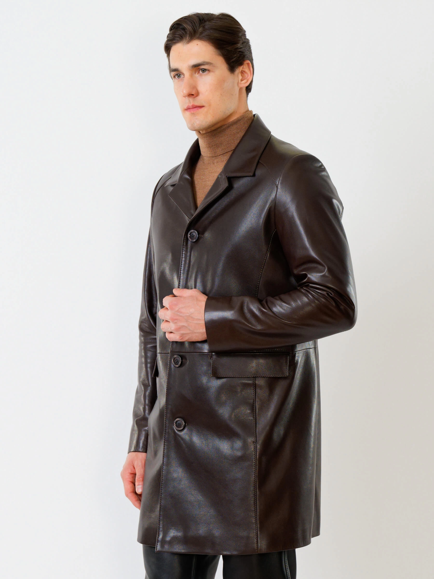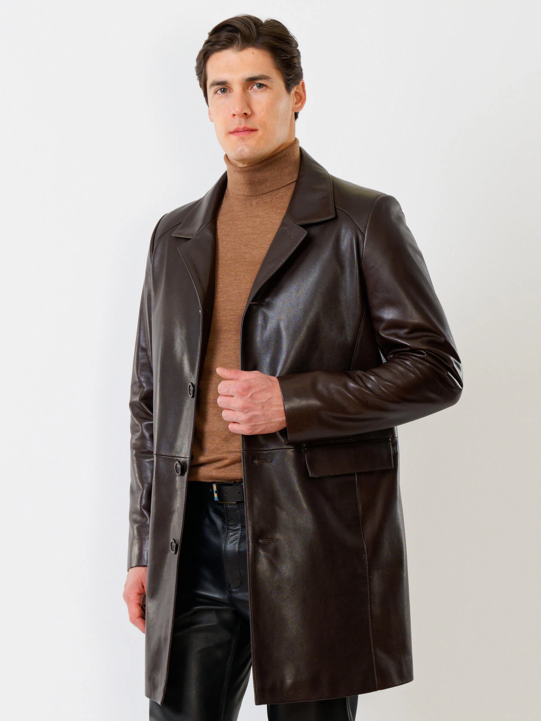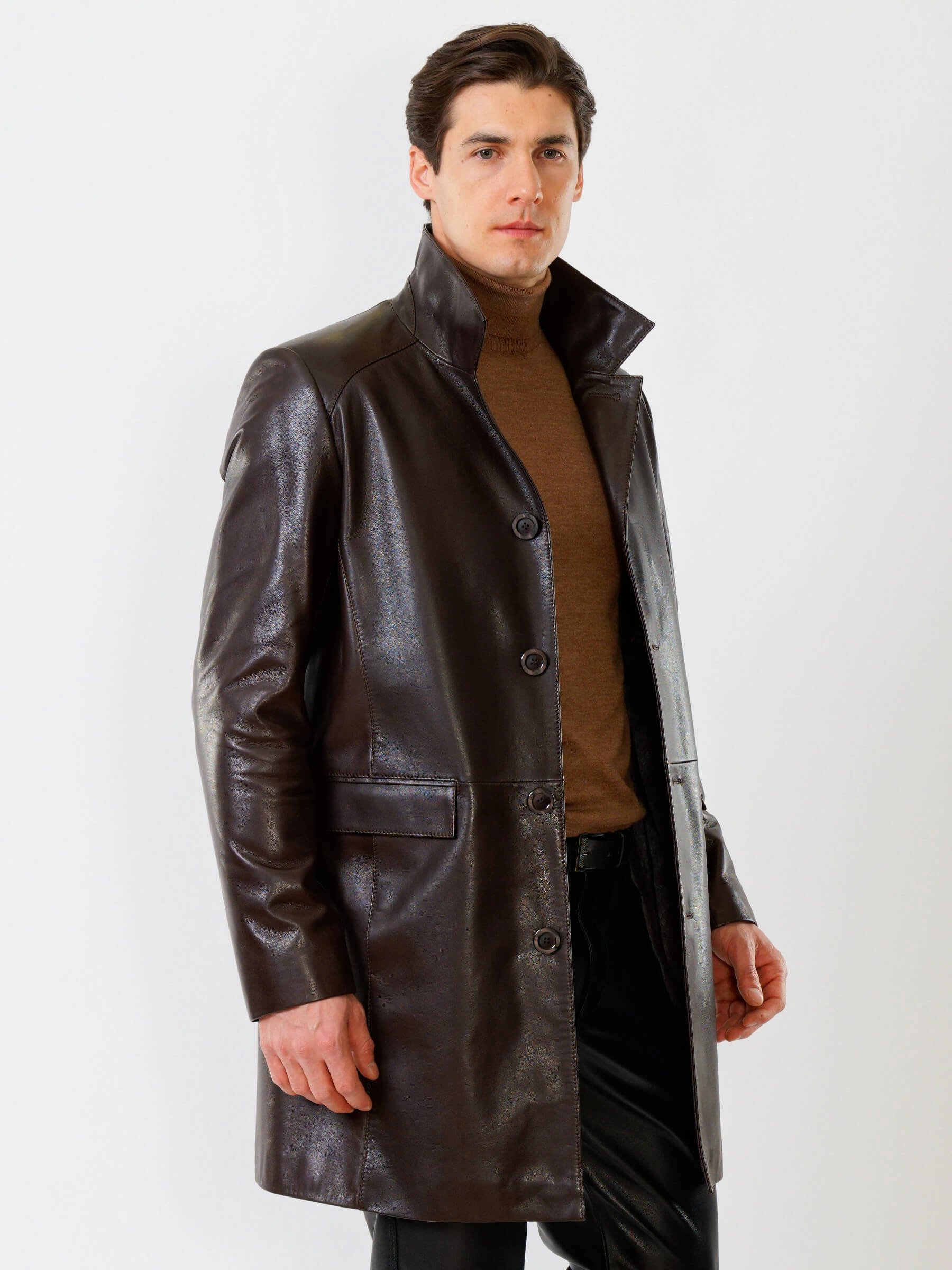 Товар мужской кожаный френч премиум класса 539, коричневый, размер 50, артикул 28820 выполнен из натуральной кожи с застежкой пуговицы. Рассчитан на сезон: демисезон. Длина изделия 96 см, силуэт полуприлегающий.