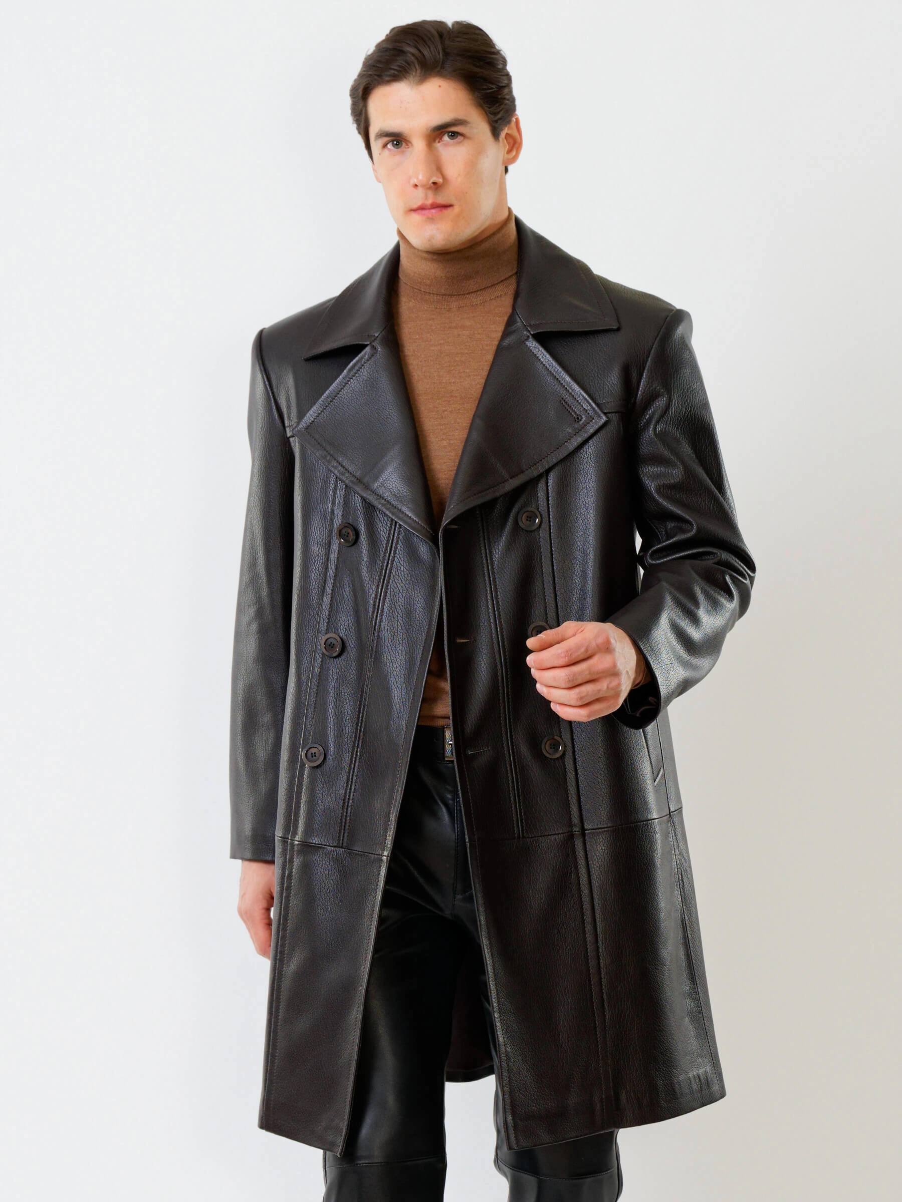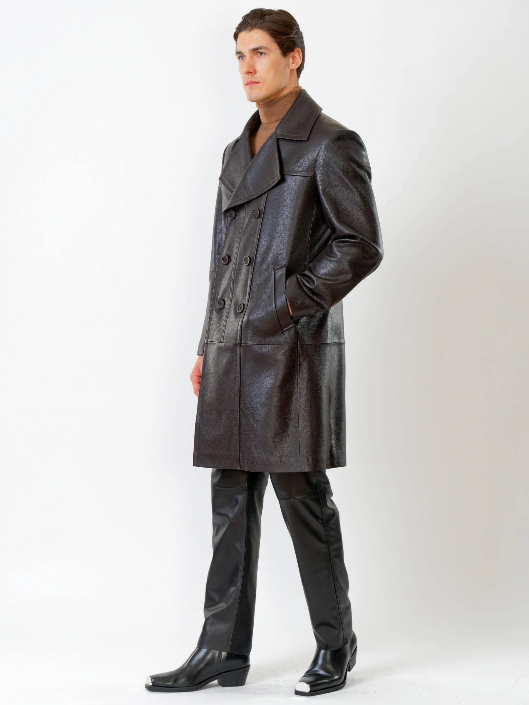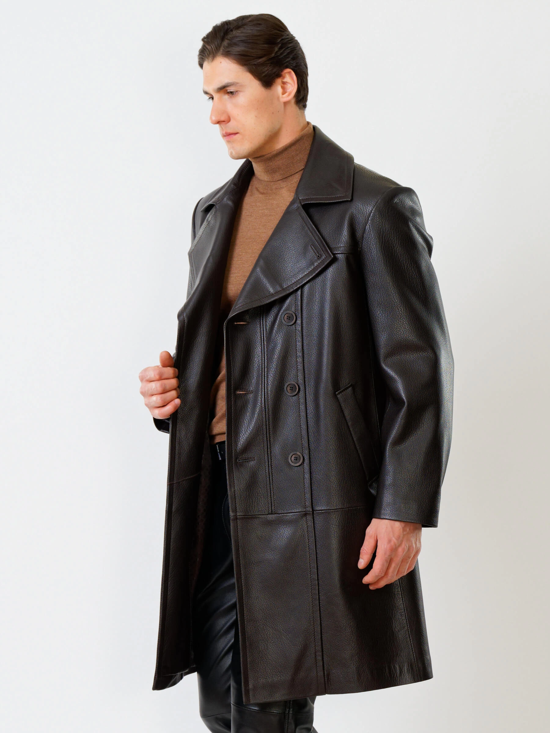 Двубортный мужской кожаный плащ премиум класса Чикаго, коричневый, размер 46, артикул 28801