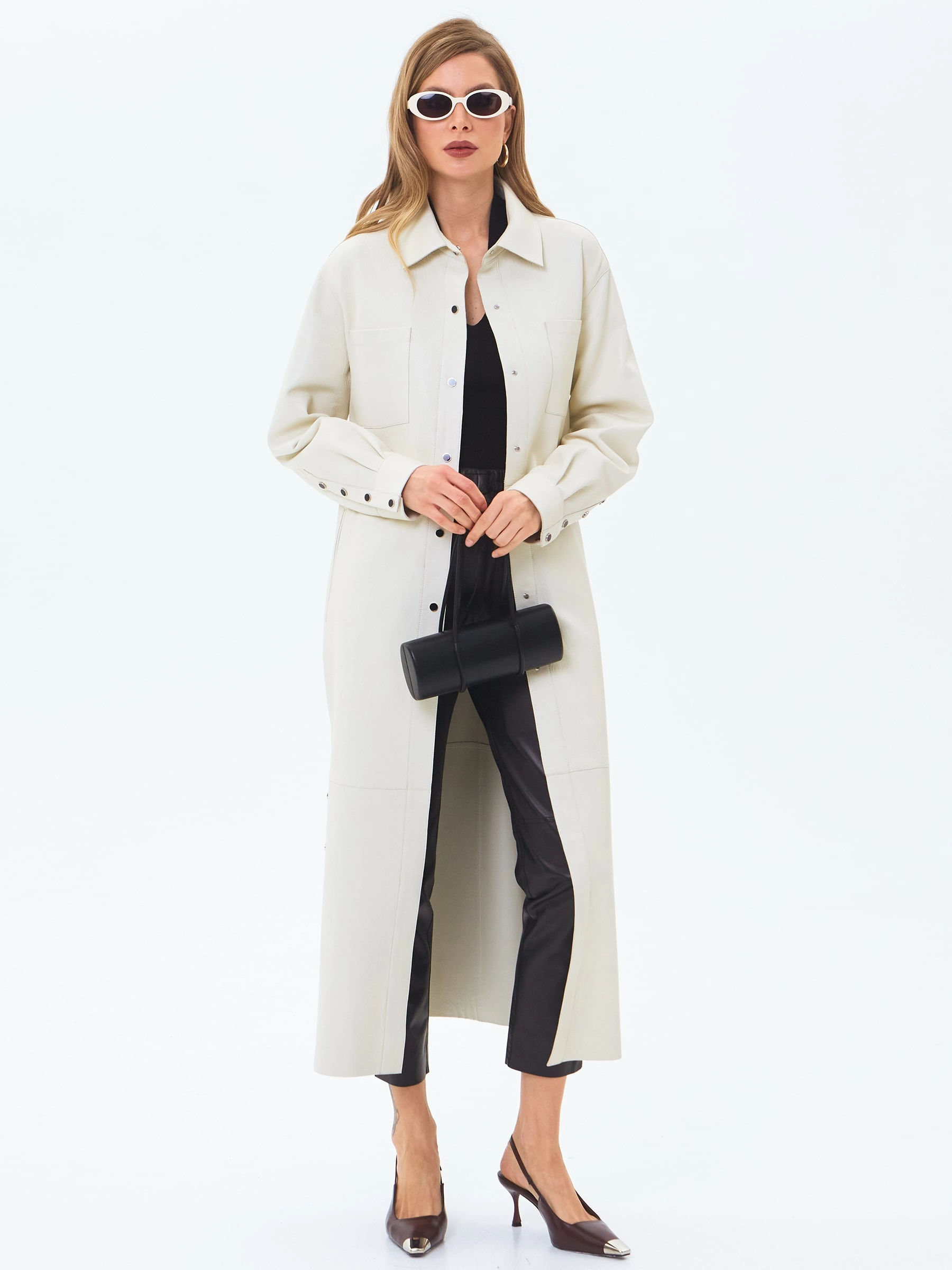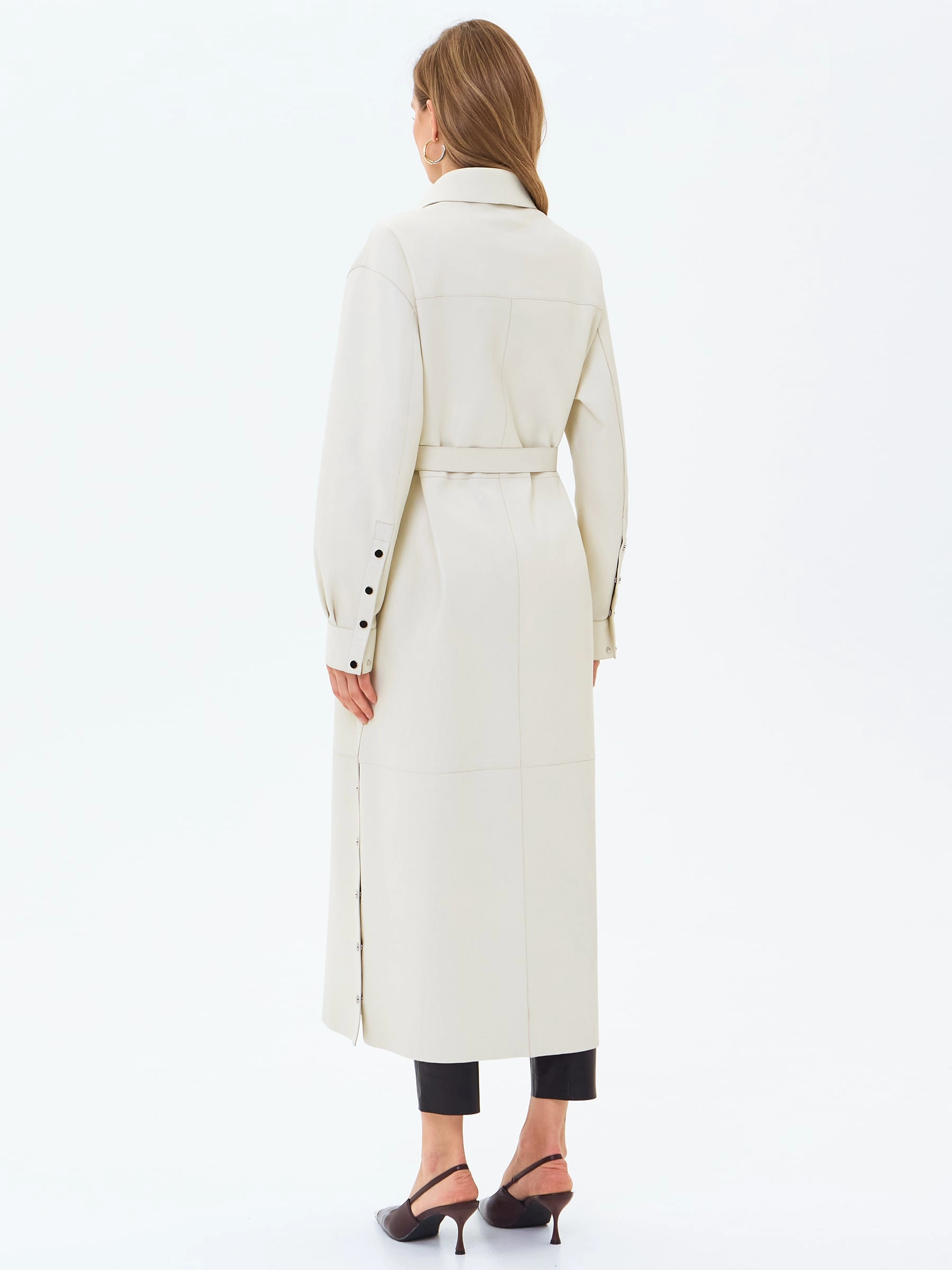 Плащ женский кожаный премиум класса 3091, белый, размер 44, артикул 24410