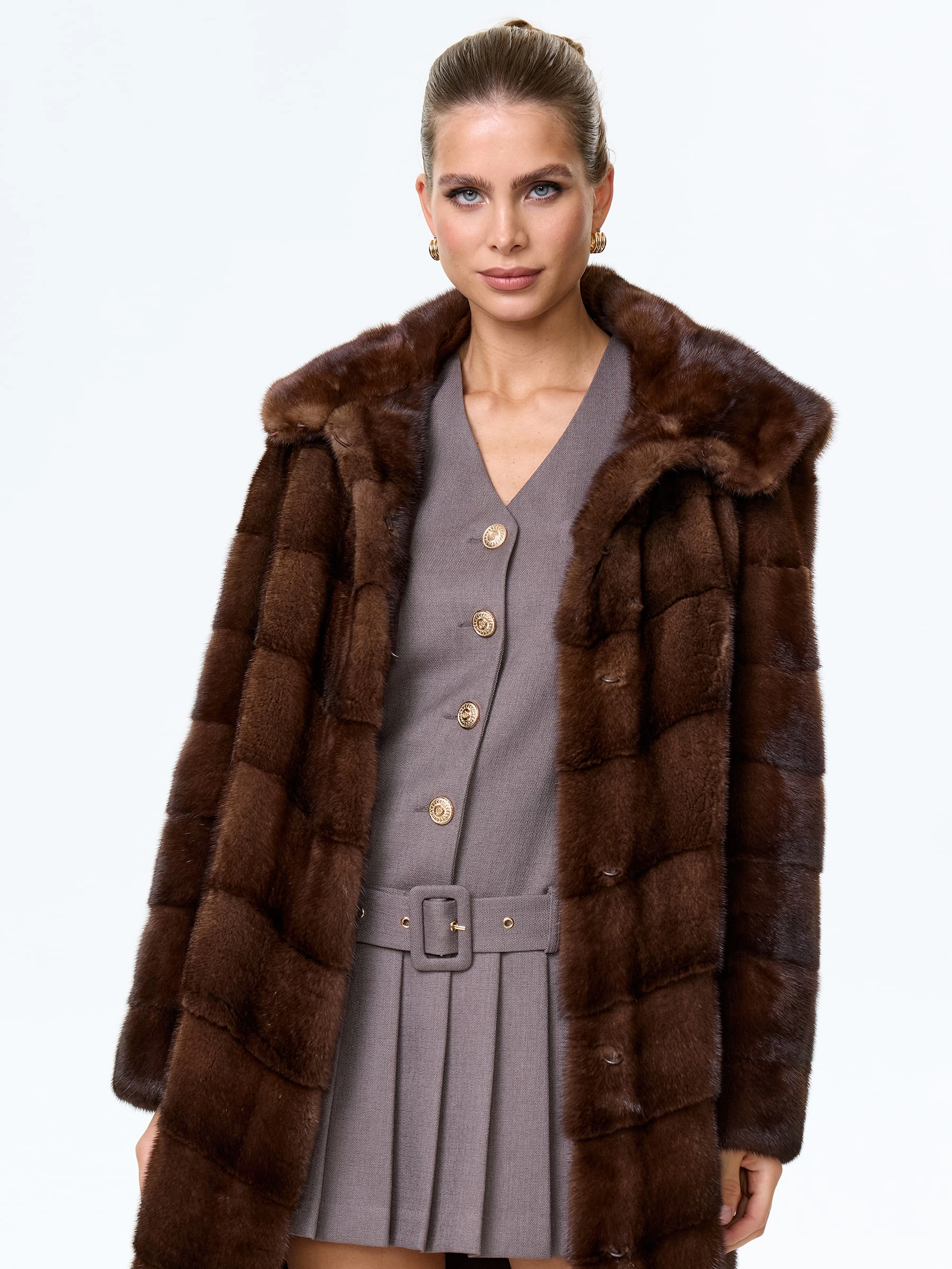 Товар полупальто с капюшоном из меха норки для женщин галя(к), коричневое, размер 50, артикул 34090 выполнен из норка с застежкой клипсы. Рассчитан на сезон: зима. Длина изделия 100 см, силуэт прямой.