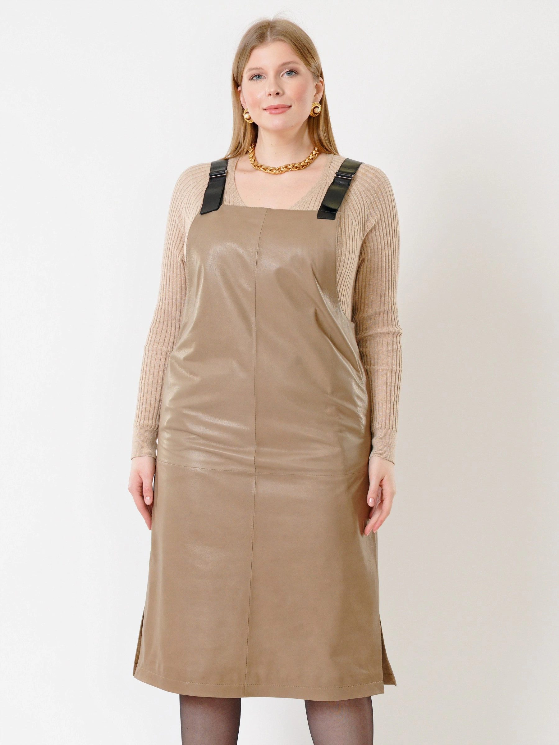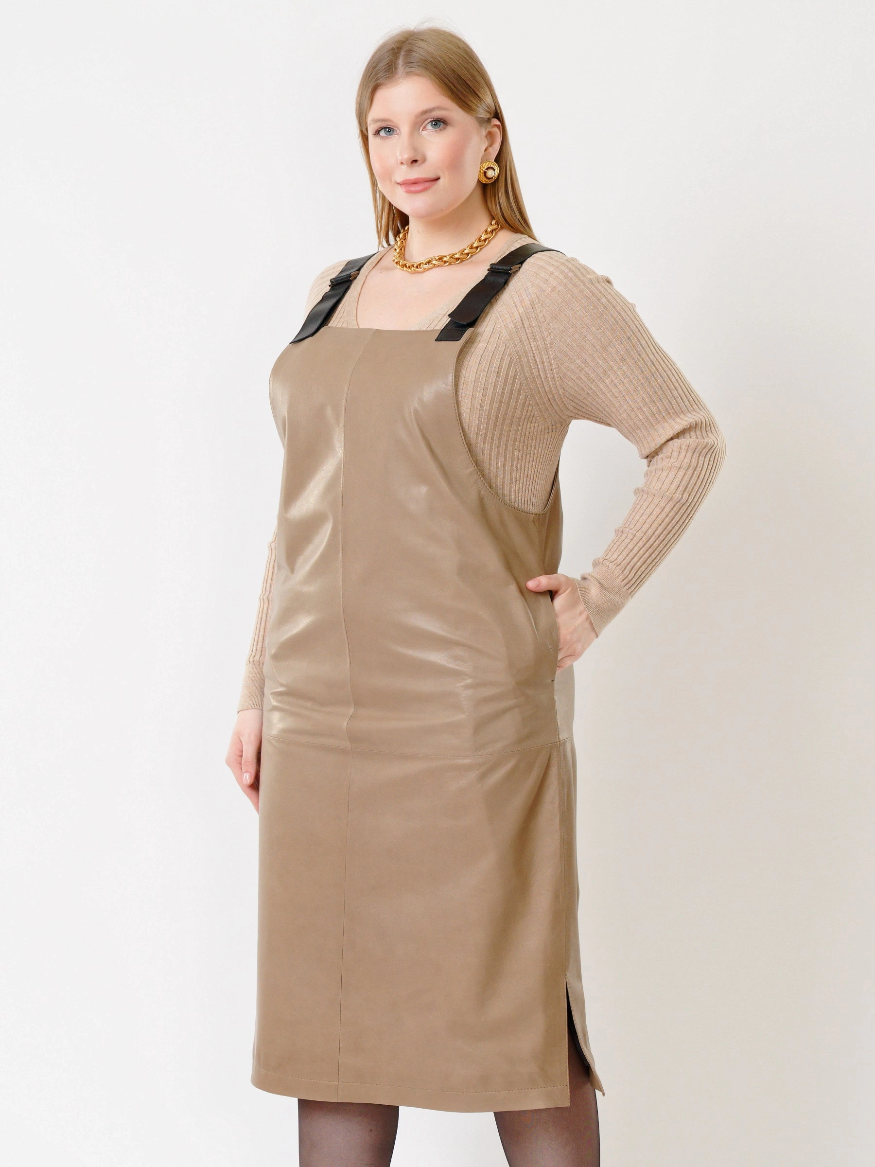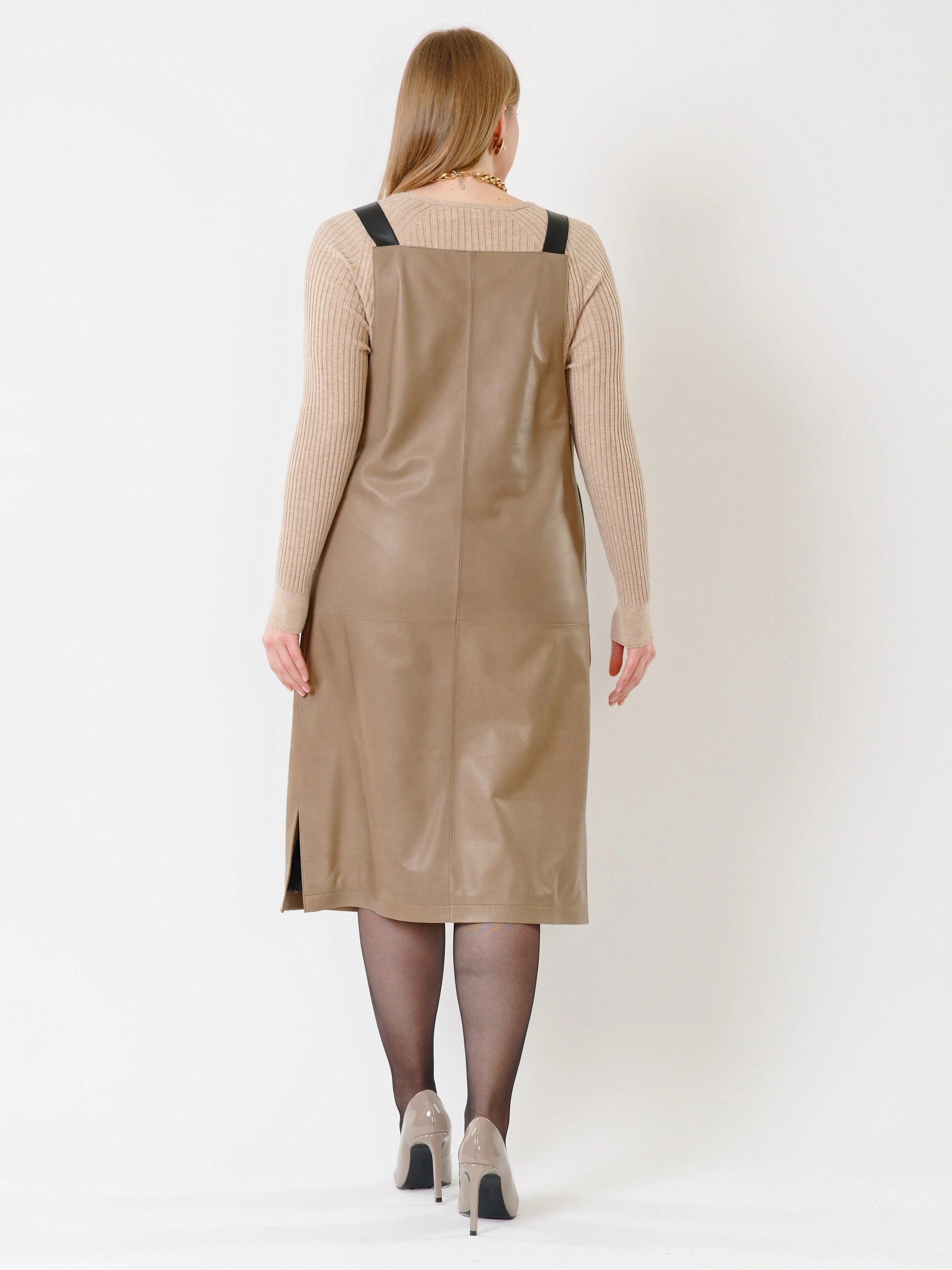 Кожаный сарафан 01, серо-коричневый, размер 44, артикул 85372