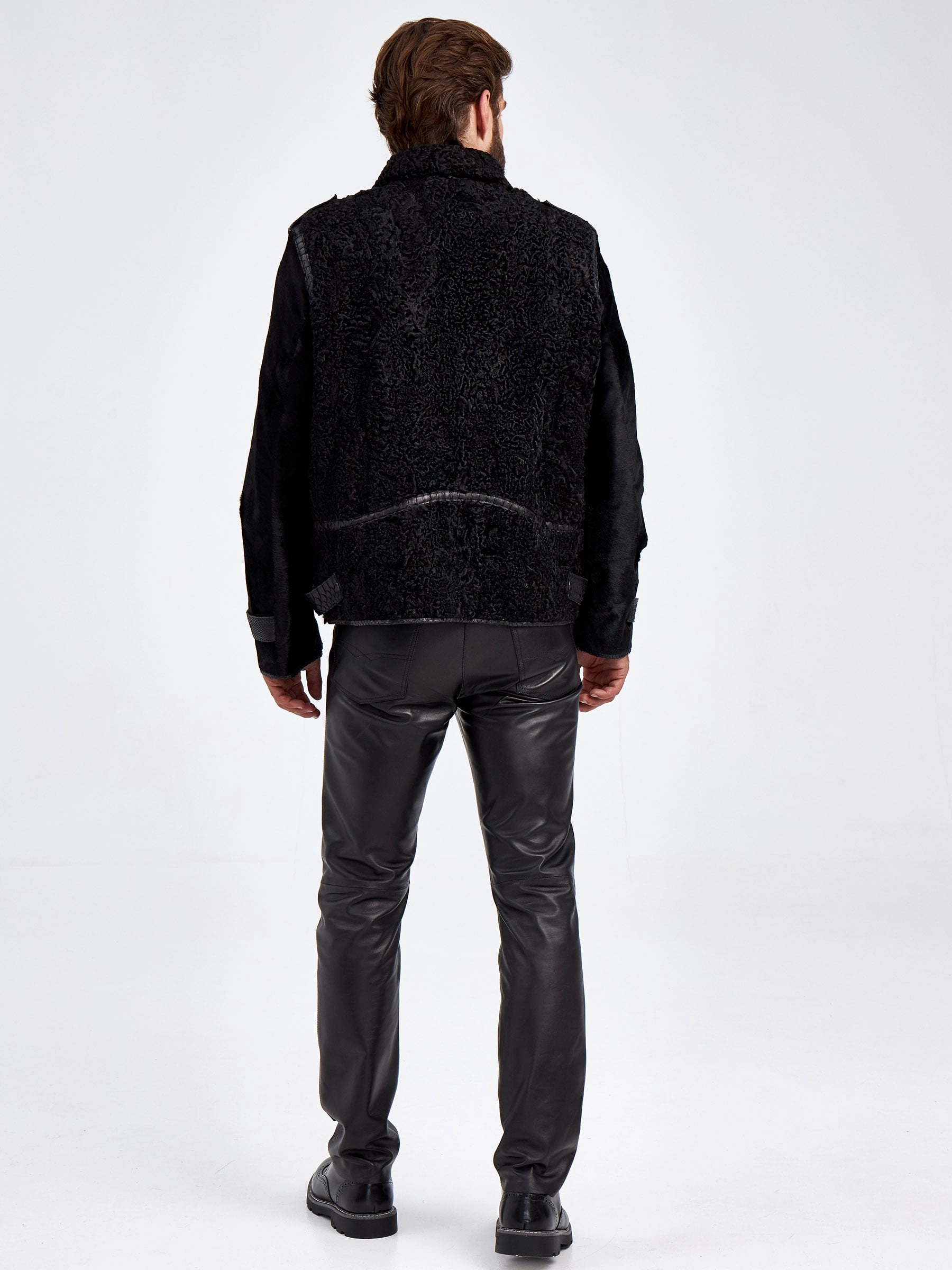Шуба меховая из канадского каракуля для мужчин VE-7910, черная, размер 48, артикул 71270