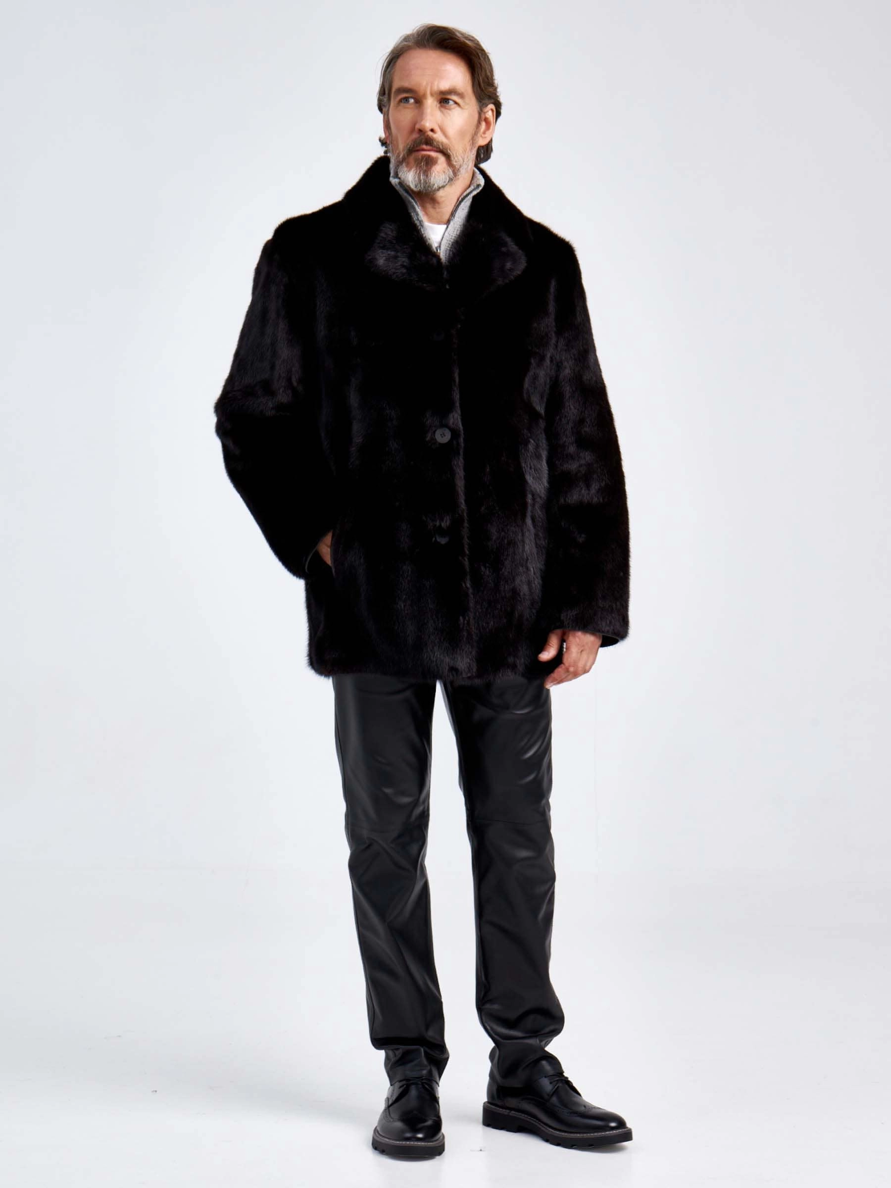 Меховая шуба из меха норки для мужчин Delon, черная, размер 48, артикул 71300