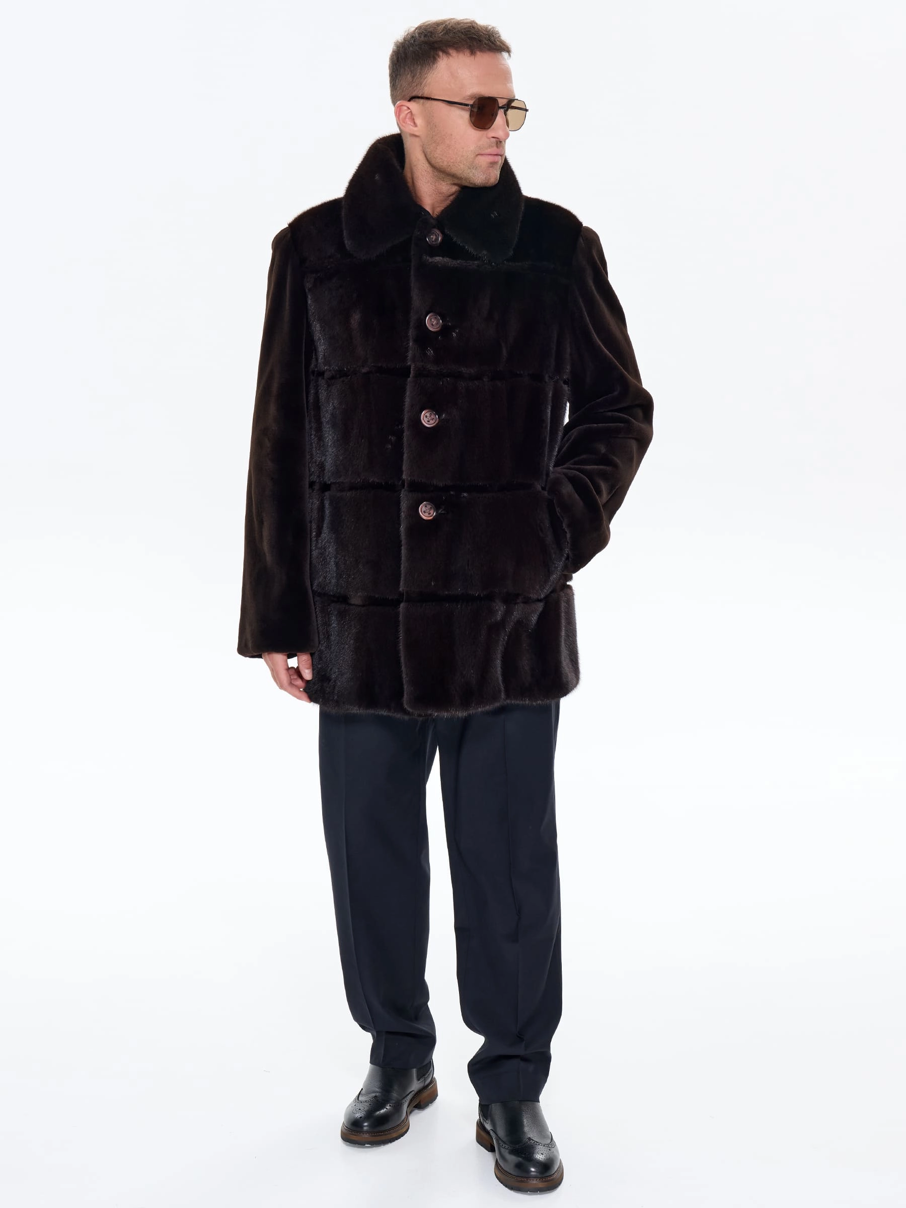 Товар шуба мужская из меха норки regal rrm-506, коричневая, размер 56, артикул 34550 выполнен из норка с застежкой пуговицы. Рассчитан на сезон: зима. Длина изделия 82 см, силуэт прямой.