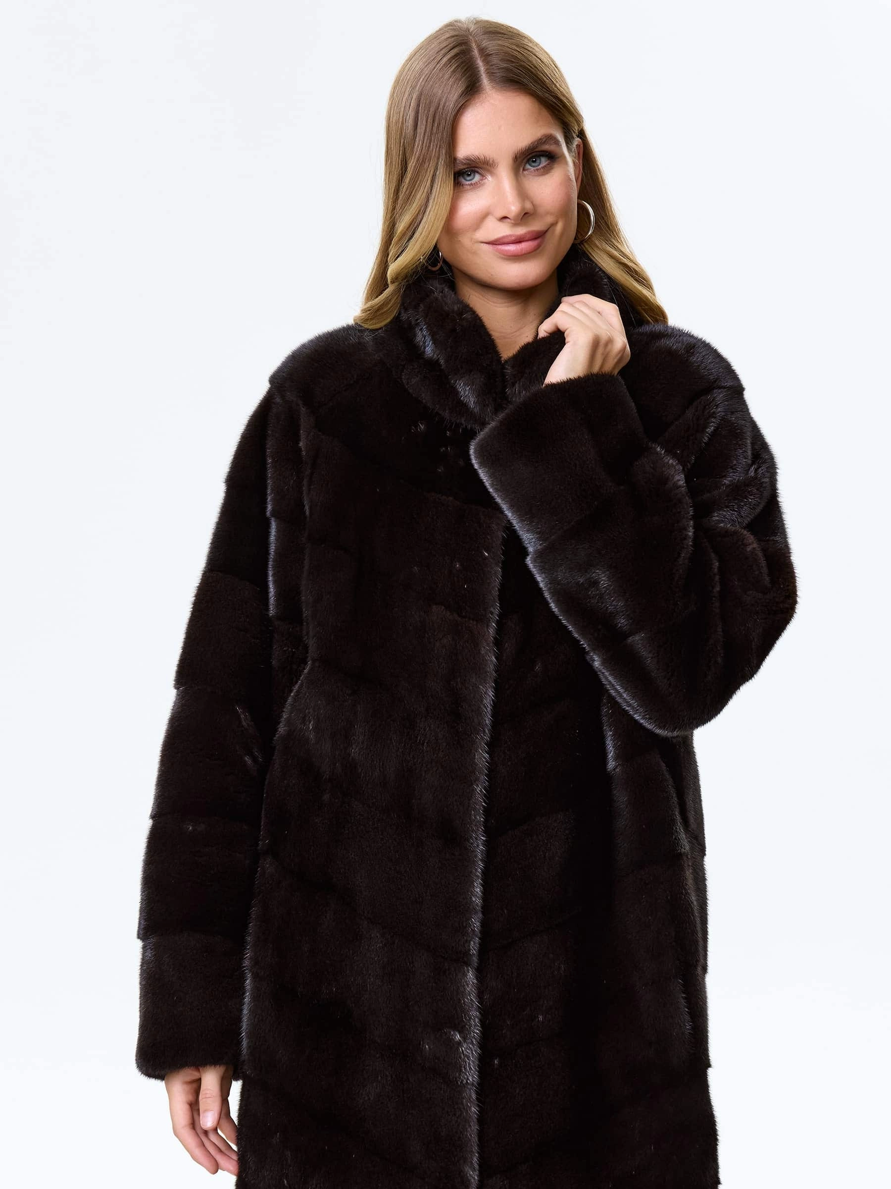 Норковая женская шуба с воротником стойка София(в), коричневая, размер 50, артикул 34060