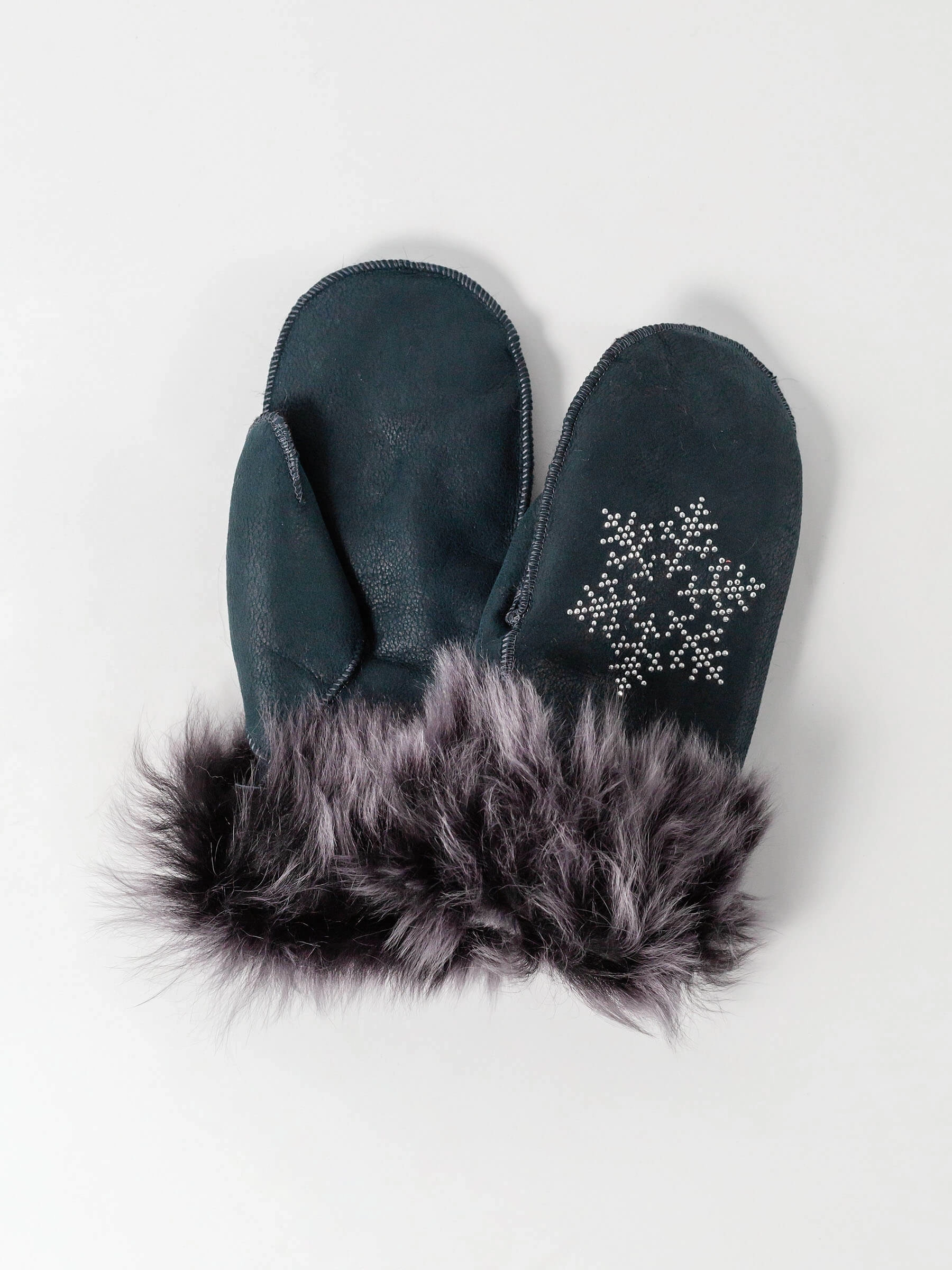 Синие варежки-снежинка из овчины меховой женские, размер One Size, артикул 20440