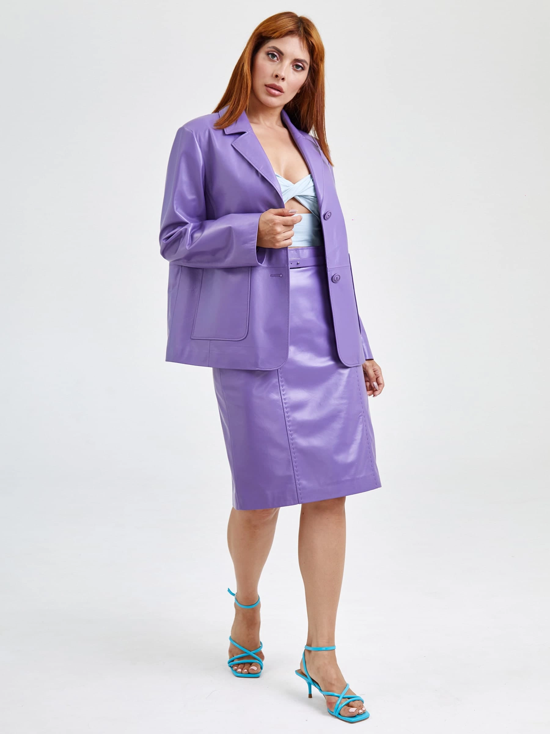 Юбка-карандаш из натуральной кожи сиреневого оттенка демонстрирует удивительную игру цвета — от приглушенного пыльного тона днем до насыщенного фиолетового вечером. Бархатистая поверхность с мягким блеском подчеркивает благородство материала, а идеально ровный окрас свидетельствует о высочайшем качестве выделки. Сочетайте с дымчато-голубыми блузами для офиса, с бежевыми водолазками для повседневных образов или с графитовыми пиджаками для стильного контраста — эта юбка раскроет всю многогранность сиреневой палитры, оставаясь универсальной базой вашего гардероба.