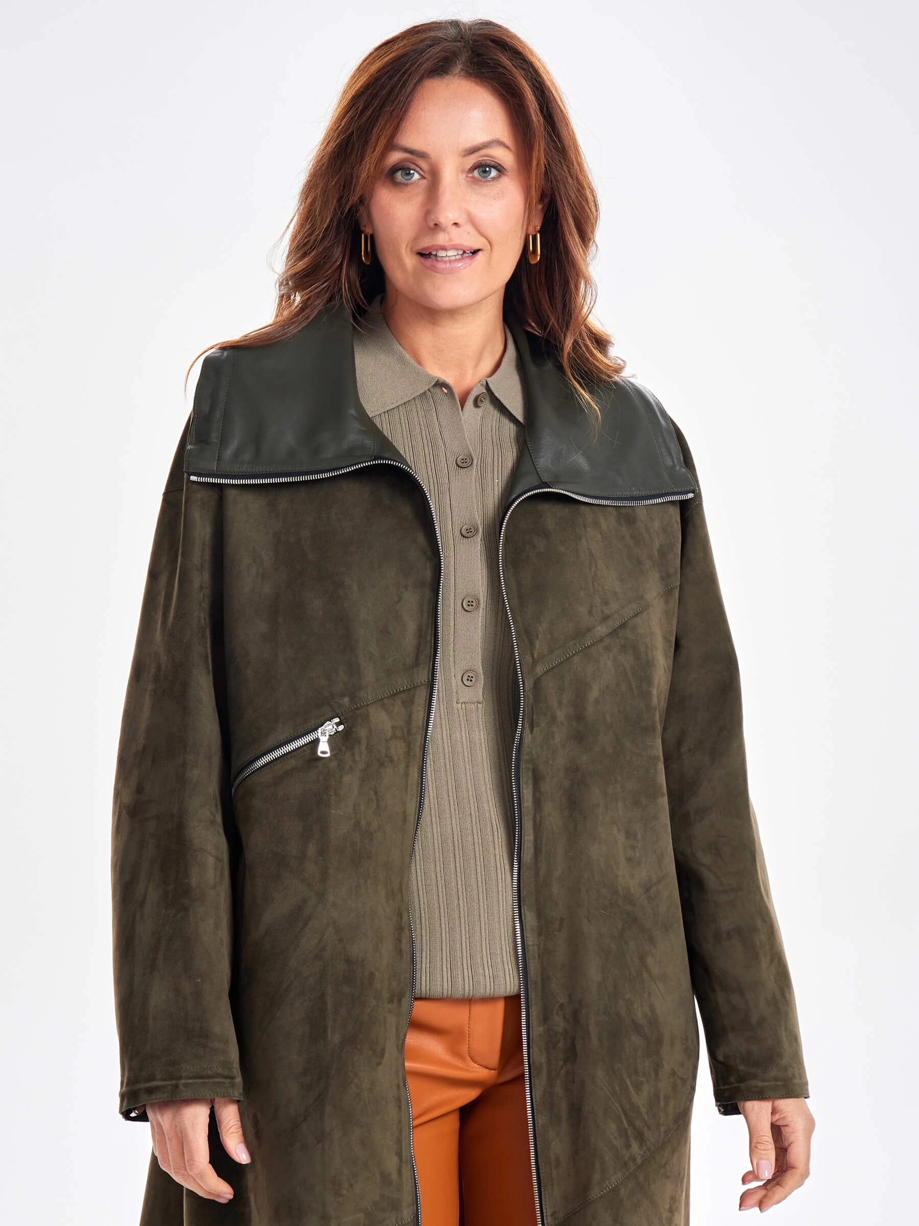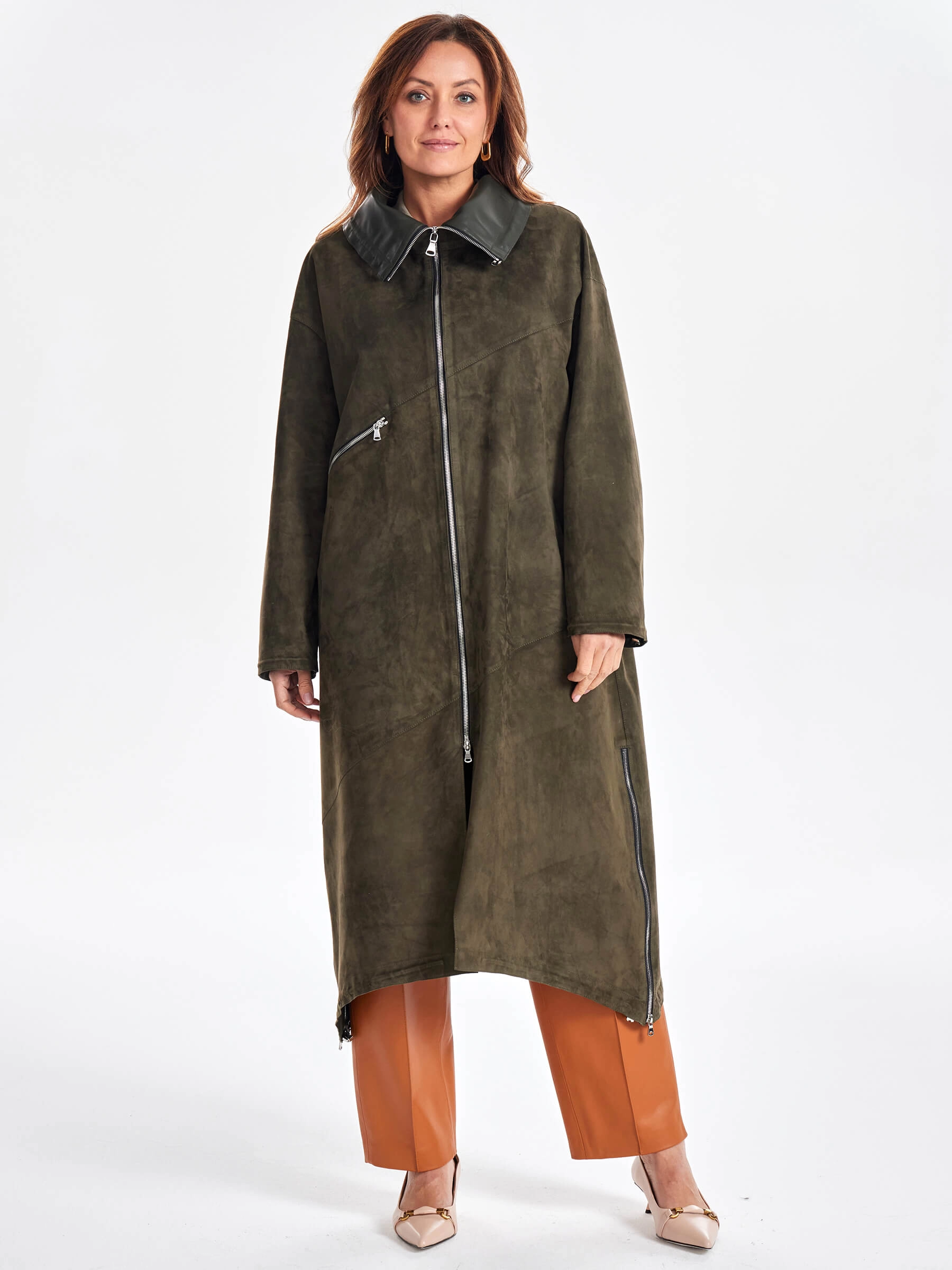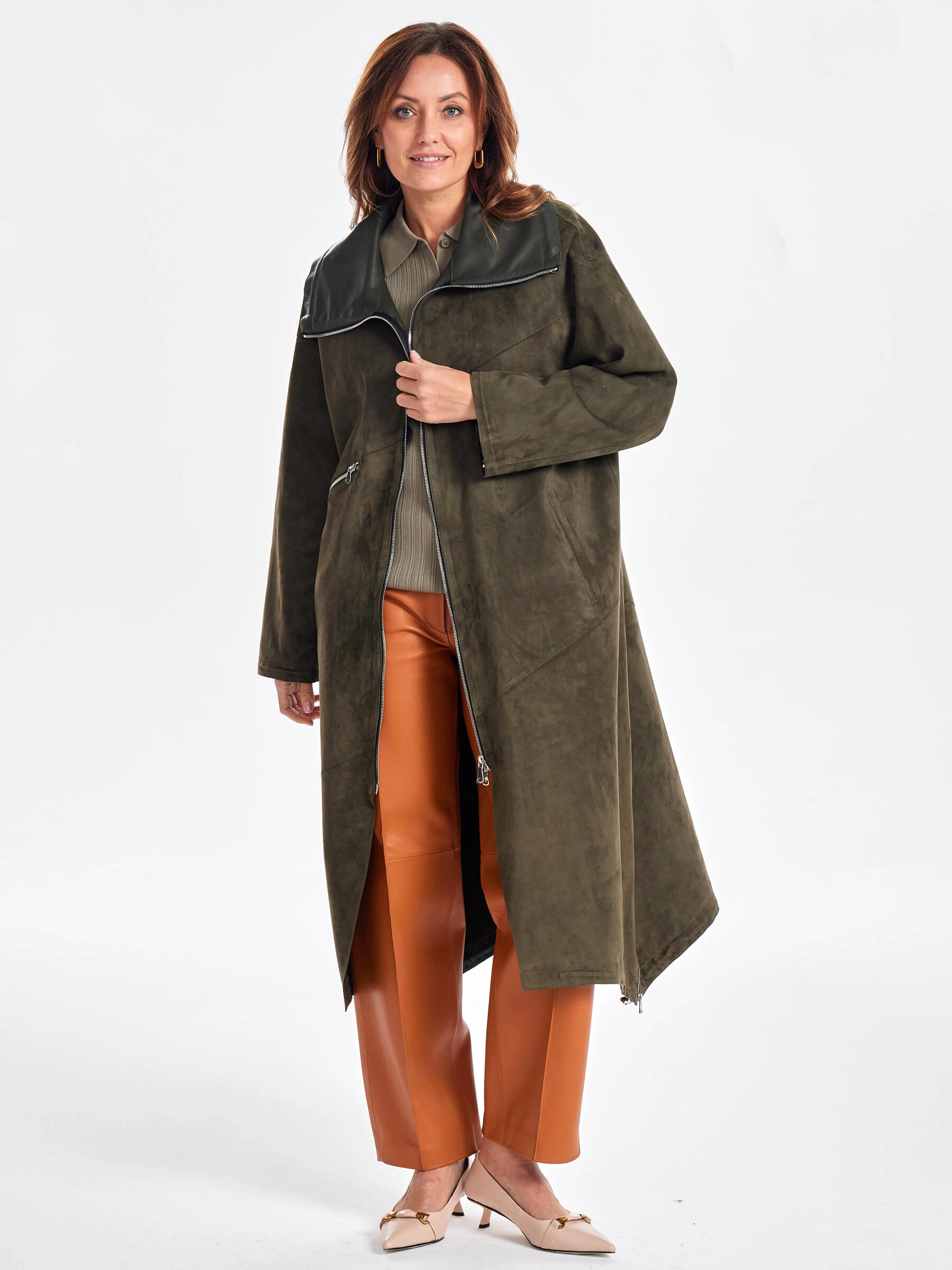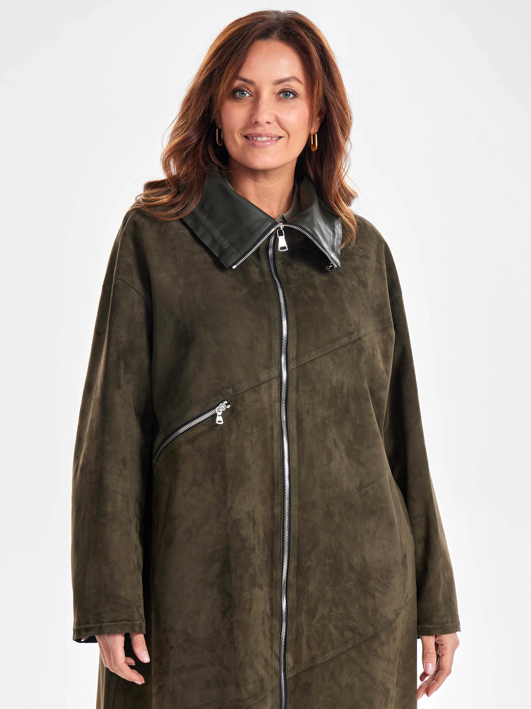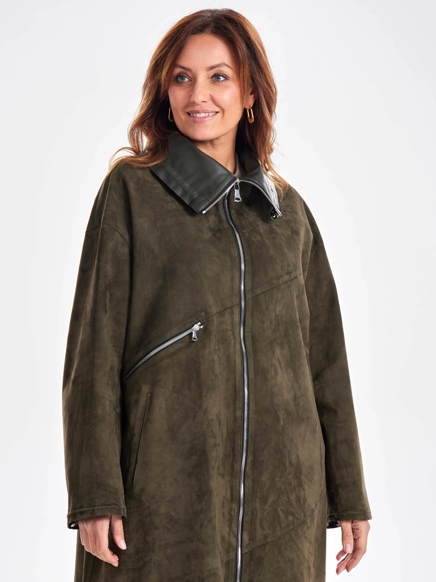 Товар трендовое женское замшевое пальто оверсайз премиум класса 3061з, хаки, размер 50, артикул 63440 выполнен из натуральной замши с застежкой молния. Рассчитан на сезон: весна-лето. Длина изделия 115 см, силуэт оверсайз.