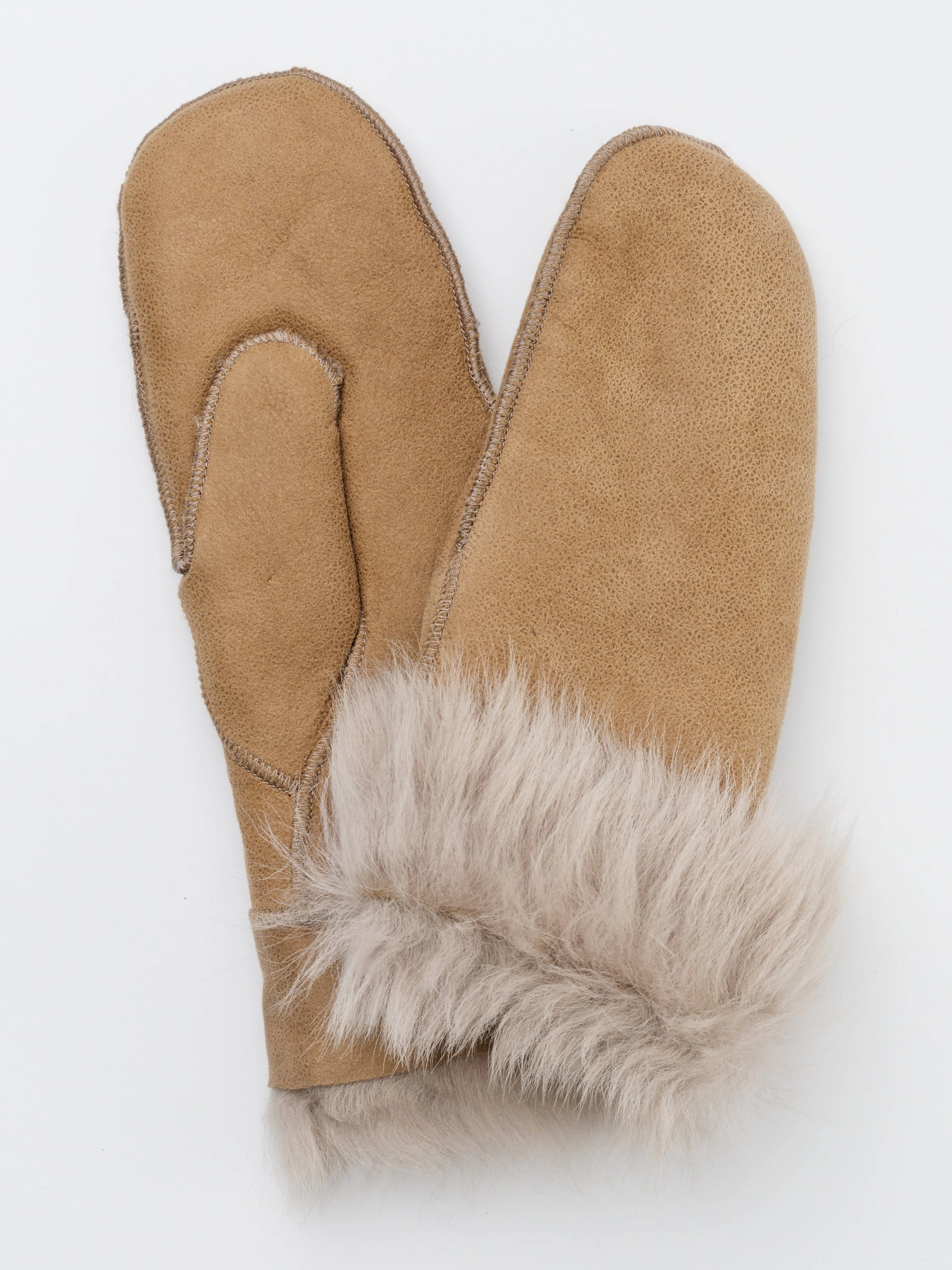 Варежки из овчины меховой женские, бежевые, размер One Size, артикул 20330