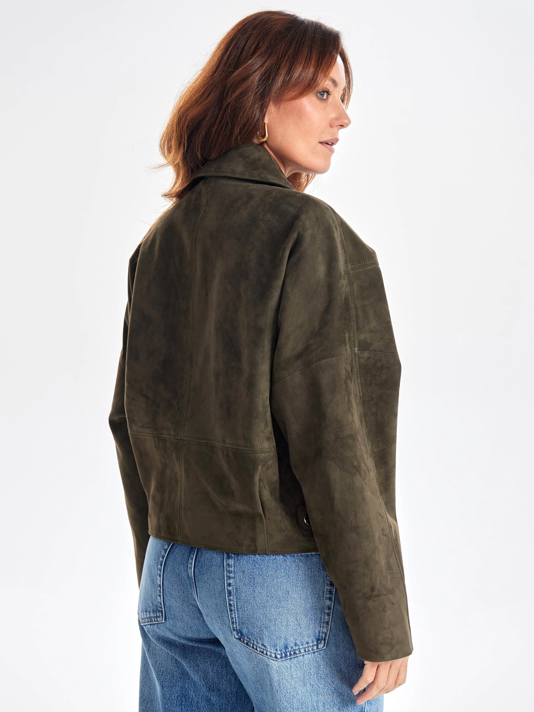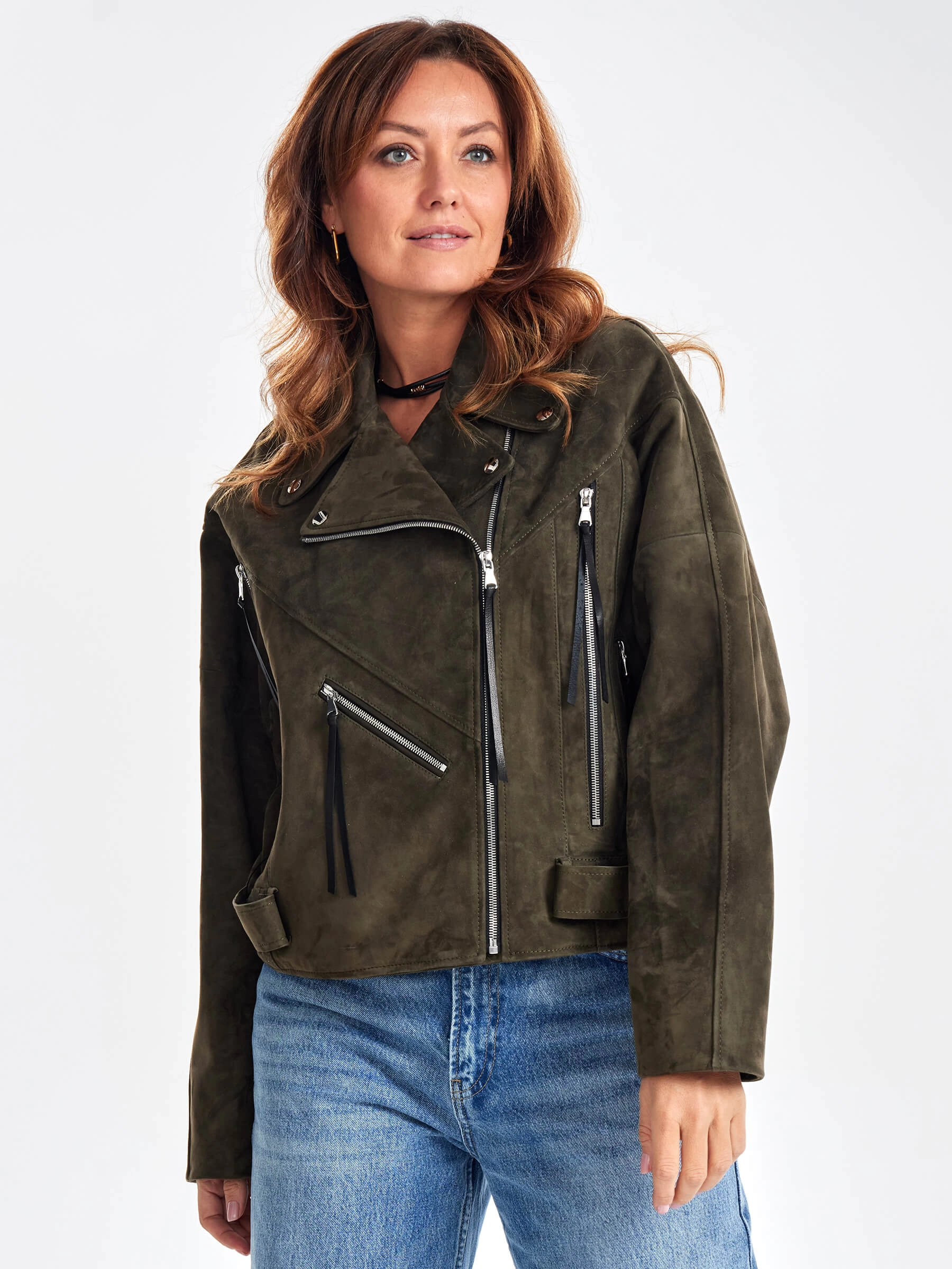 Замшевая короткая куртка косуха для женщин премиум класса 3051з, хаки, размер 44, артикул 23420