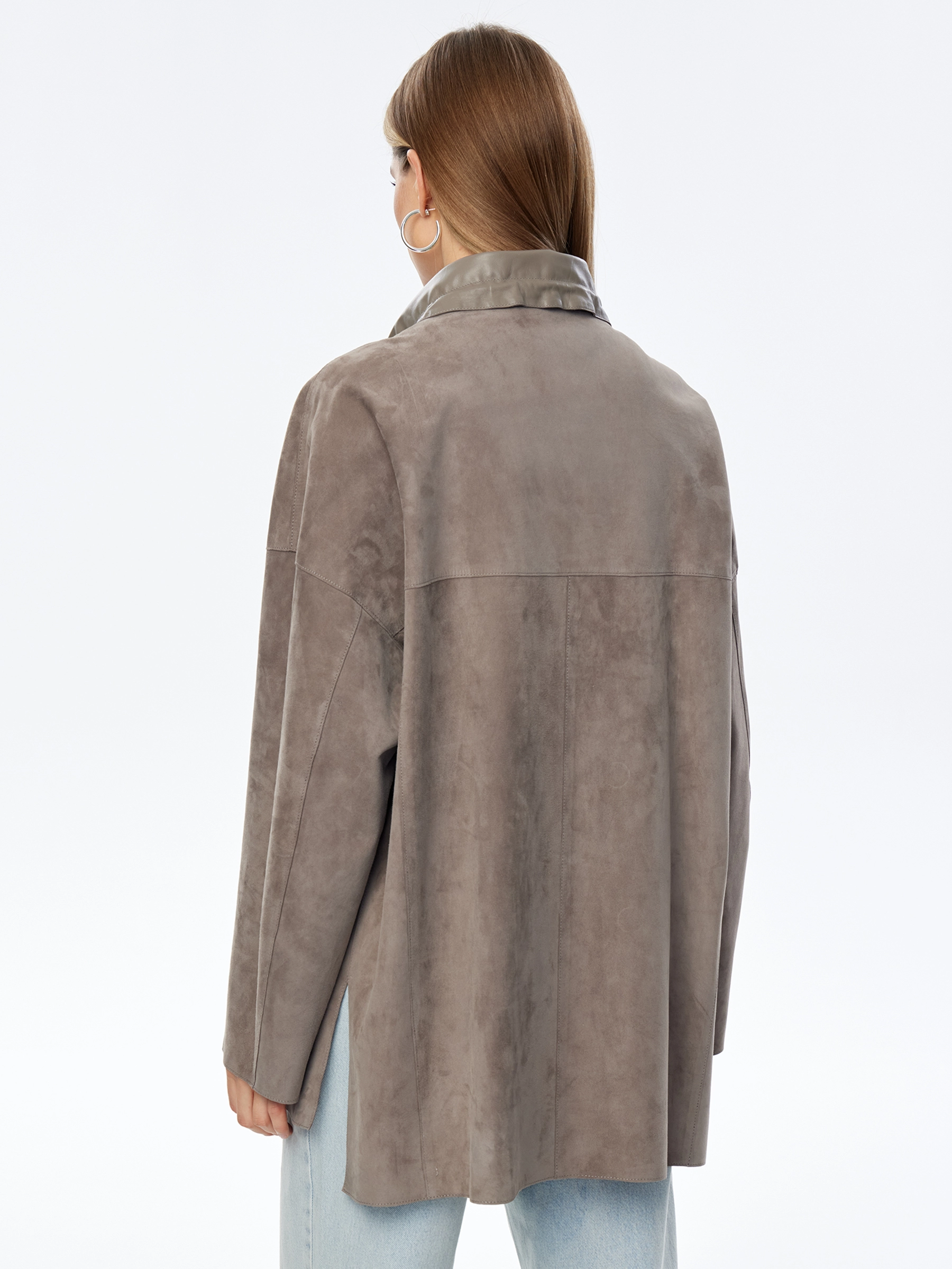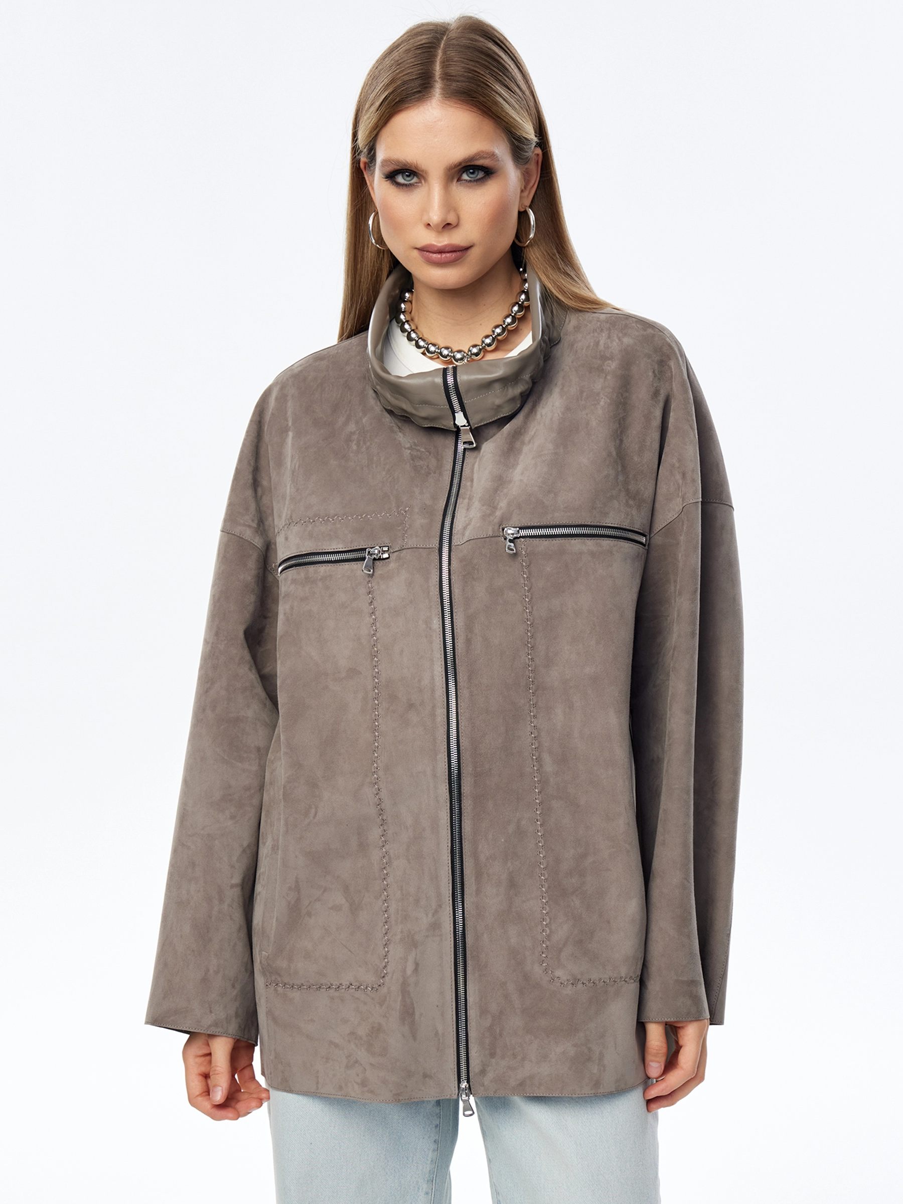 Замшевая куртка оверсайз для женщин премиум класса 3055з, серая, размер 50, артикул 24010