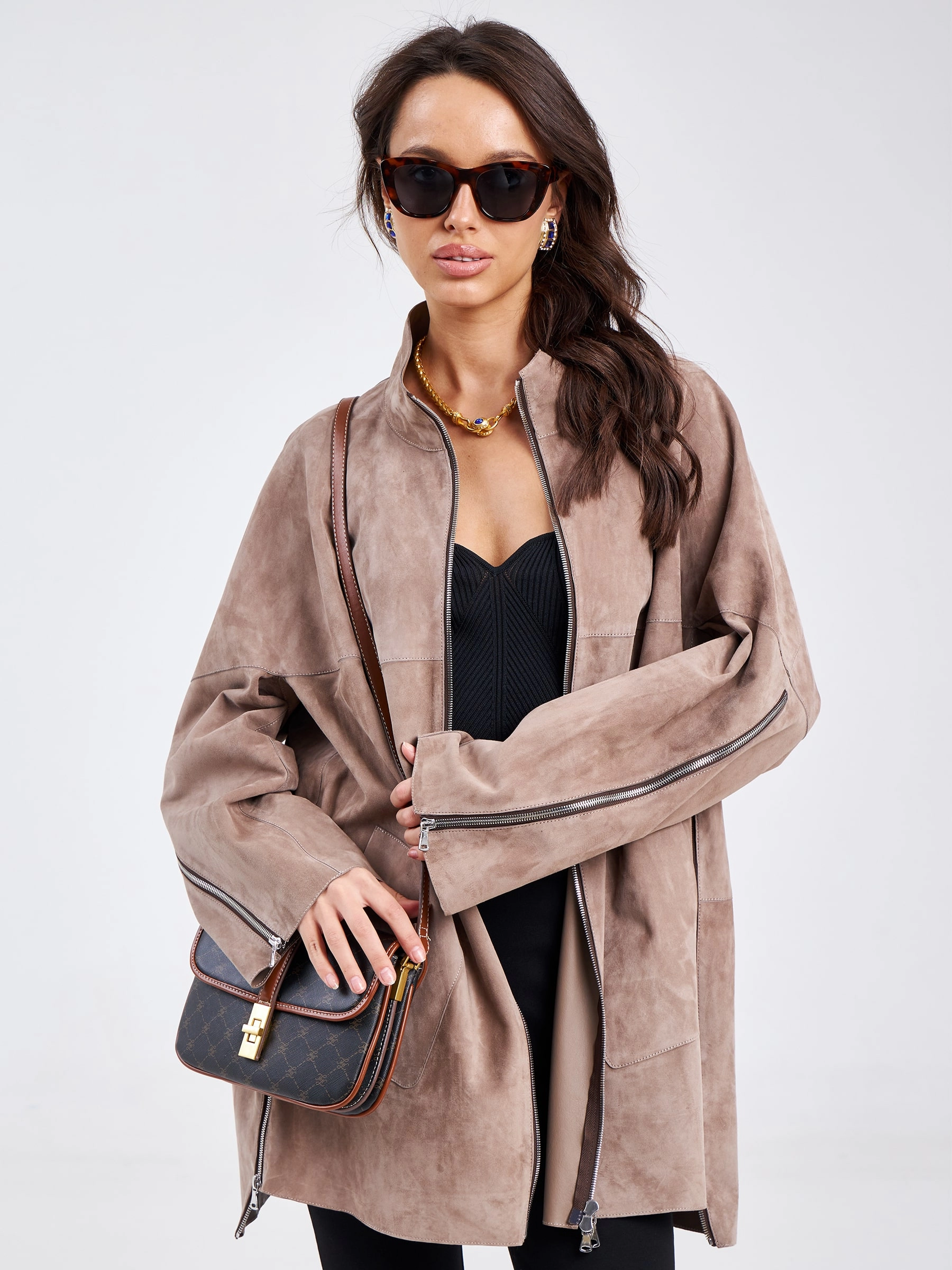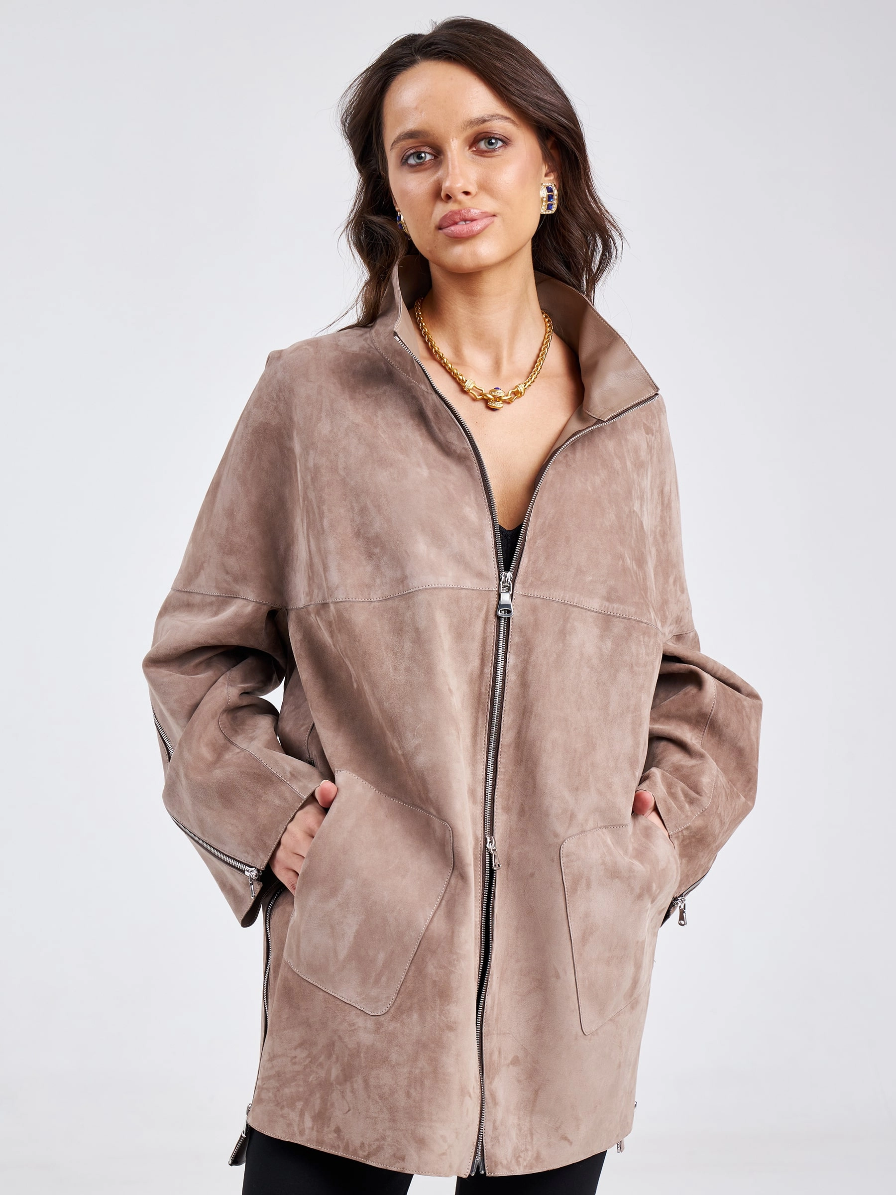 Товар замшевая женская куртка оверсайз премиум класса 3037, светло-коричневая, размер 46, артикул 23160 выполнен из натуральной замши с застежкой молния. Рассчитан на сезон: весна-лето. Длина изделия 84 см, силуэт свободный.