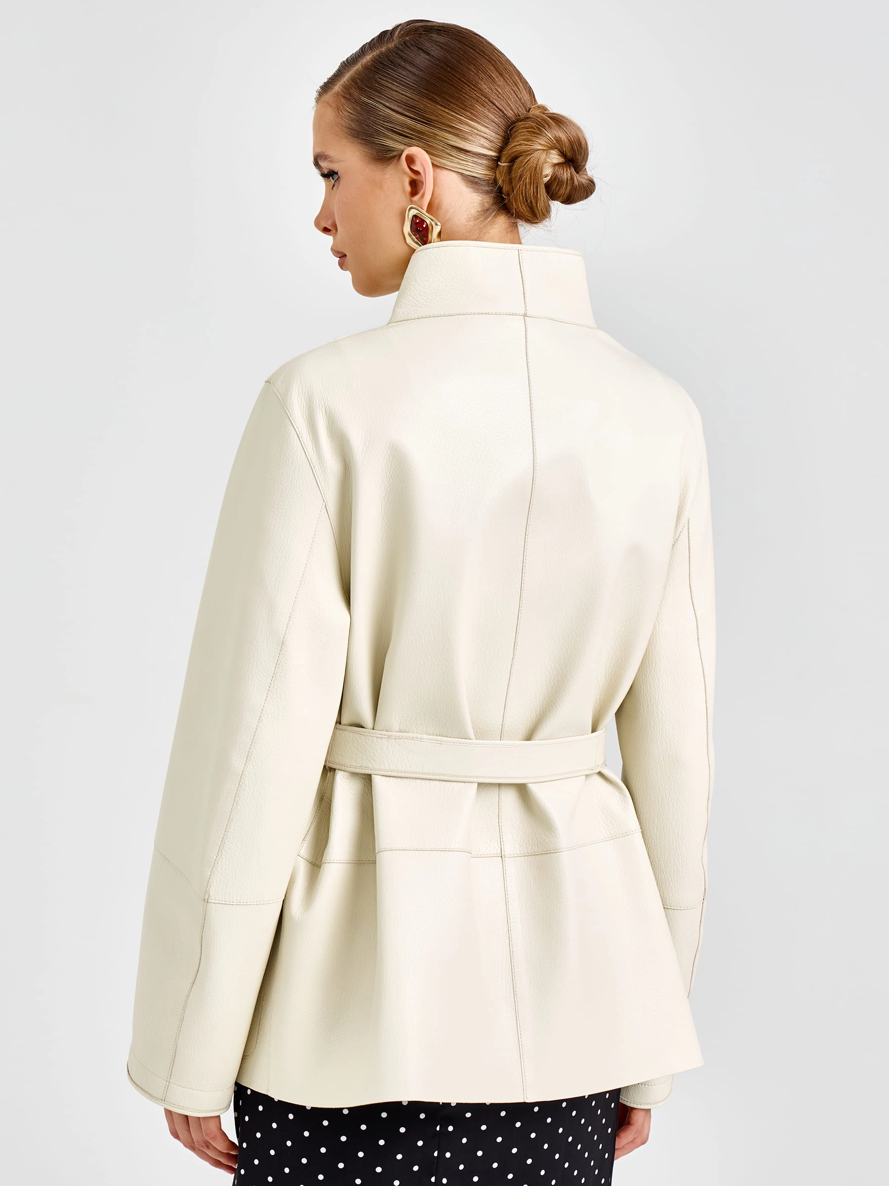 Женская белая кожаная куртка премиум класса 3105, размер 46, артикул 92150