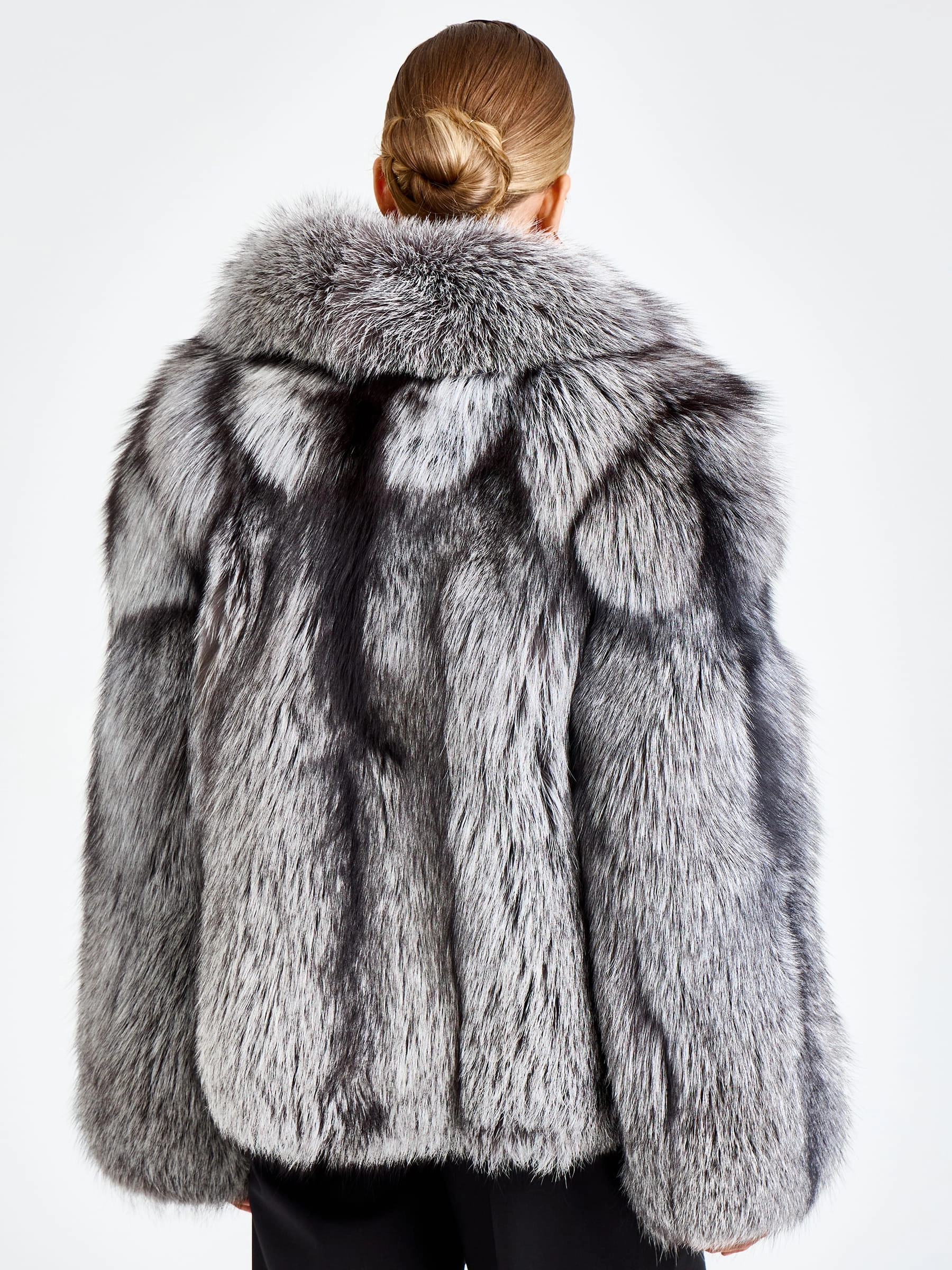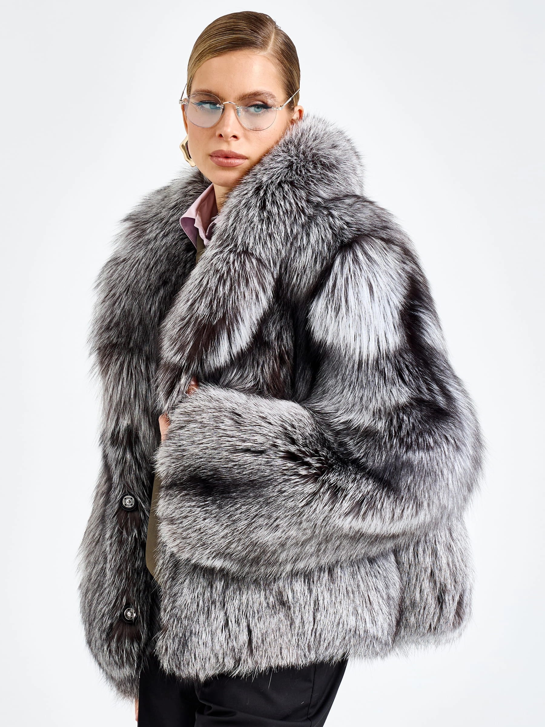 Женская короткая шуба из меха лисы Л1010-1045, серебристо-чёрная, размер 46, артикул 65500