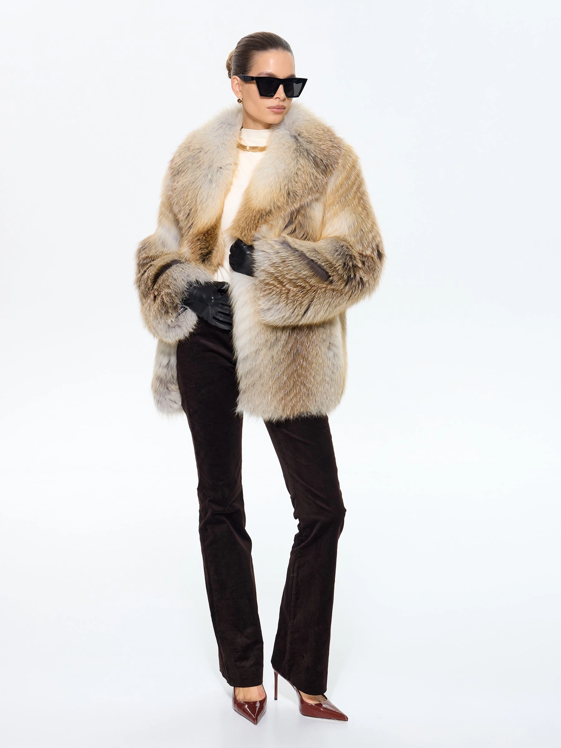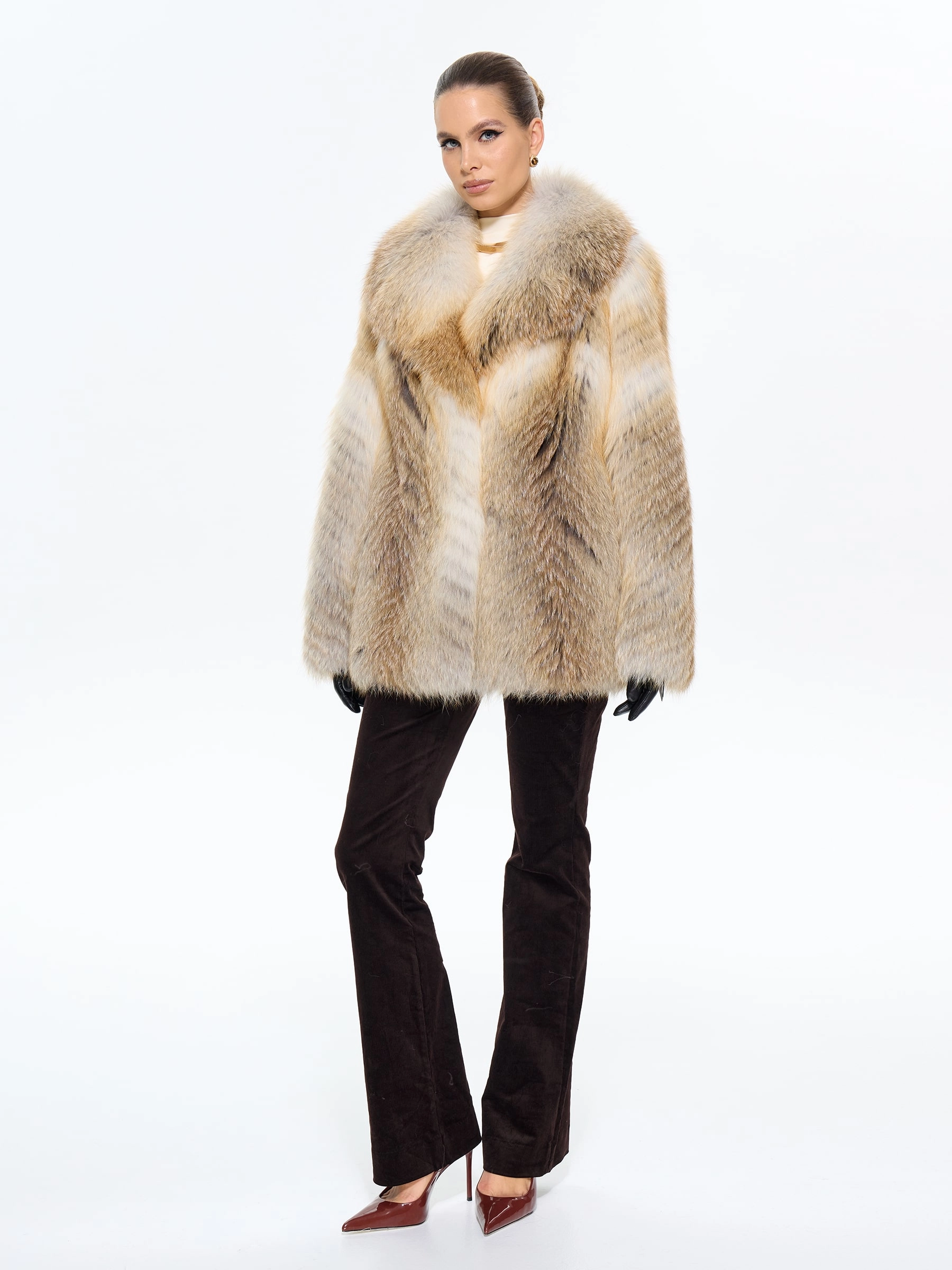 Эта женская короткая шуба из роскошного меха лисы с эффектным английским воротником — настоящий вызов обыденности и воплощение дерзкой элегантности. Модель свободного кроя длиной 80 см (46 размера) создана из отборного длинноворсового меха, который не только дарит королевское тепло в зимние морозы, но и мгновенно приковывает восхищенные взгляды благодаря уникальной игре фактур и благородным переливам. Английский воротник, ниспадающий на плечи, придает образу аристократичный шик, а втачной рукав и скрытая застежка на клипсах обеспечивают безупречную посадку и комфорт. Качественная смесовая подкладка и фиксация меха по всем правилам скорняжного искусства гарантируют долговечность изделия. Стилисты рекомендуют создавать с этой шубой самые смелые образы: от дерзких сочетаний с кожаными леггинсами и ботфортами до уютных ансамблей с объемным свитером и грубыми ботинками — в любом варианте именно эта шуба станет главным акцентом вашего гардероба, подчеркивающим бескомпромиссный вкус, яркую индивидуальность и истинн