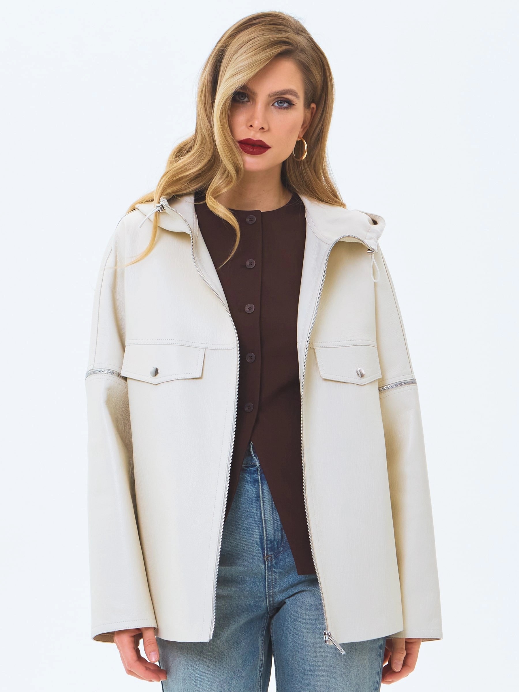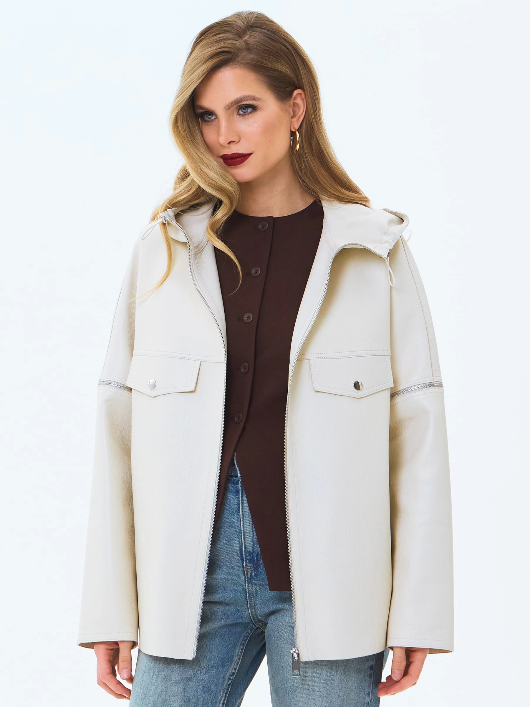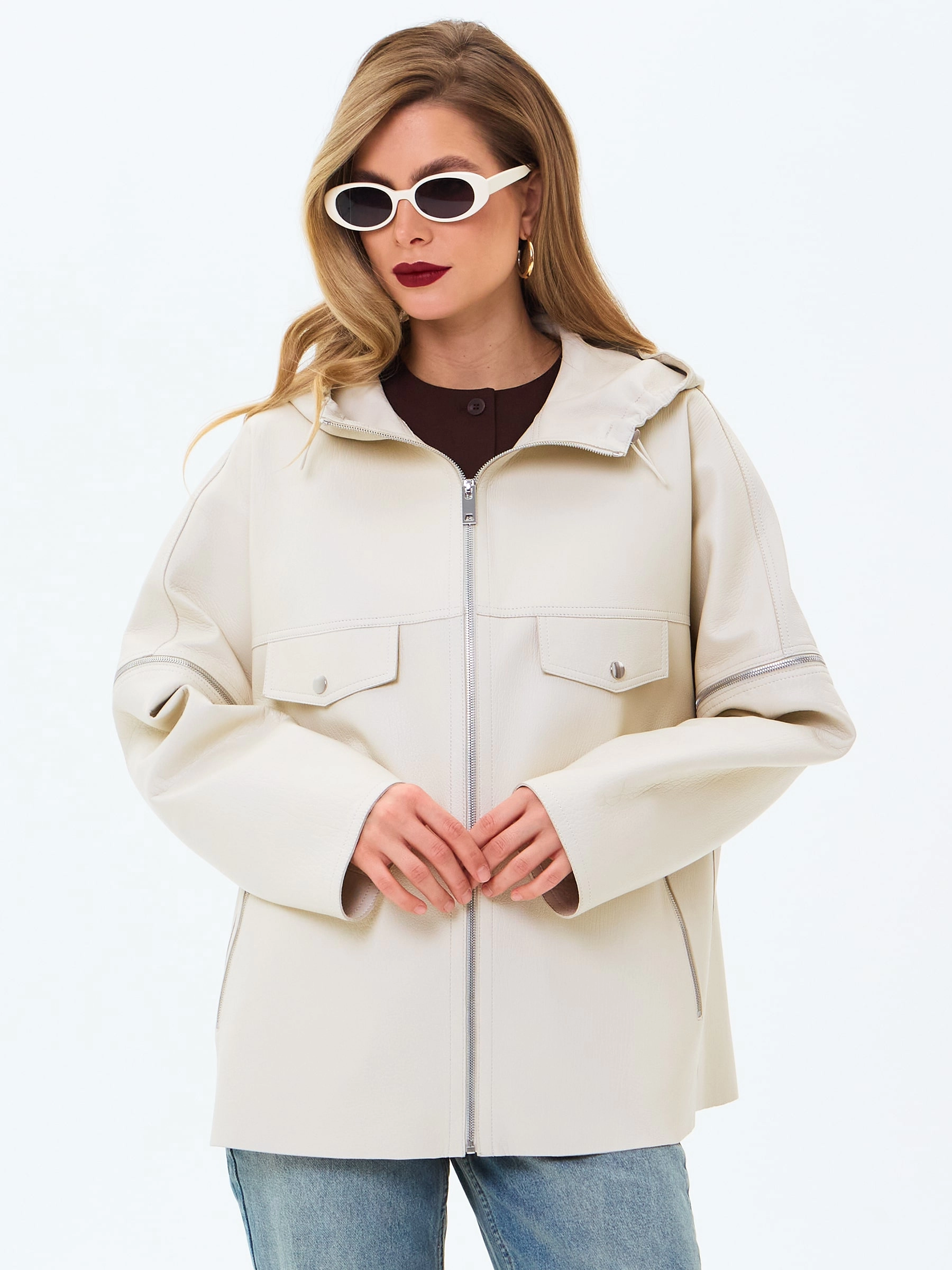 Товар женская кожаная куртка премиум класса 3086, бежевая, размер 46, артикул 24470 выполнен из натуральной кожи с застежкой молния. Рассчитан на сезон: весна-лето. Длина изделия 68 см, силуэт свободный.