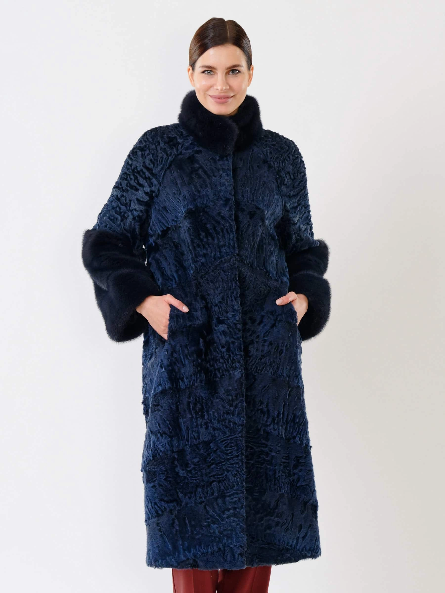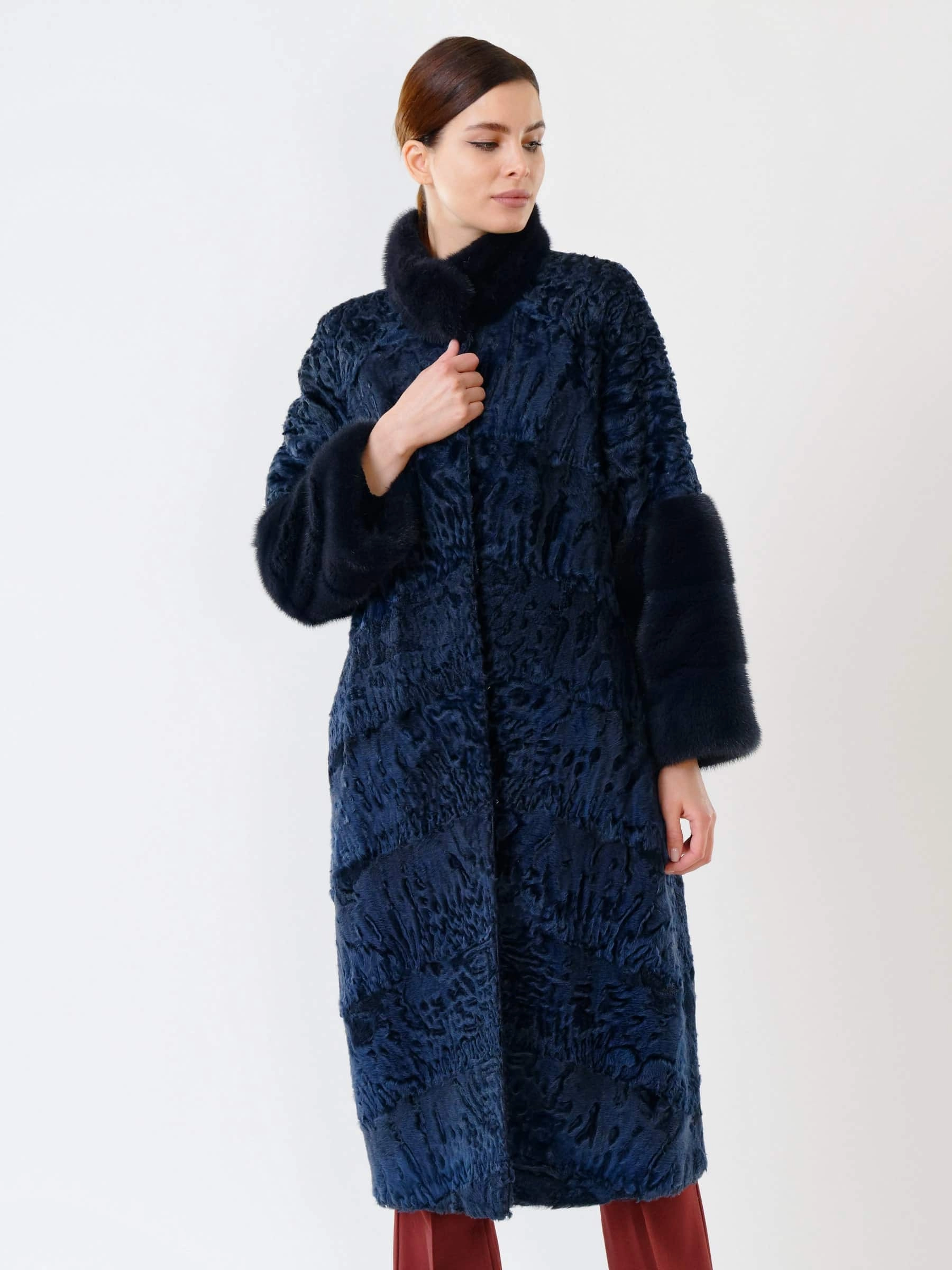 Женская шуба из меха каракуля с мехом норки 17101д(сн), синяя, размер 44, артикул 22580