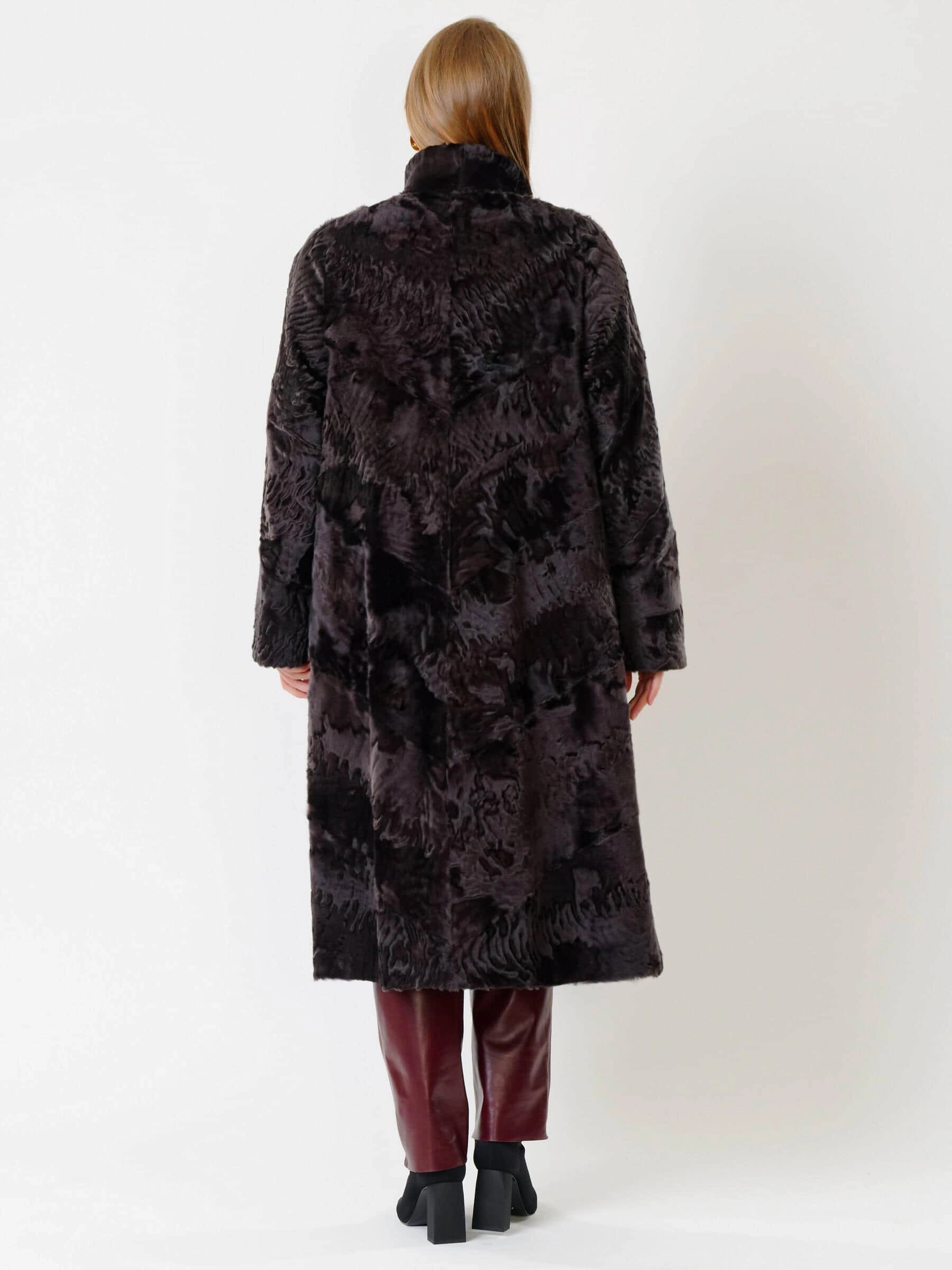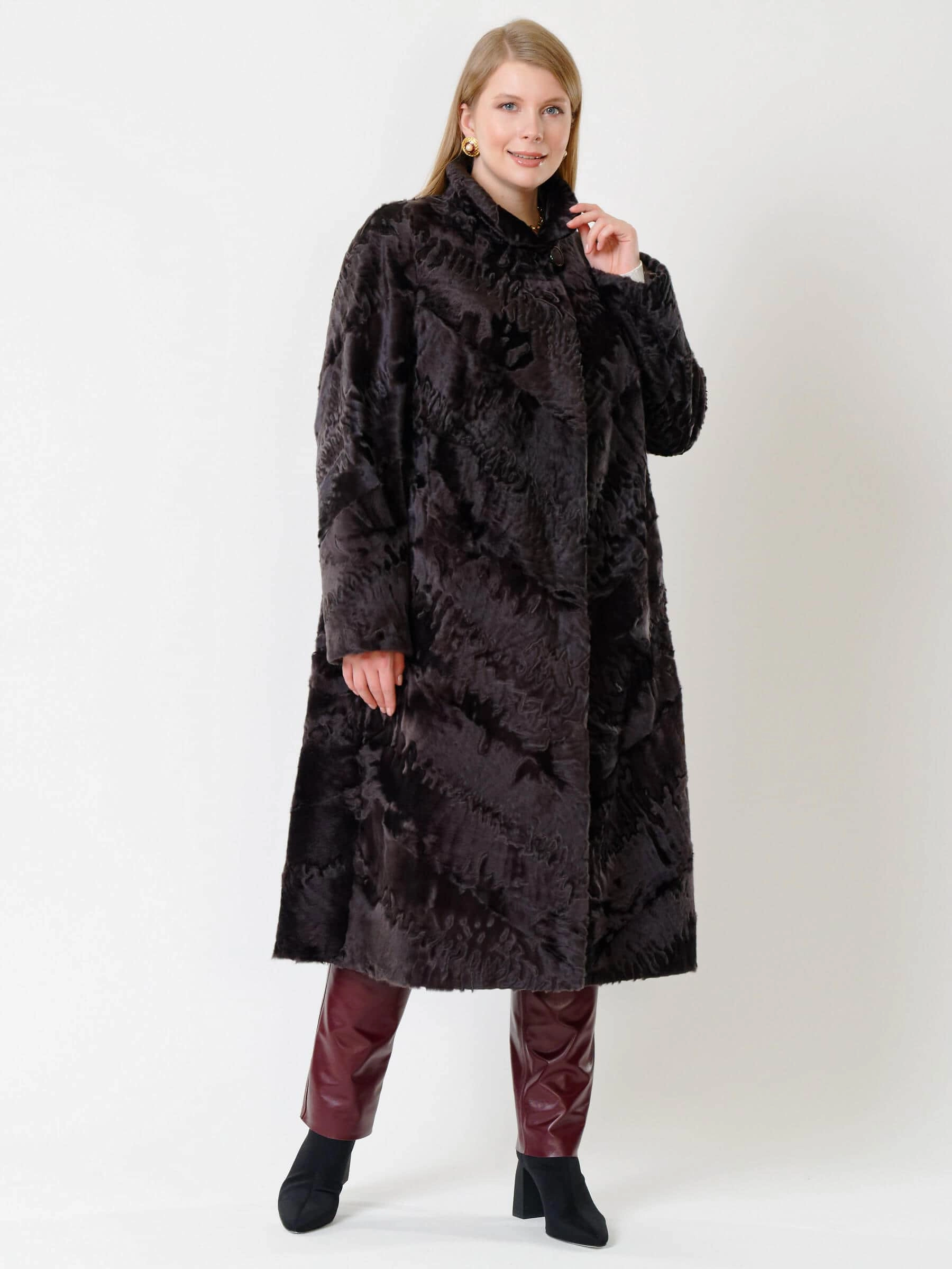 Длинная женская каракулевая шуба Елизавета(с), коричневая, размер 56, артикул 22680