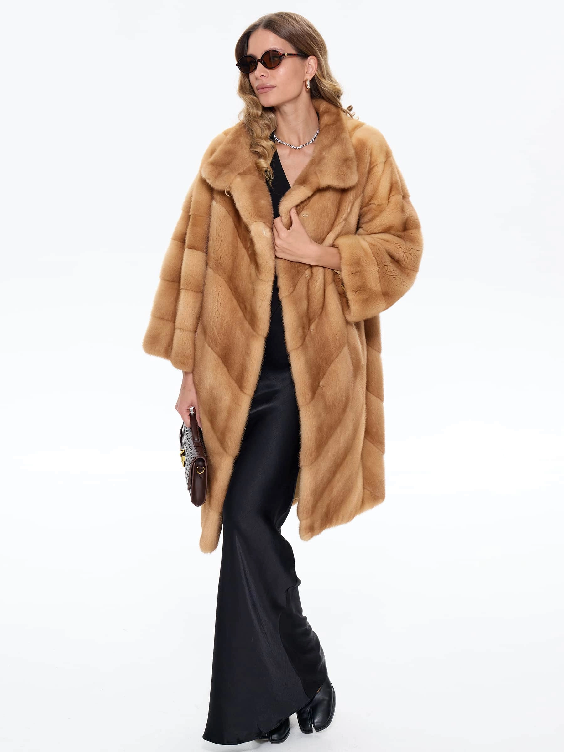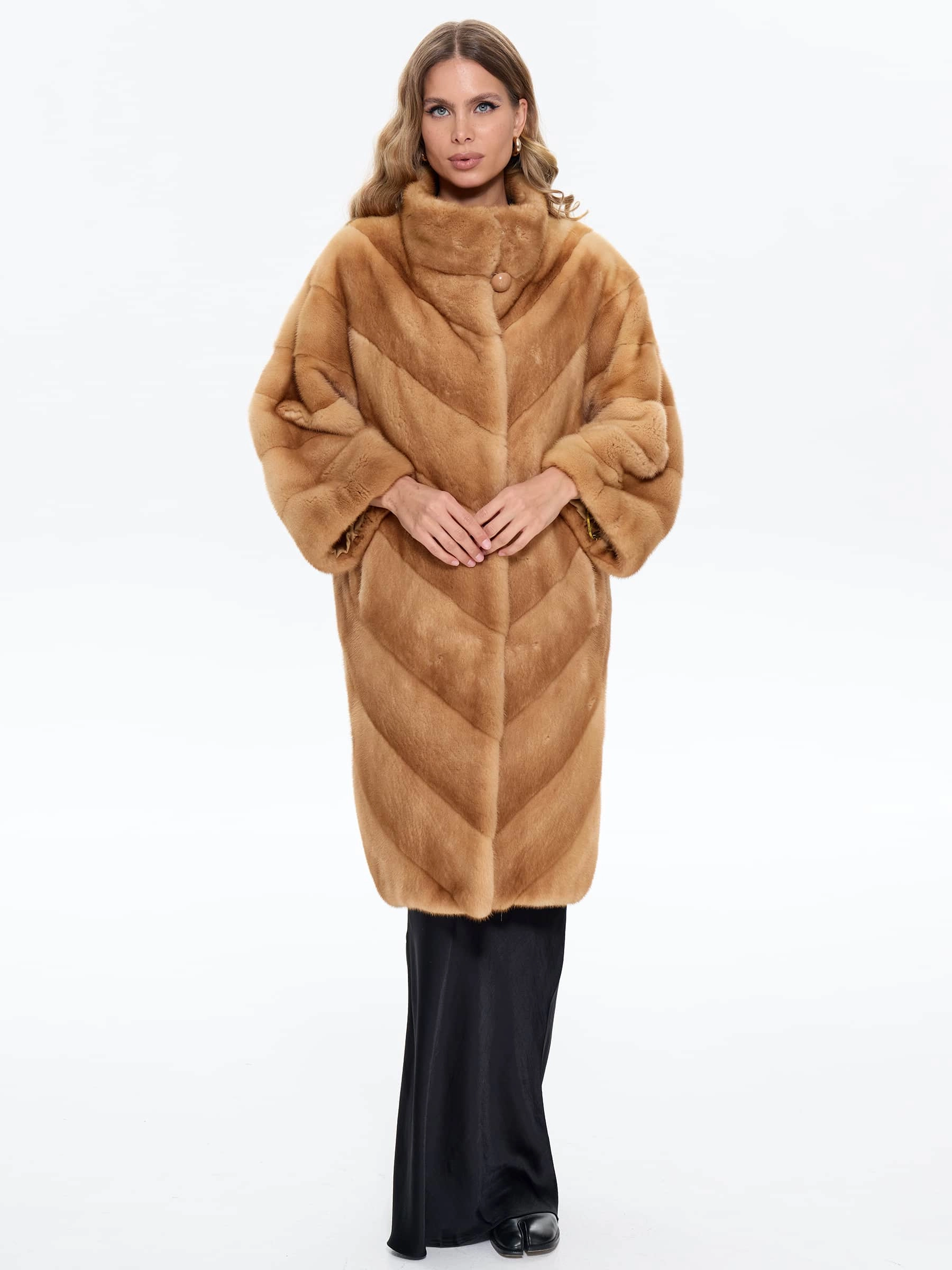 Женская шуба из меха норки BRASCHI MLD 001, рыжая, размер 42, артикул 34390