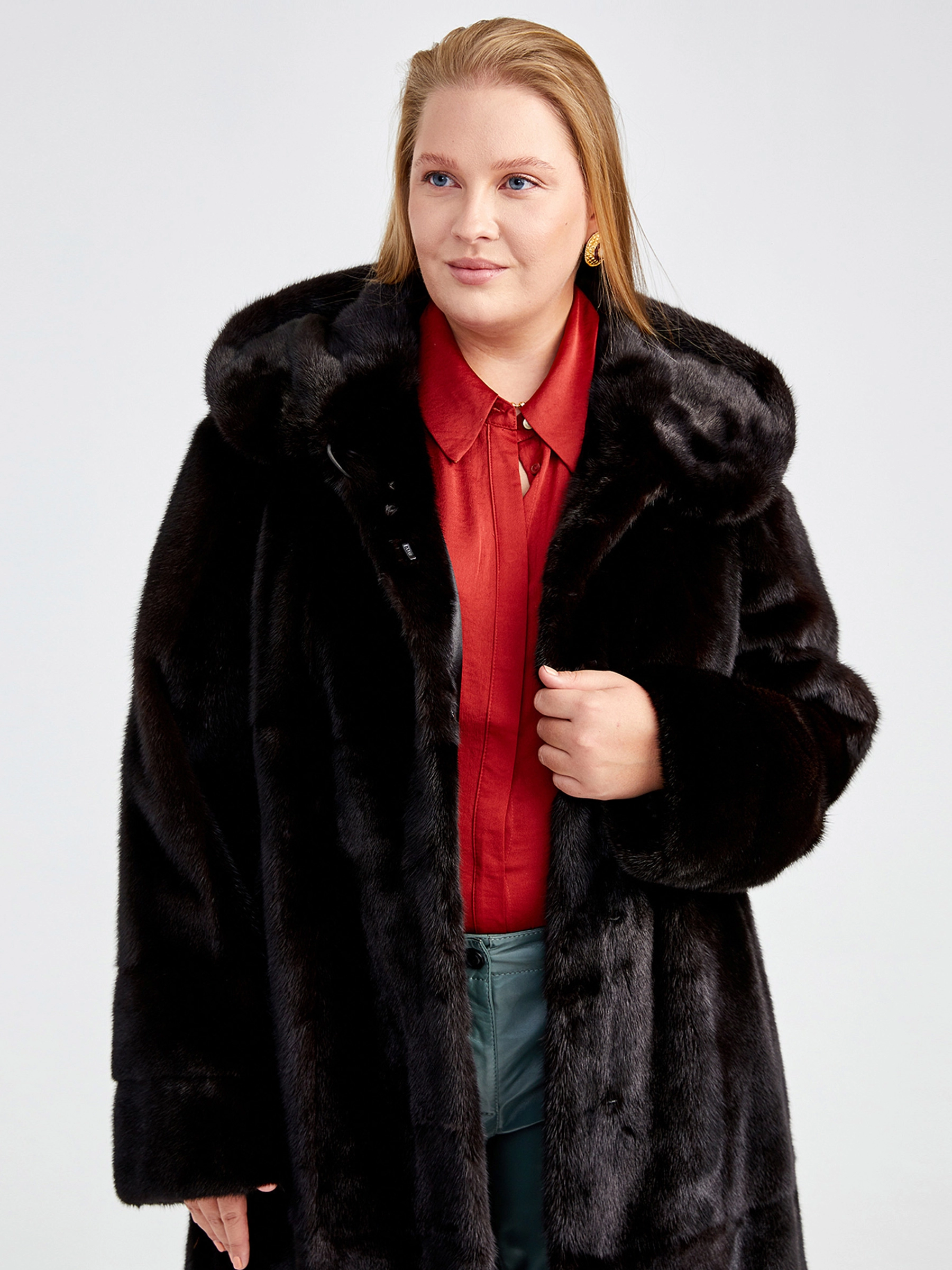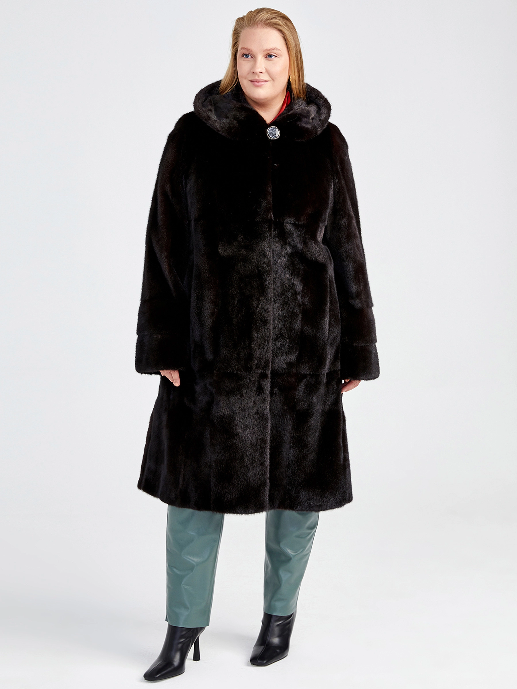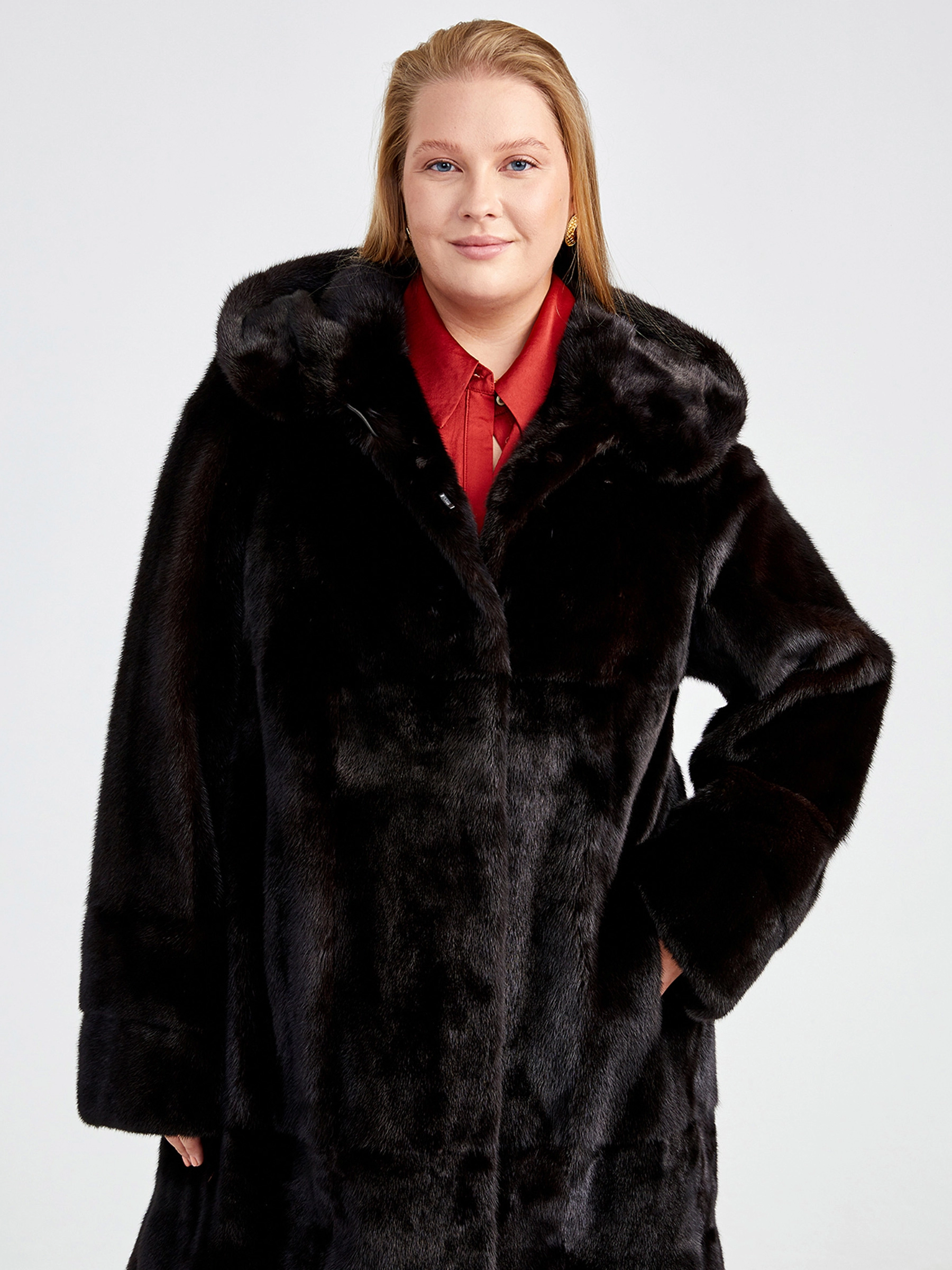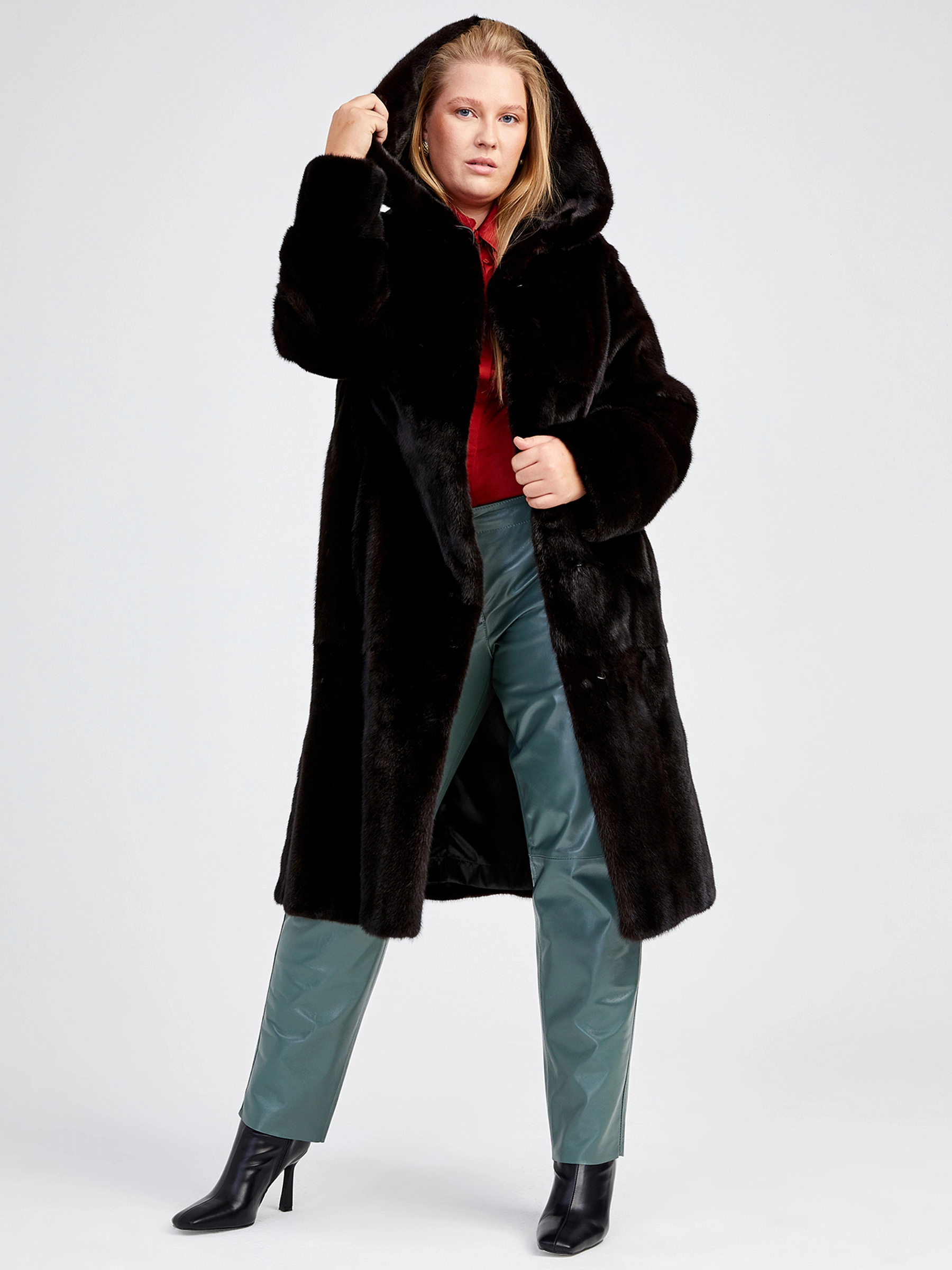 Классическая шубка из меха скандинавской норки в расклешённом силуэте трапеция — это идеальный баланс между уютом и стилем для повседневной носки. Модель длиной свыше 90 см отличается безупречной конструкцией: чёткий втачной рукав, удобный несъёмный капюшон и практичные прорезные карманы. Густой мех с коротким остевым волосом, акцент на безупречный крой без лишней отделки, мягкая подкладка из 100% вискозы и надёжные клипсы — каждая деталь гарантирует премиальное качество и комфорт на протяжении всего сезона осень-зима.
