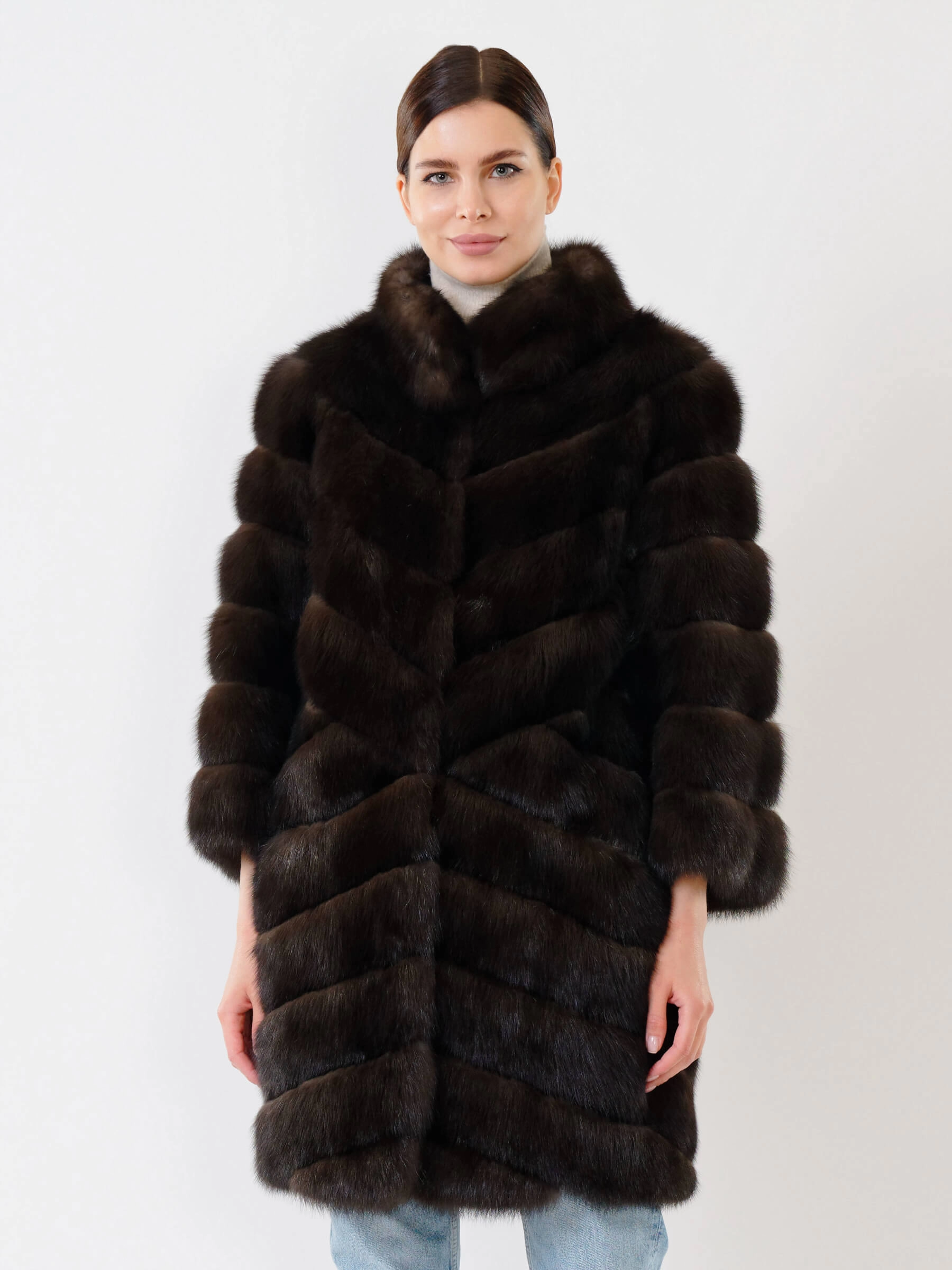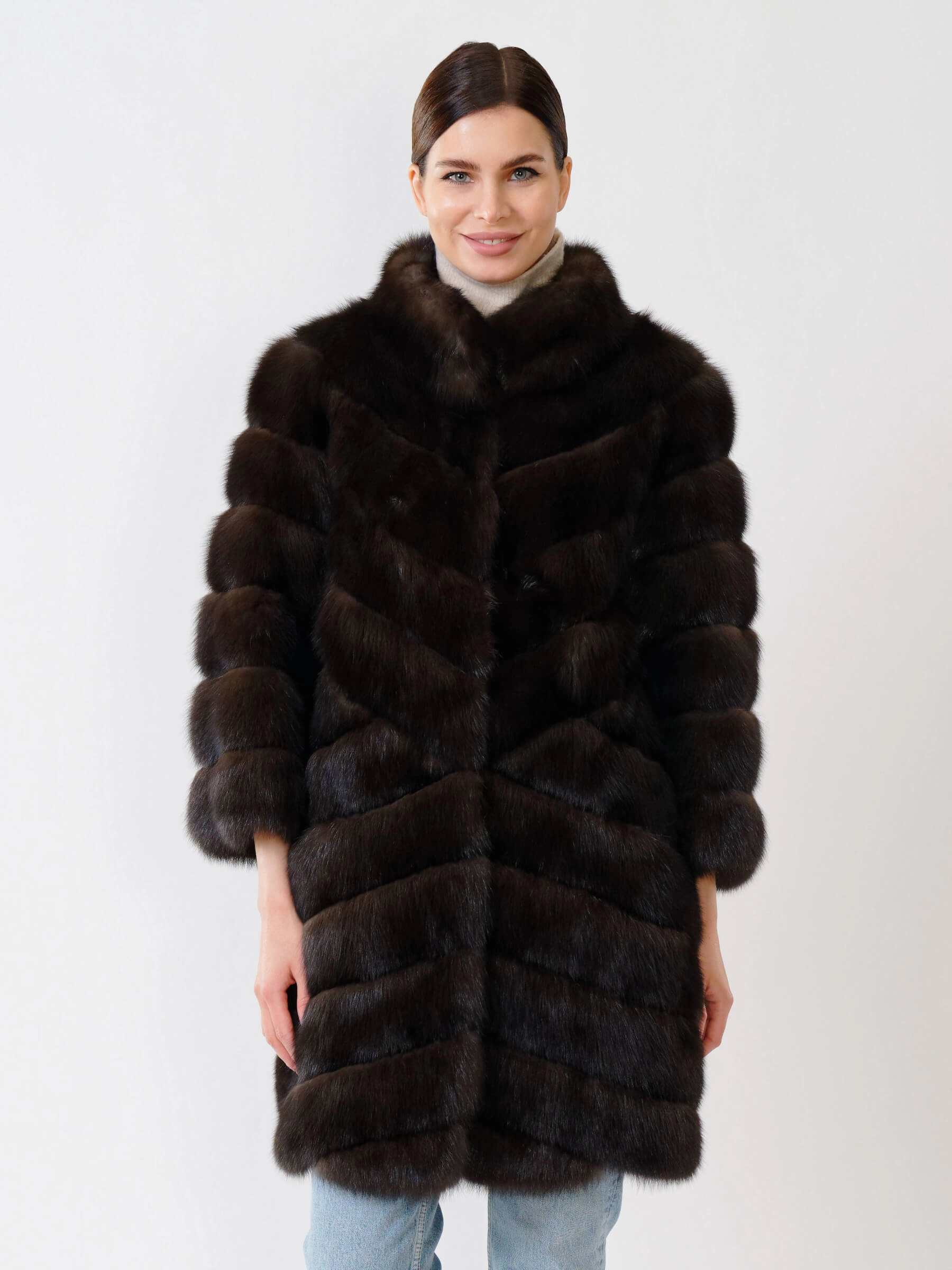 Женская шуба премиум класса из меха соболя 1908, коричневая, размер 46, артикул 19080