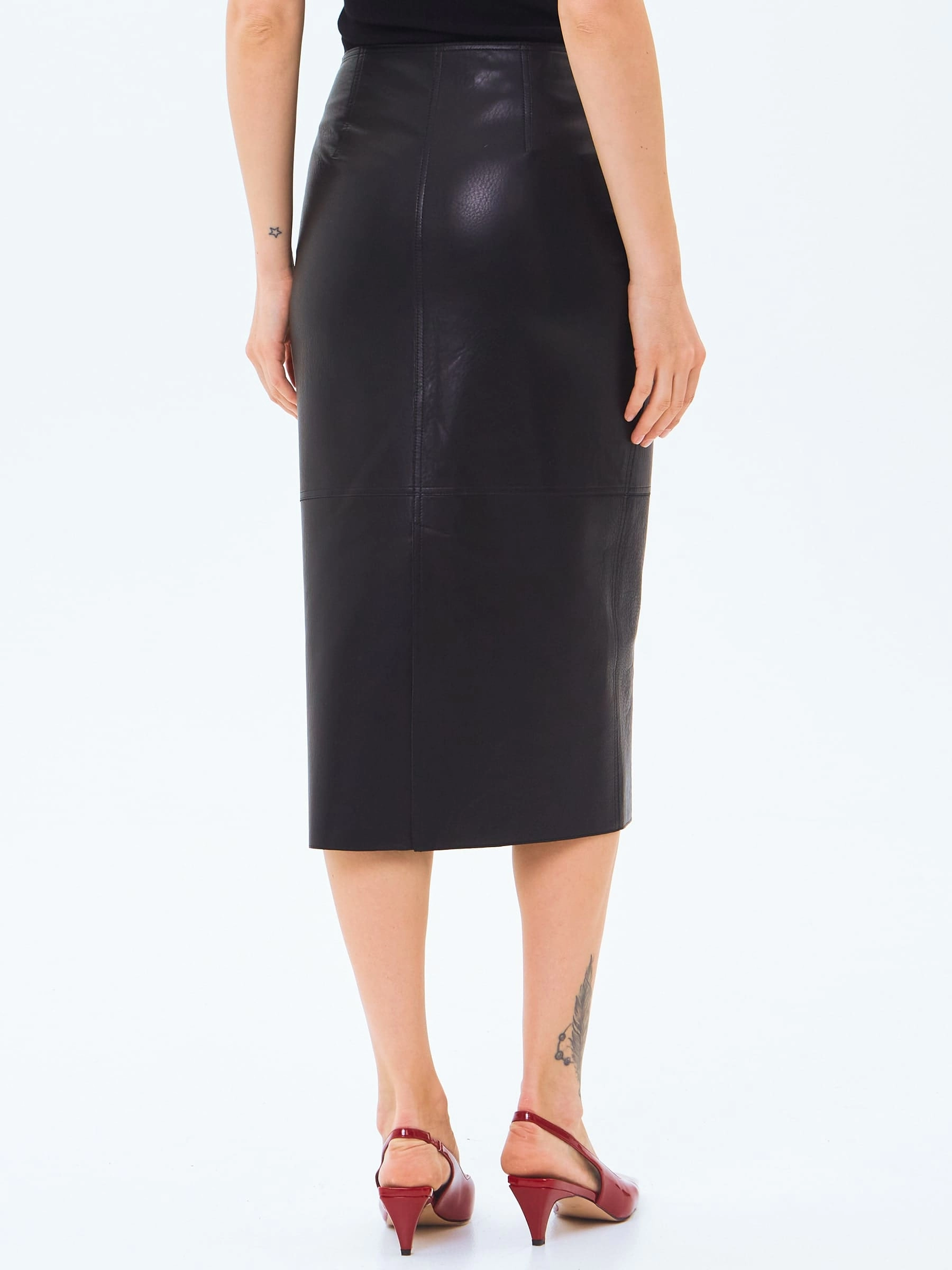 Кожаная юбка-карандаш 18, черная, размер 50, артикул 86000