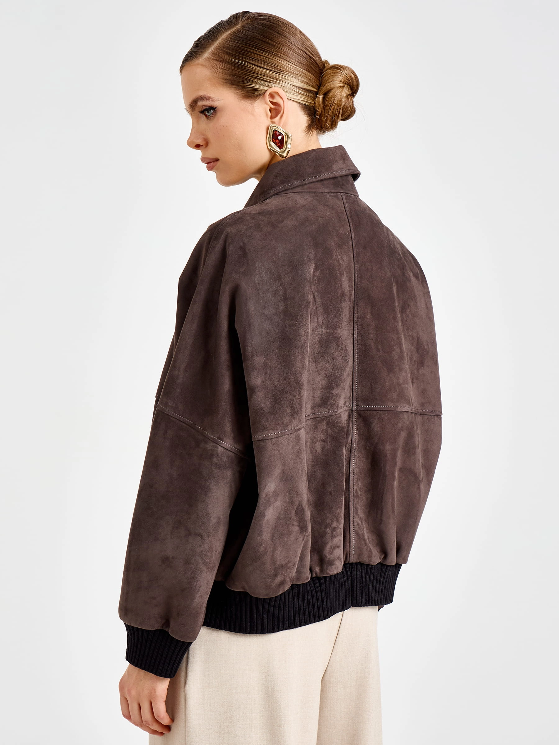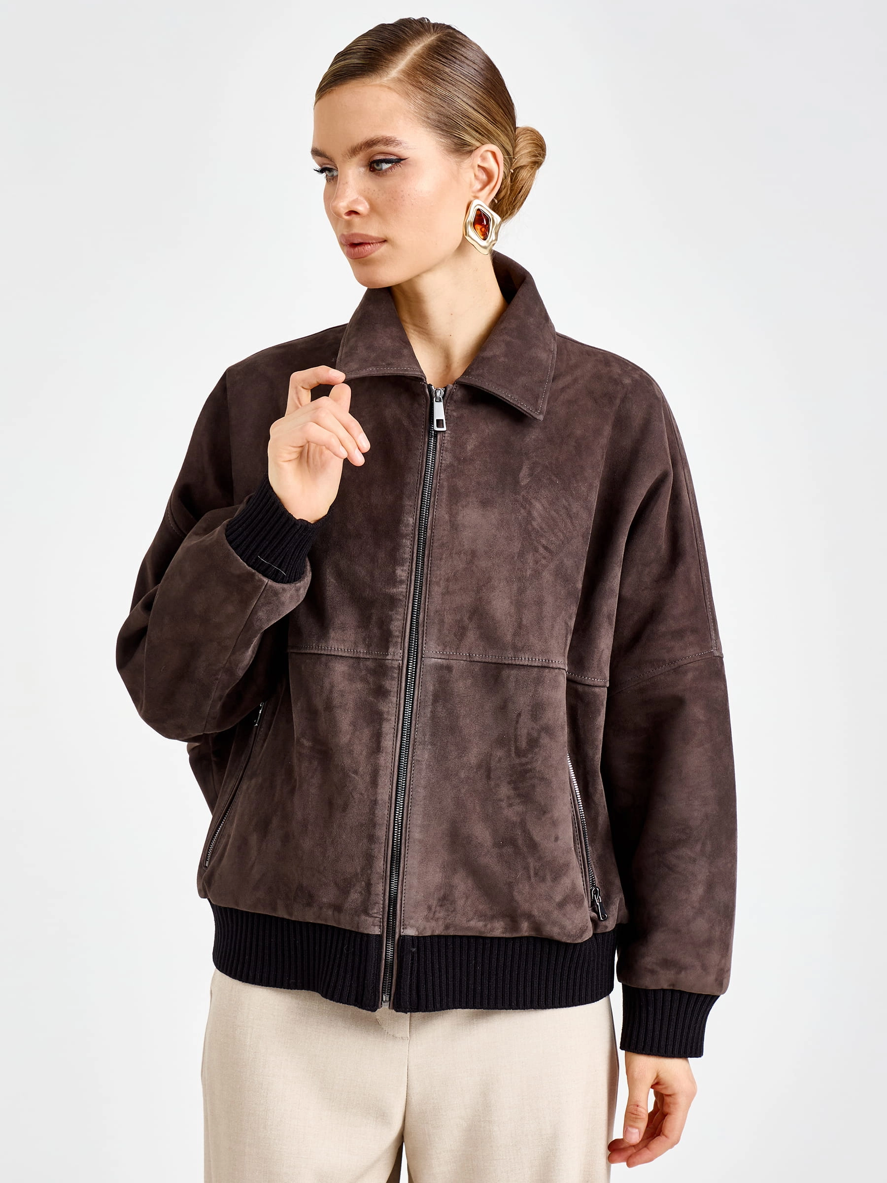 Женская замшевая куртка бомбер премиум класса 3106з, серая, размер 46, артикул 92430