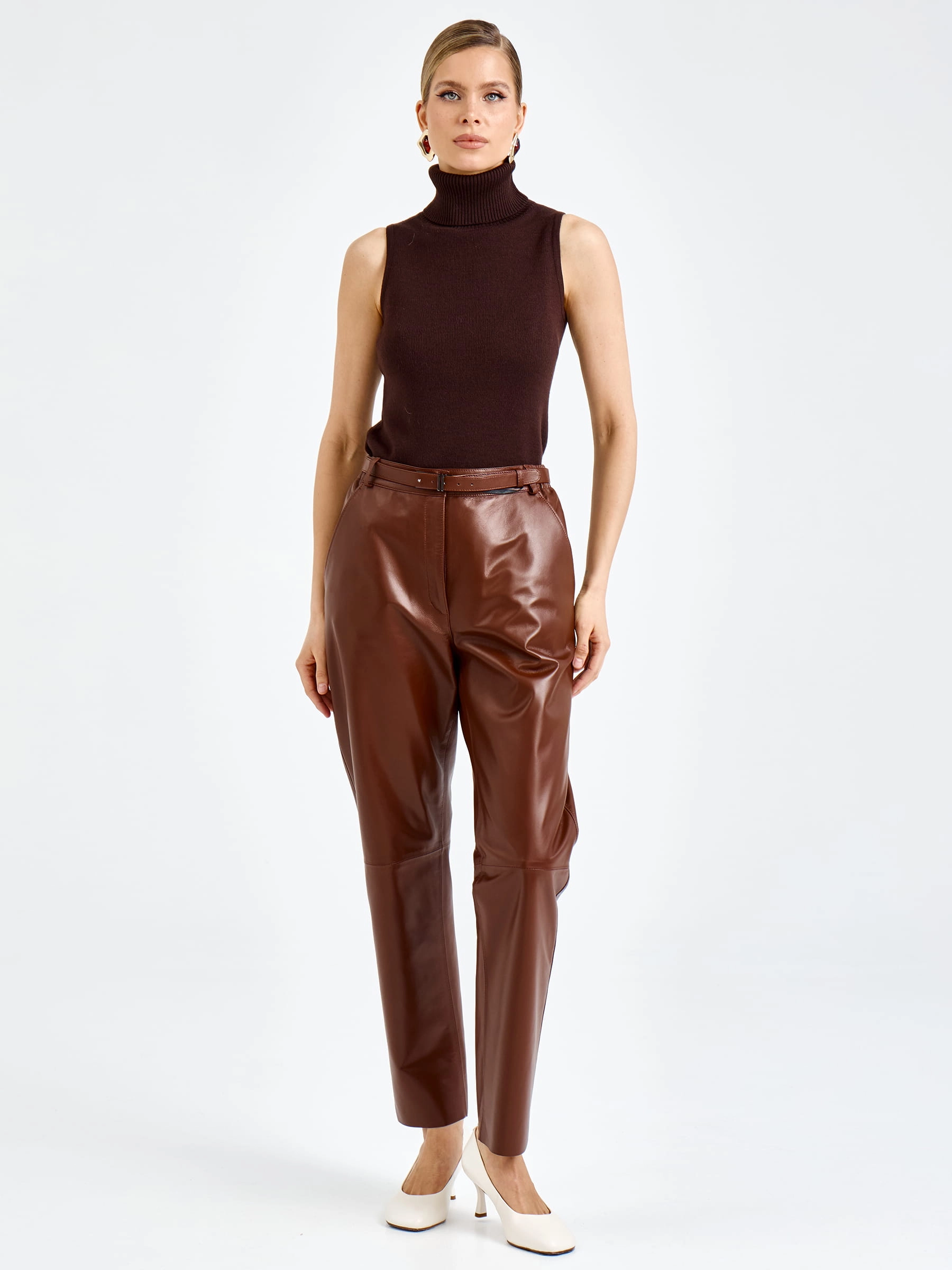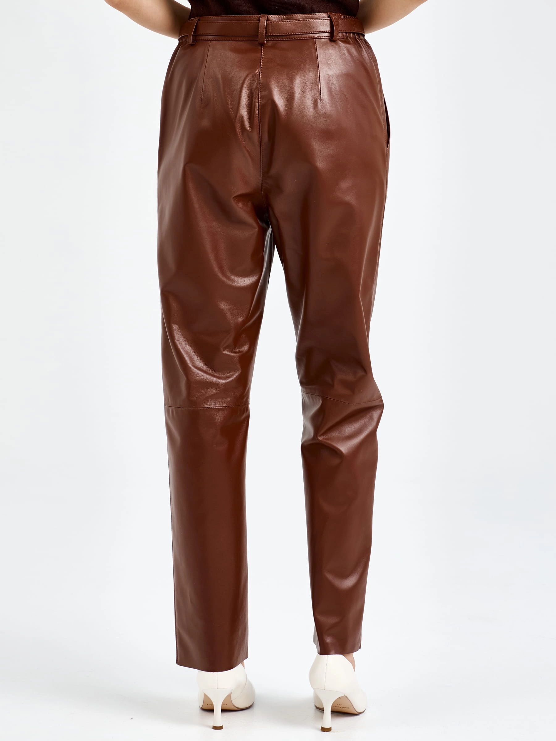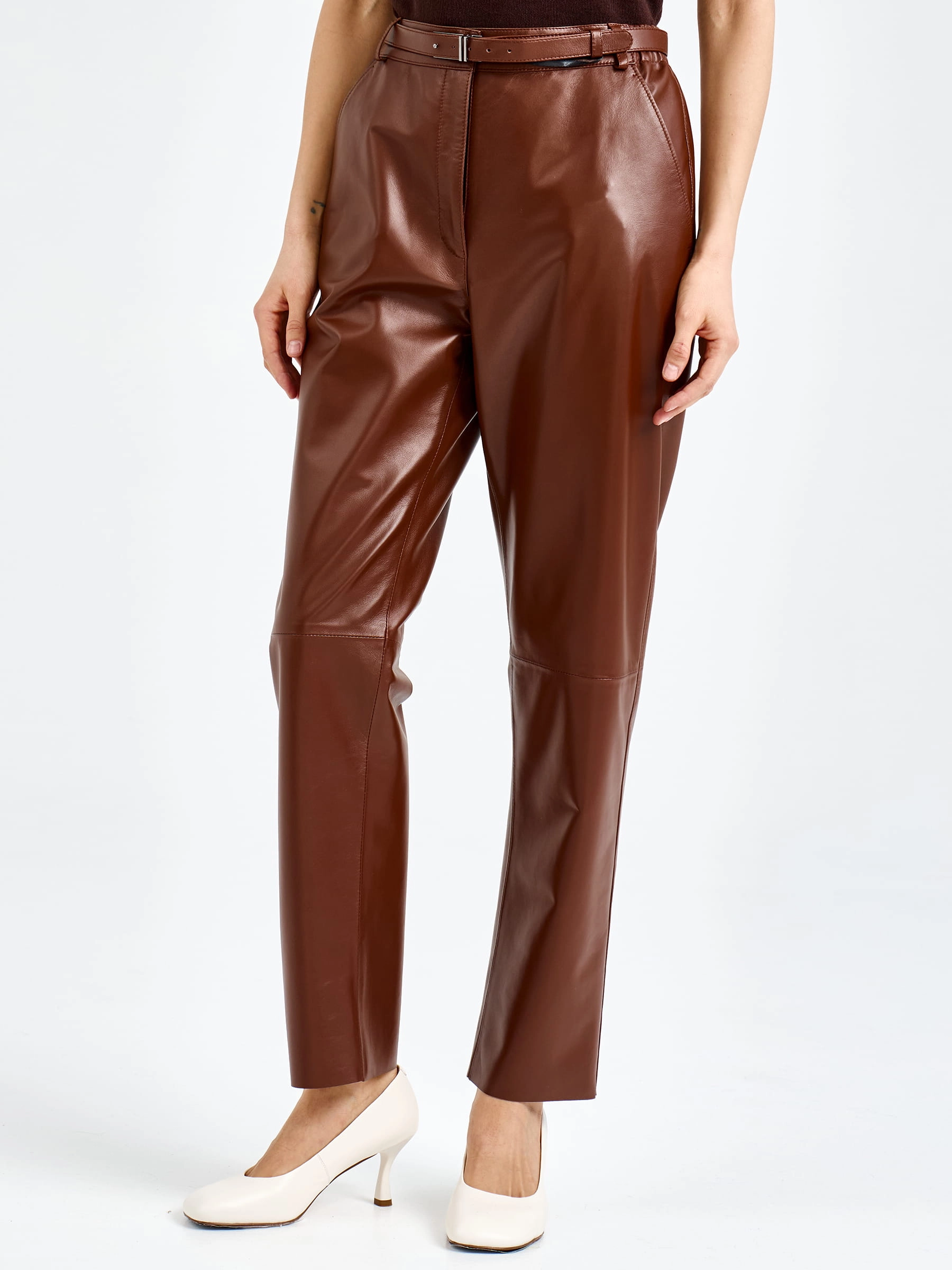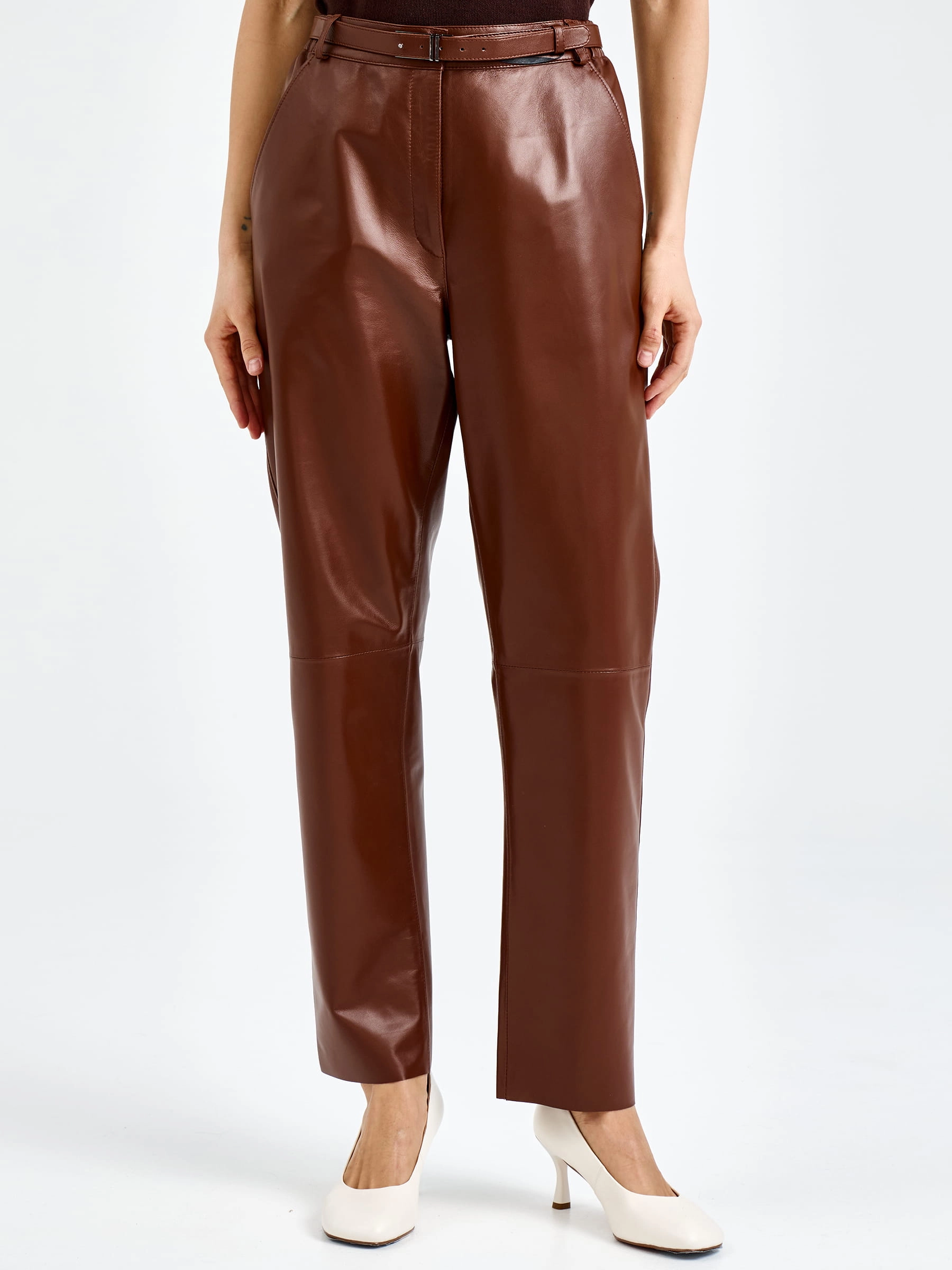 Женские кожаные брюки премиум класса 04, виски, размер 48, артикул 92610