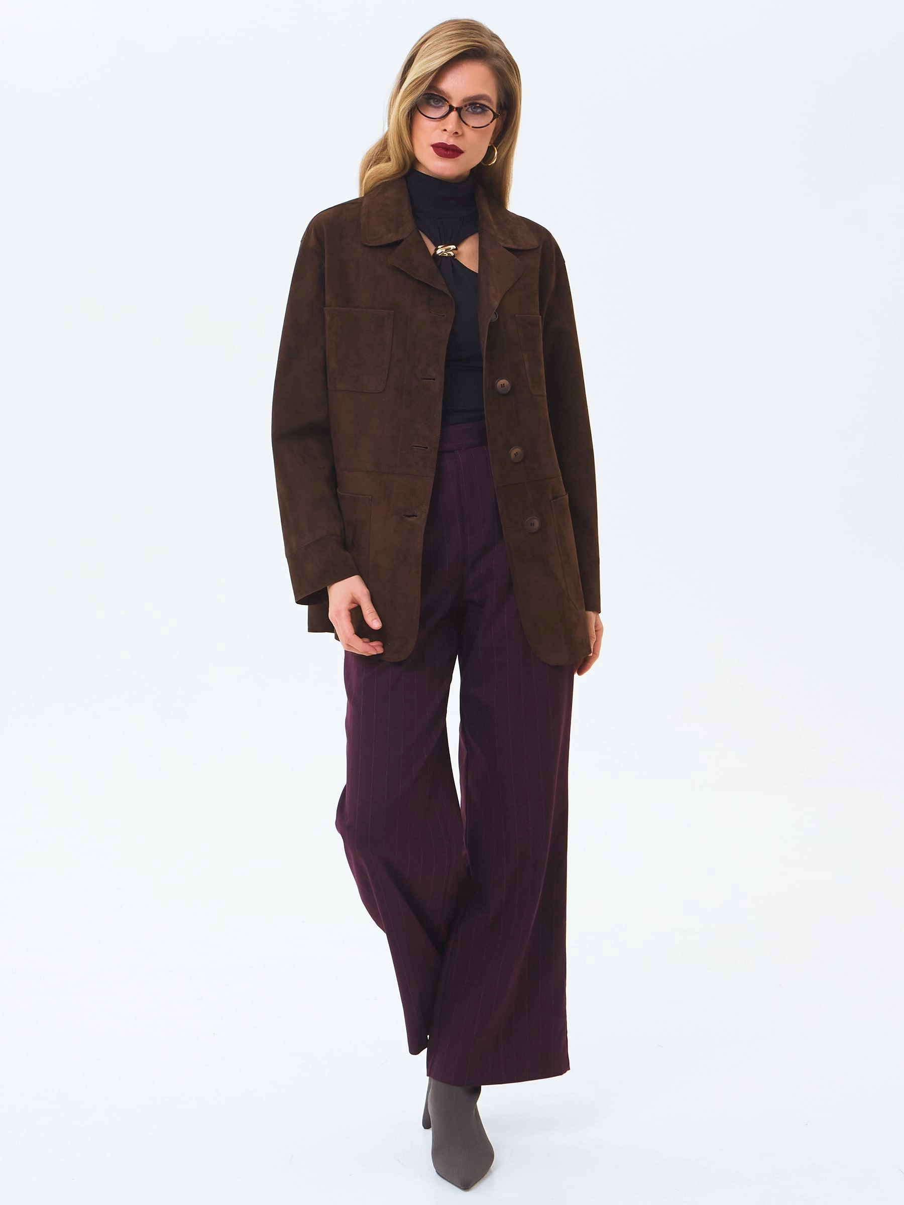 Женский замшевый пиджак премиум класса 3092з, коричневый, размер 44, артикул 24640