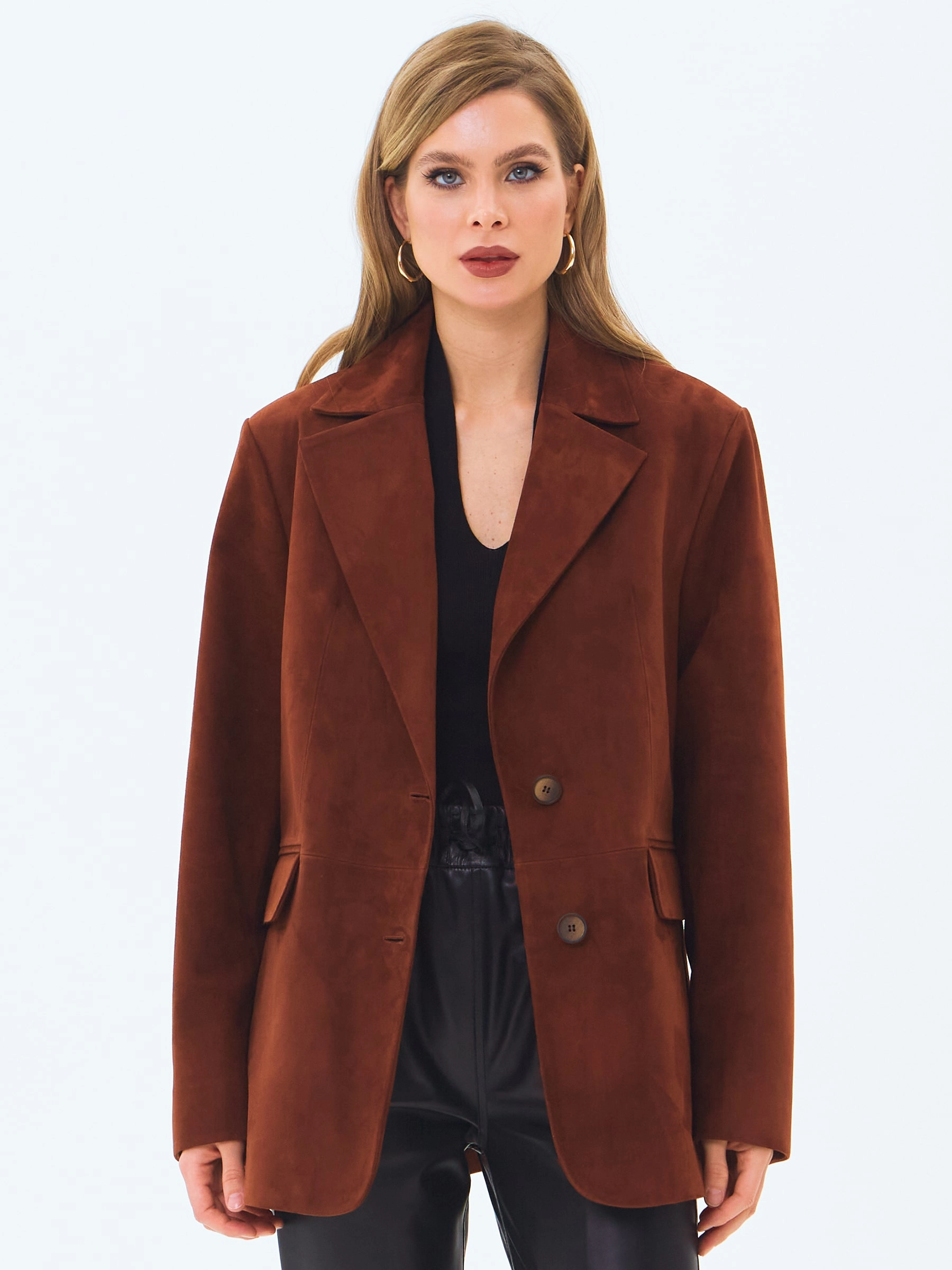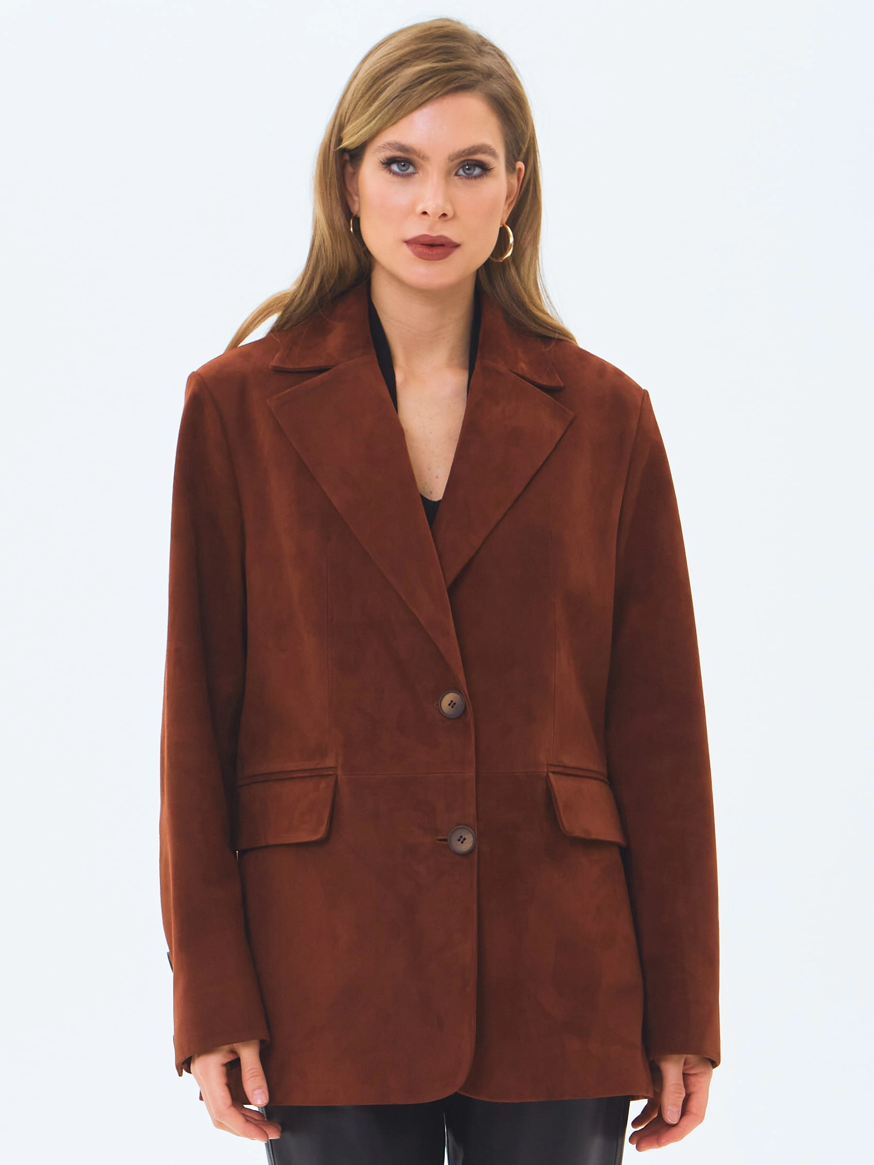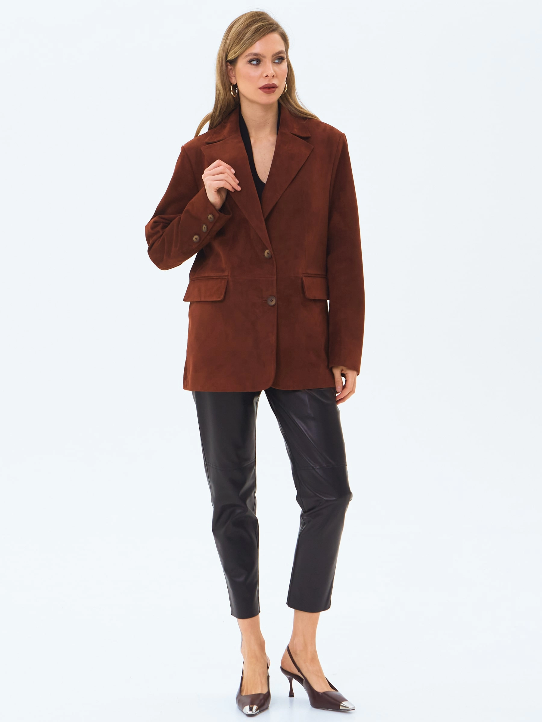 Женский замшевый пиджак премиум класса 3096з, табачный, размер 48, артикул 24370
