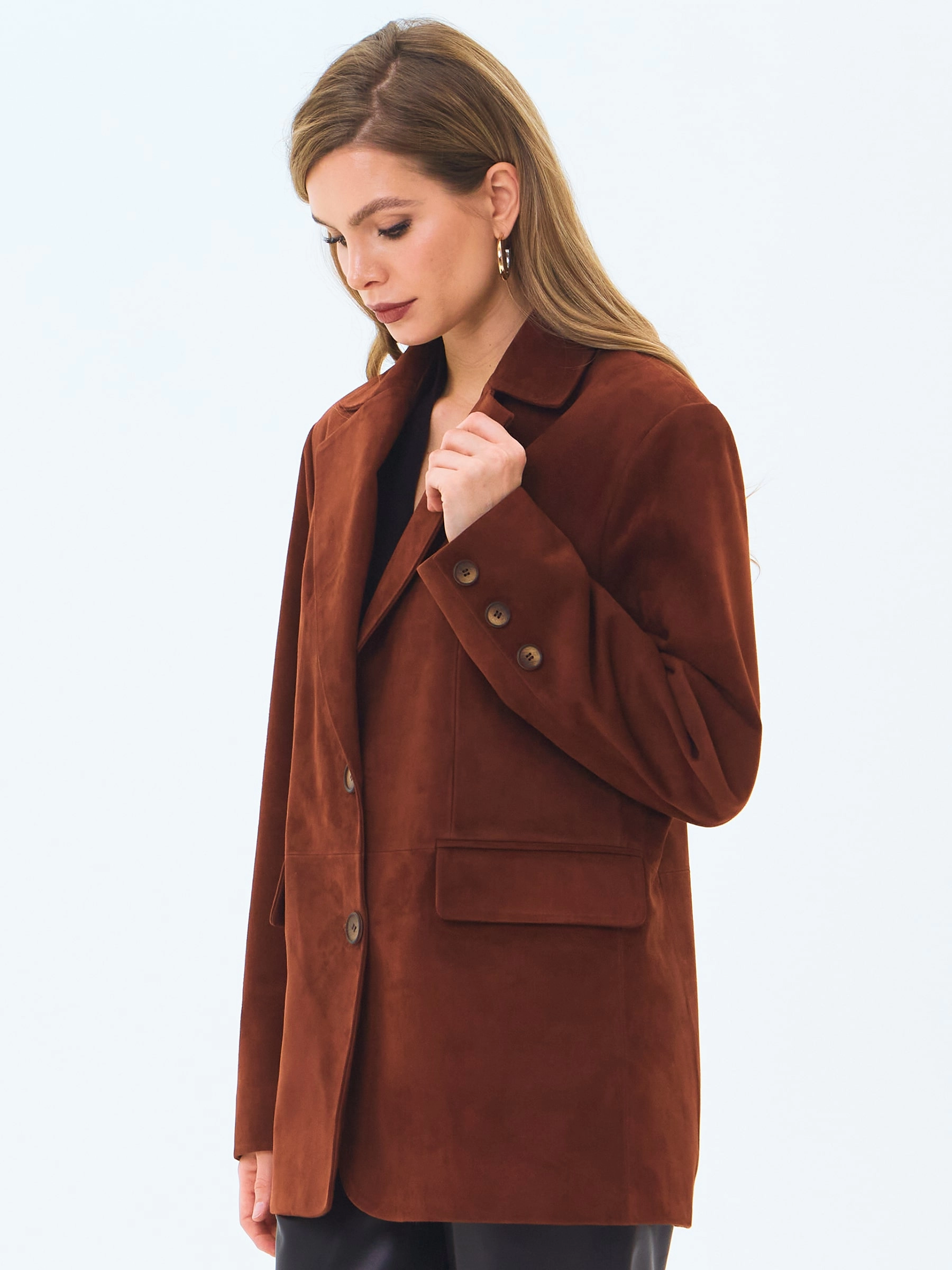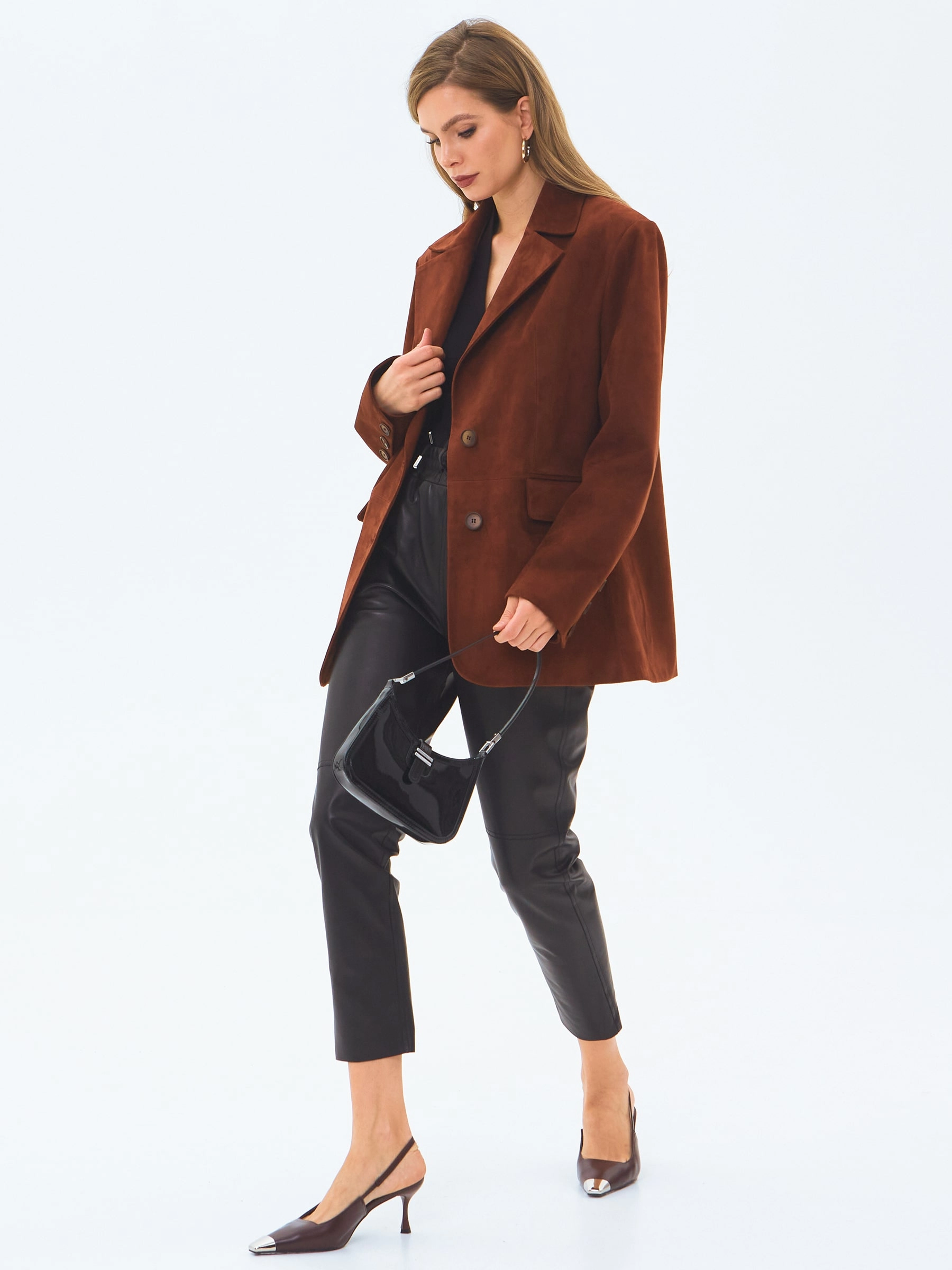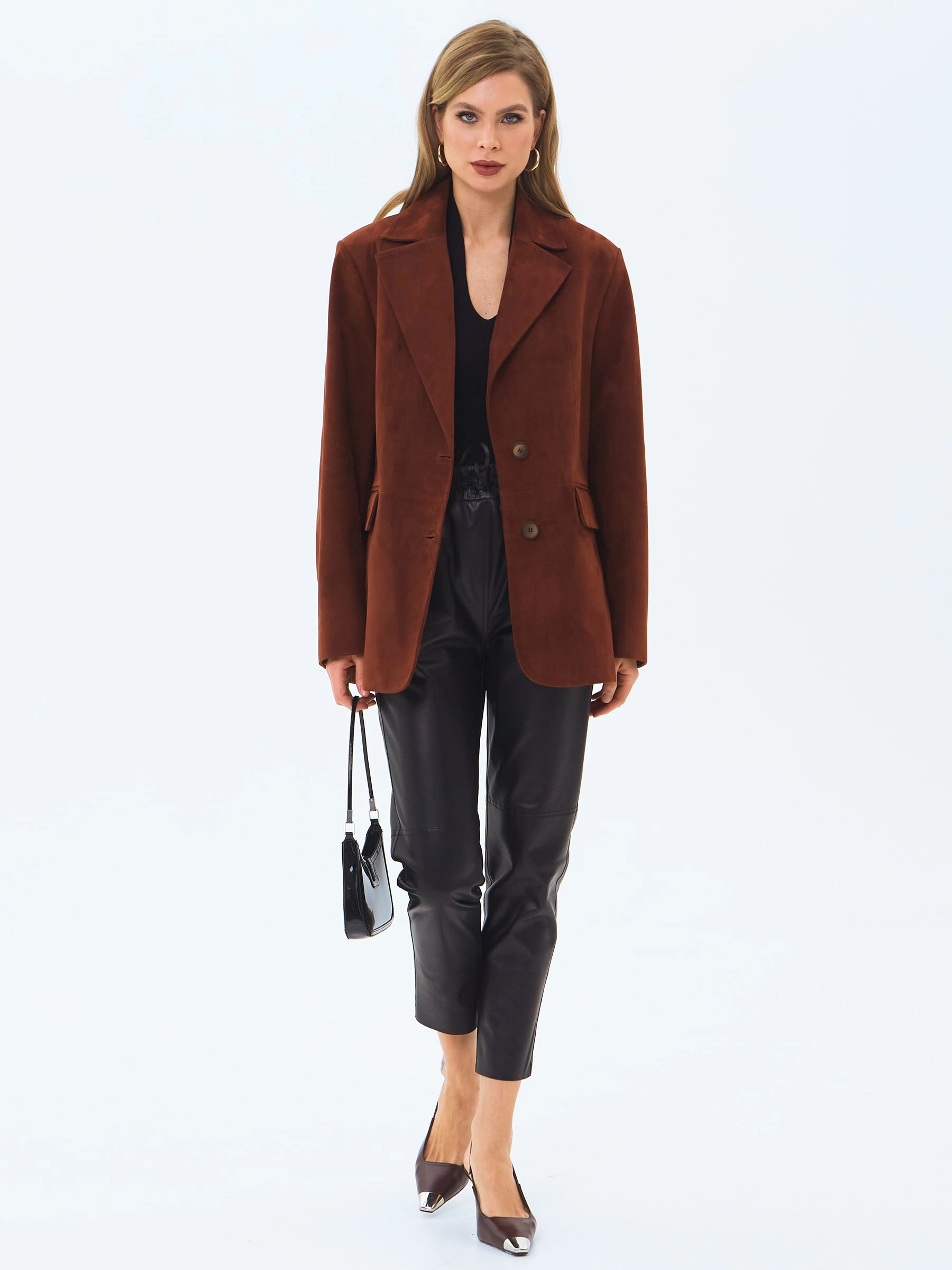 Женский замшевый пиджак премиум класса 3096з, табачный, размер 48, артикул 24370