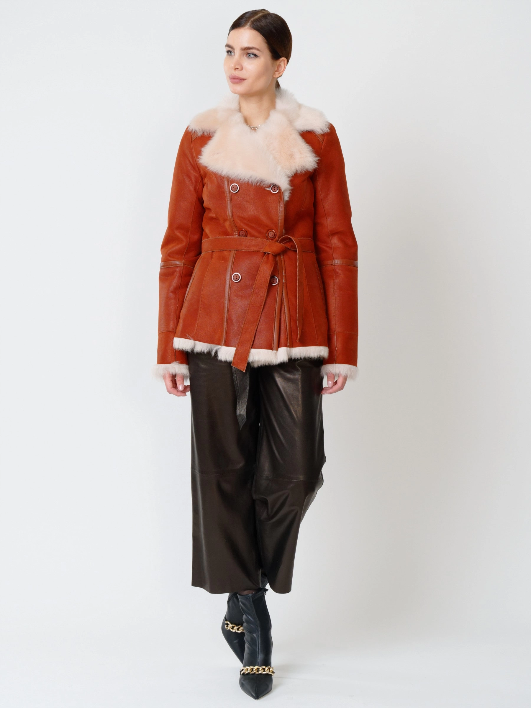 Самое время подготовить свой гардероб к зиме. Классическая дубленка из тосканской овчины легко справится с русскими морозами. Дубленка получилась уютной и теплой. Отличное сочетание составят широкие брюки из натуральной кожи. Безупречная элегантность и актуальная классика. Великолепная посадка. Качество в каждой строчке.