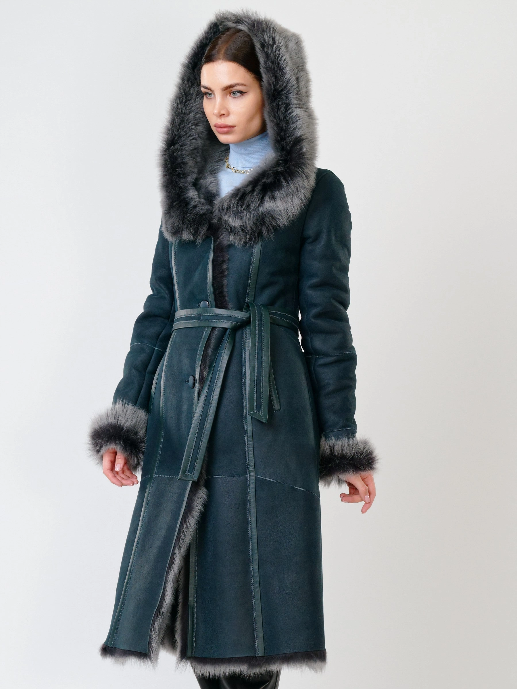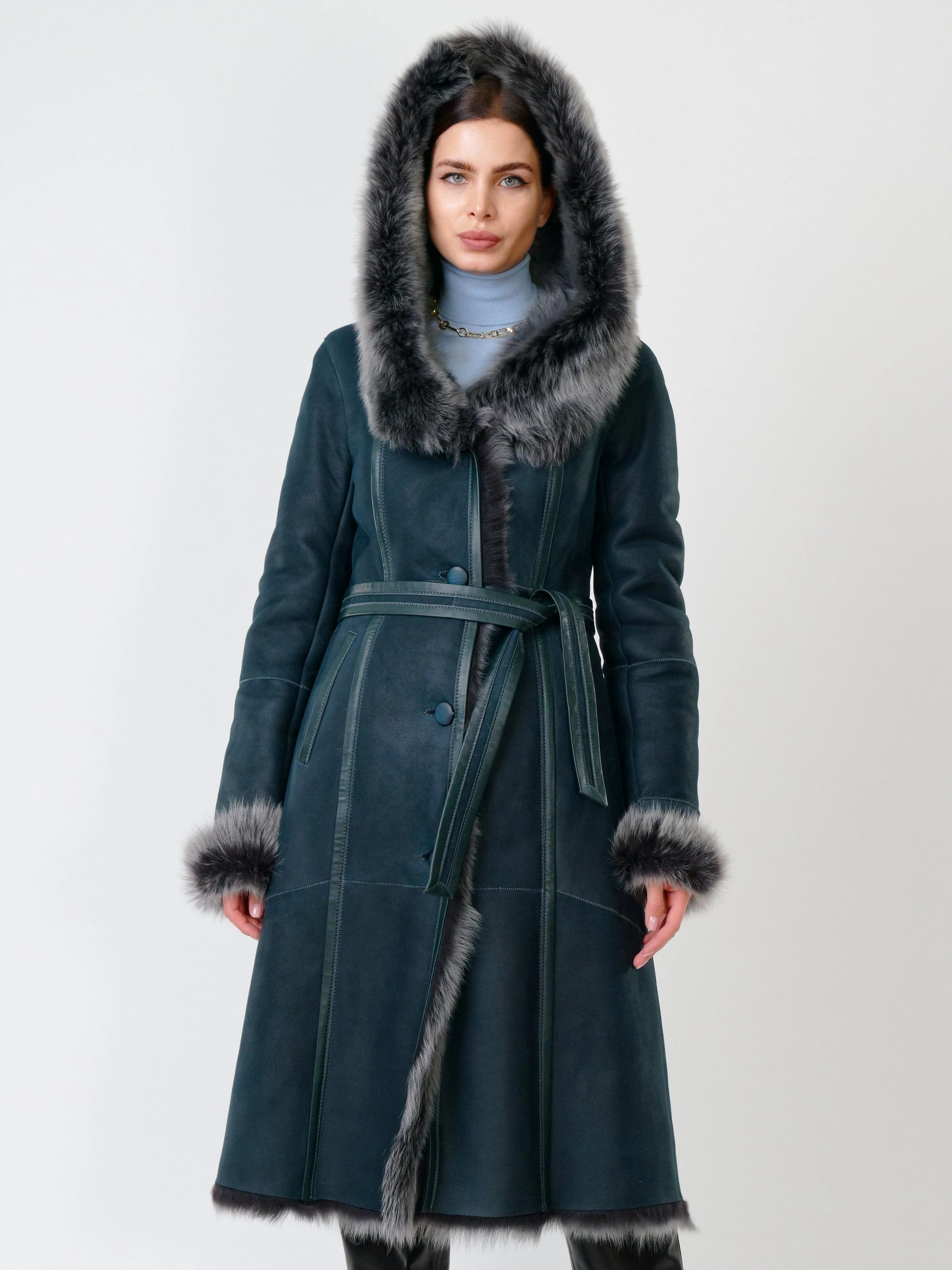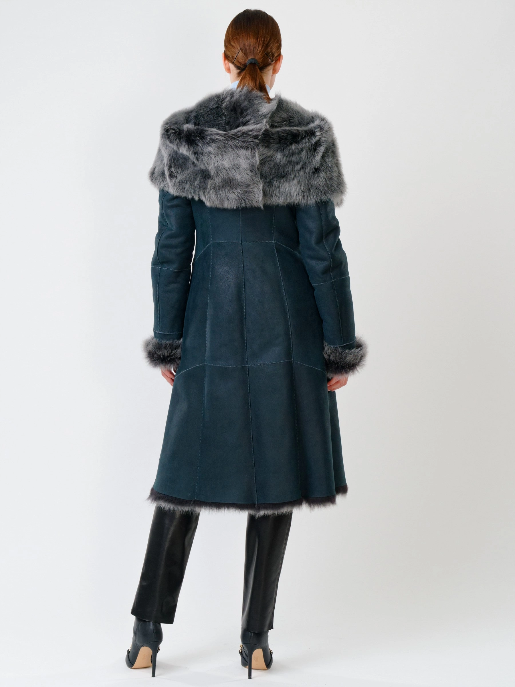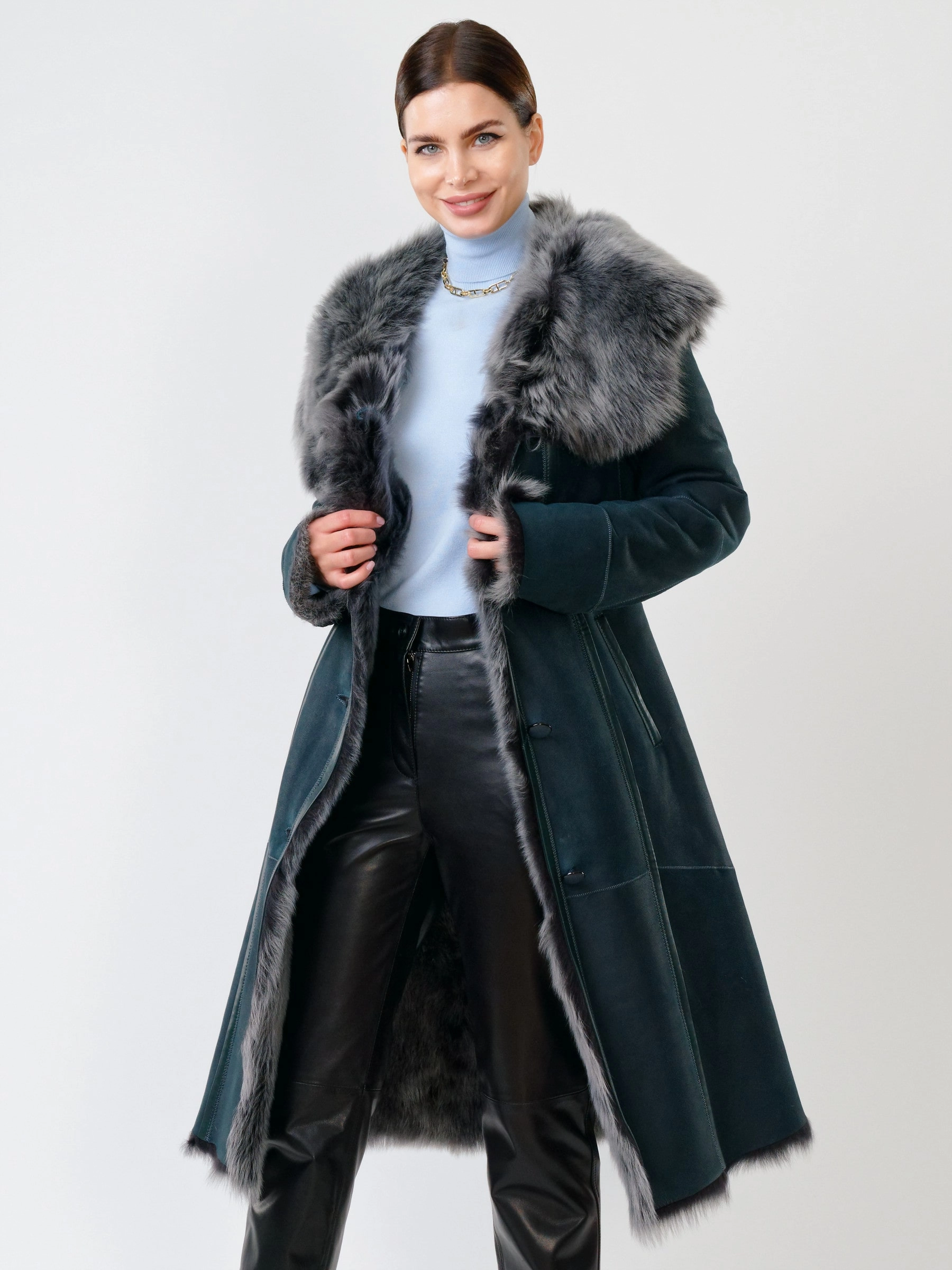 Зимний комплект женский: Дубленка 132 + Брюки 03, синий/черный, р. 44, арт. 111355