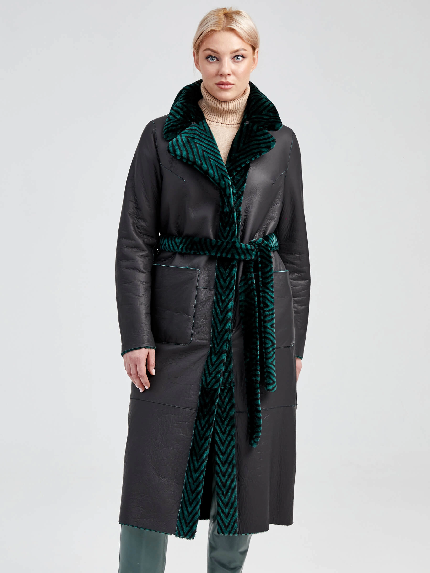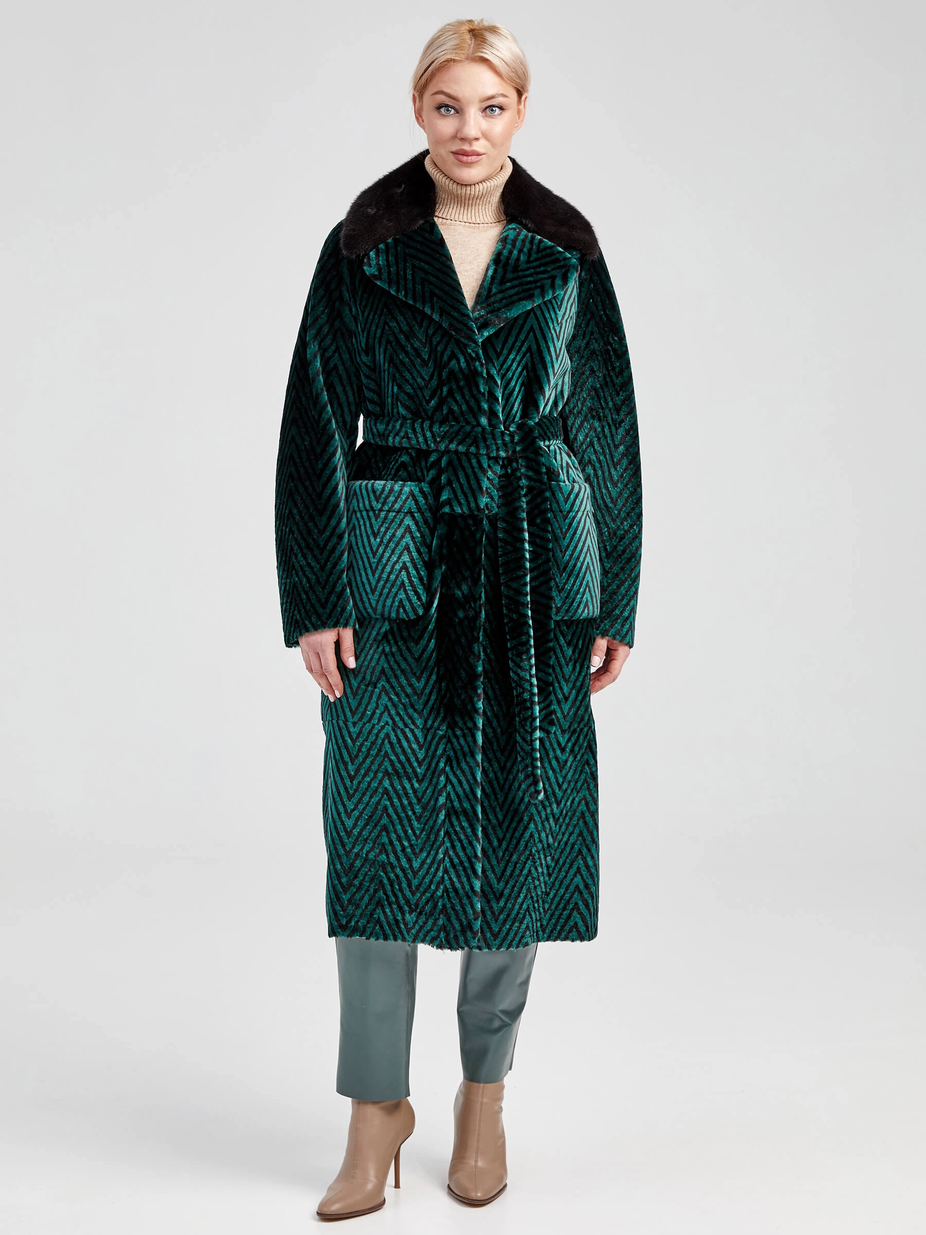 Зимний комплект женский: Дубленка 2003 + Брюки 03, зеленый/оливковый, р. 46, арт. 111307