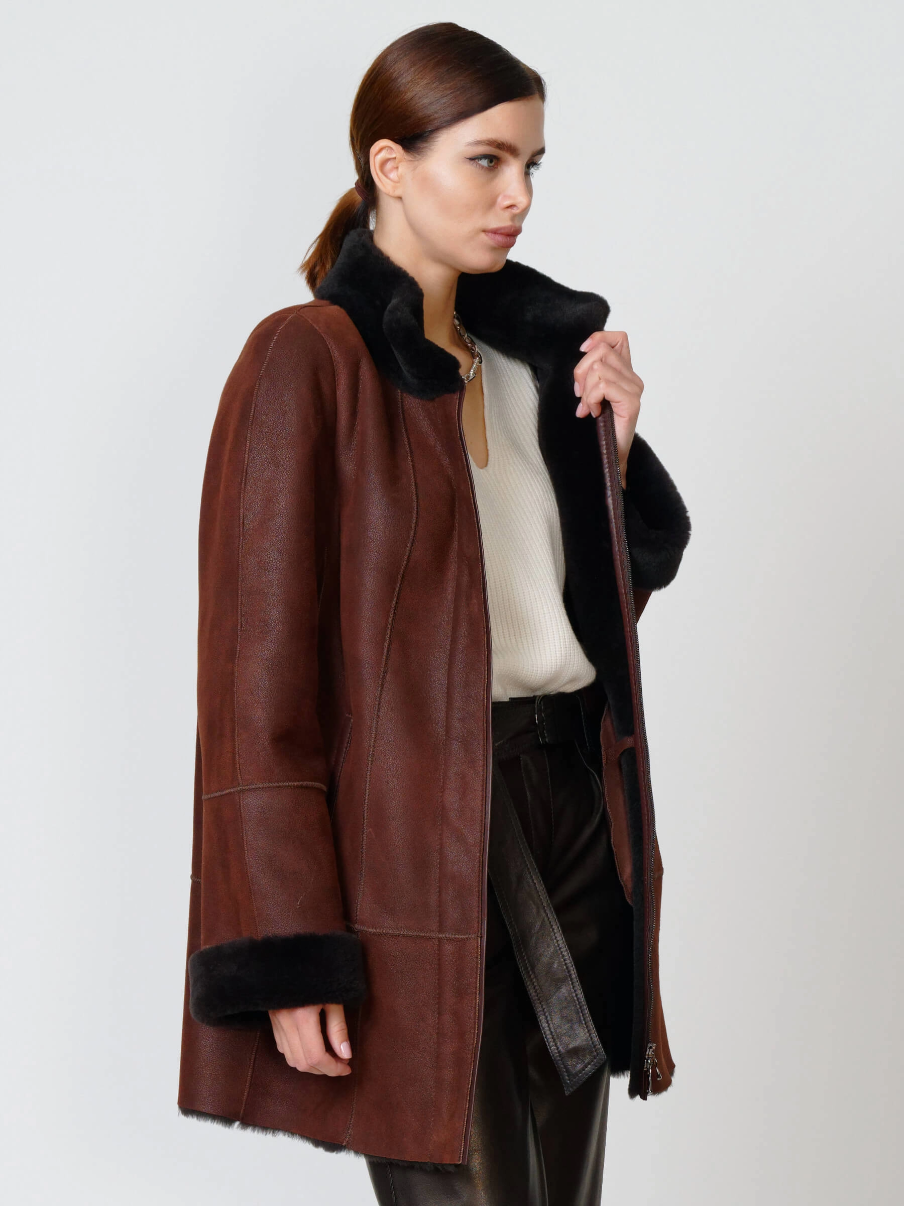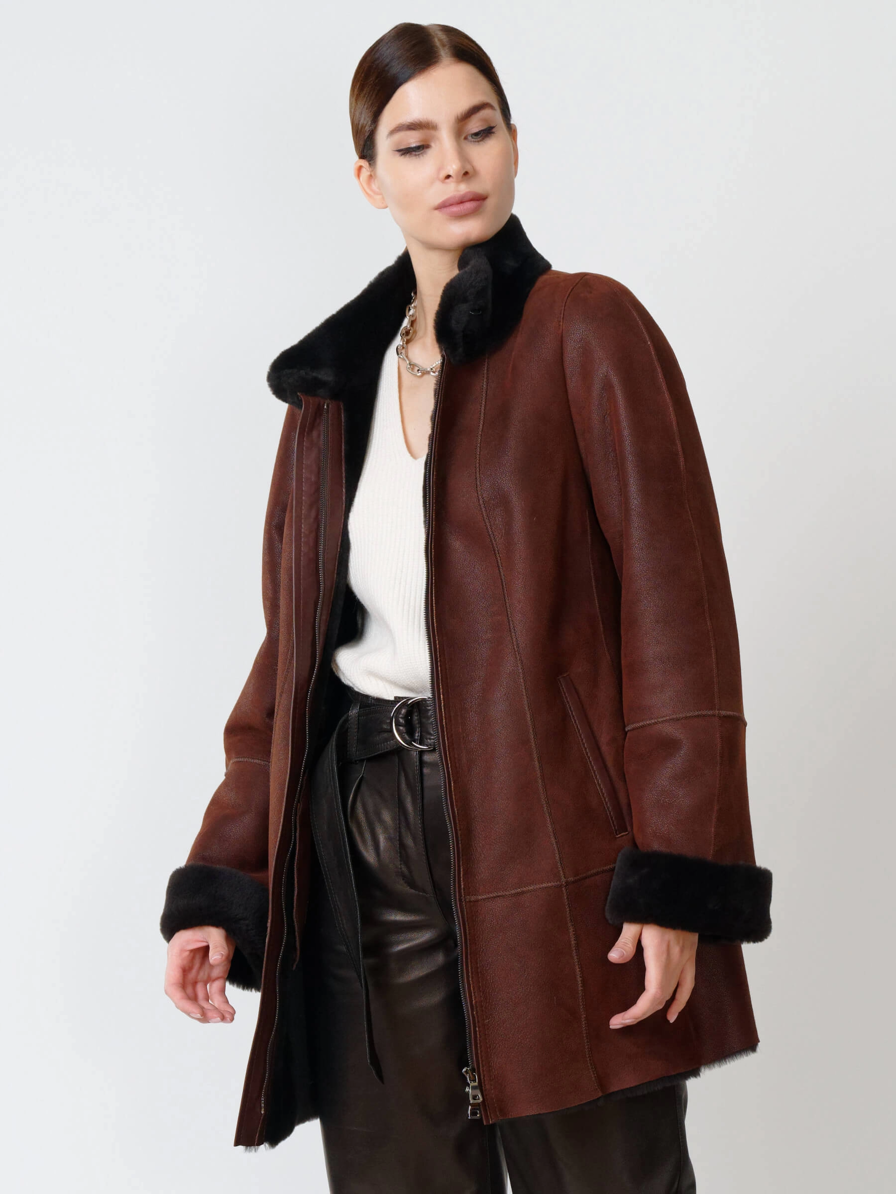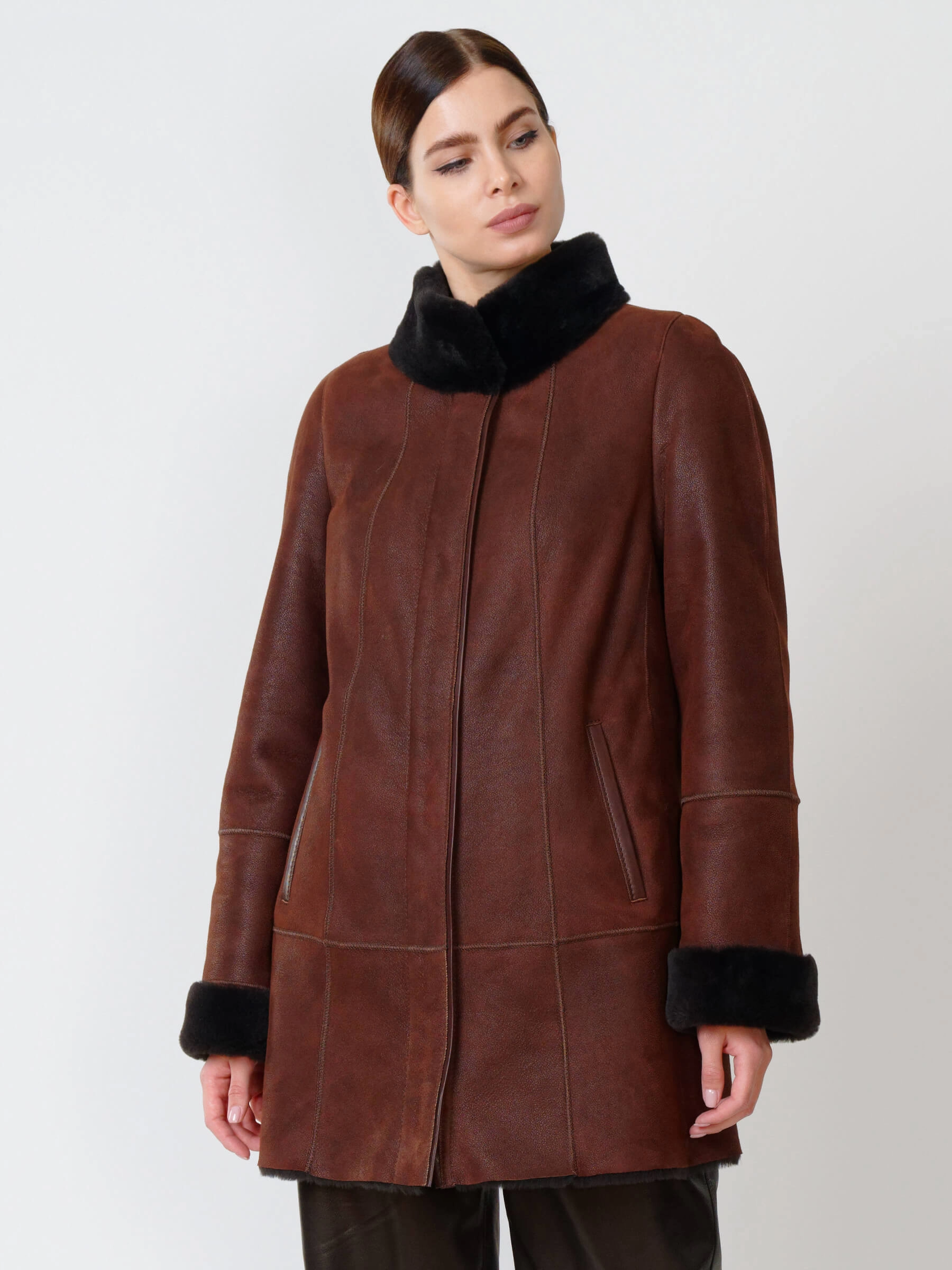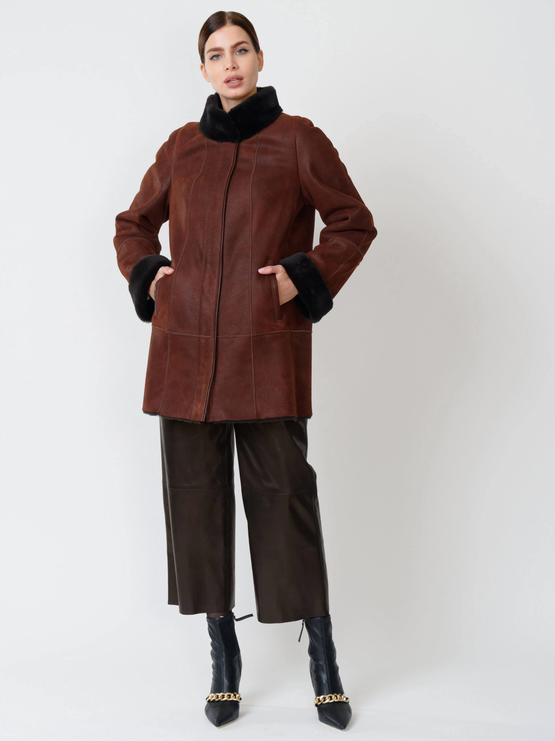 Зимний комплект женский: Дубленка 267 + Брюки 05, виски/черный, р. 44, арт. 111290