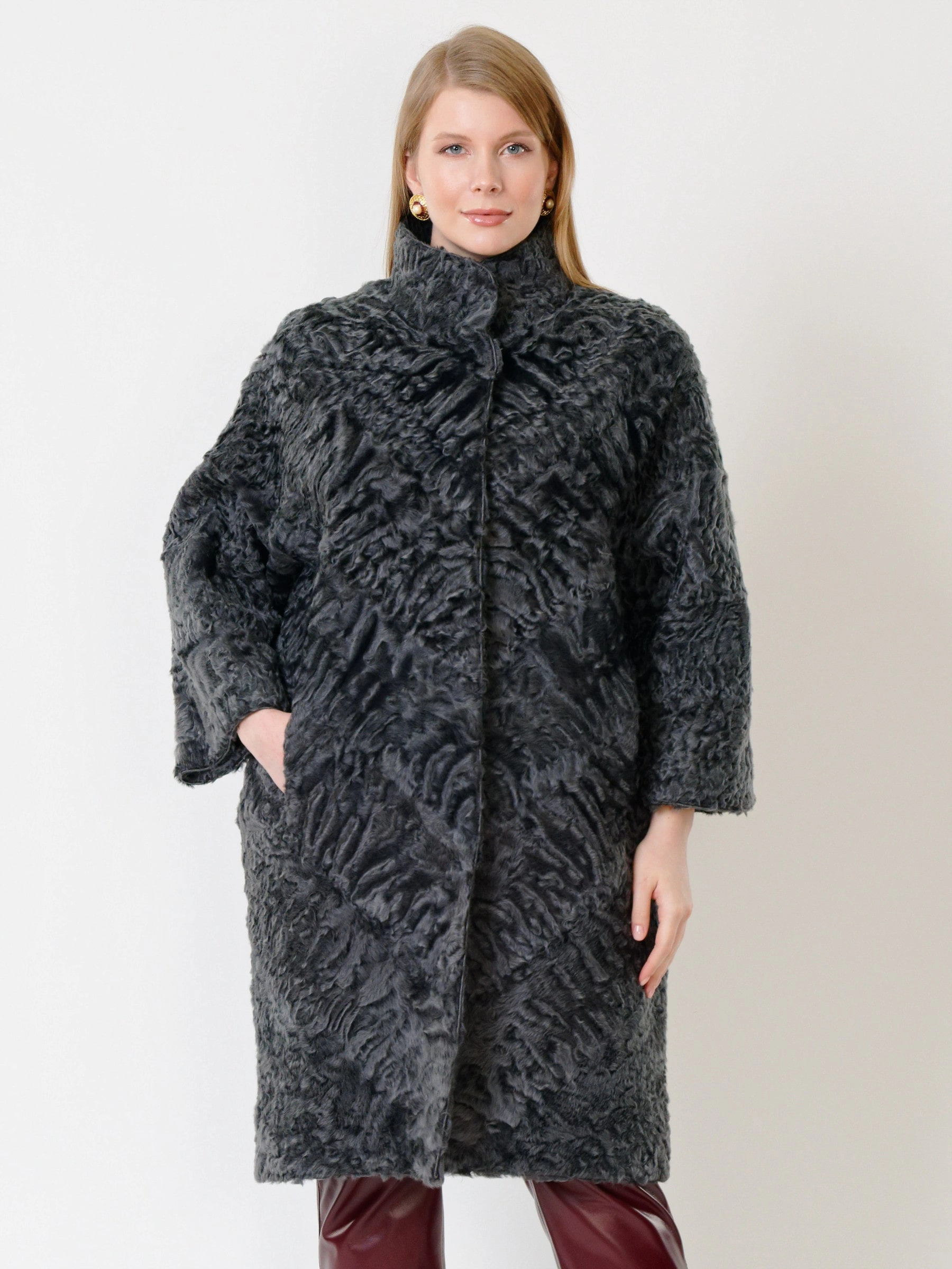 Товар зимний комплект женский: шуба из каракуля 17106д + брюки 02, серый/бордовый, р. 52, арт. 111371.