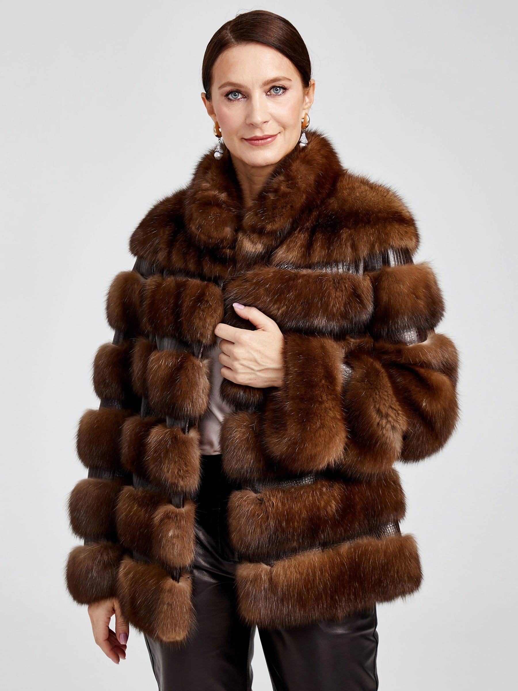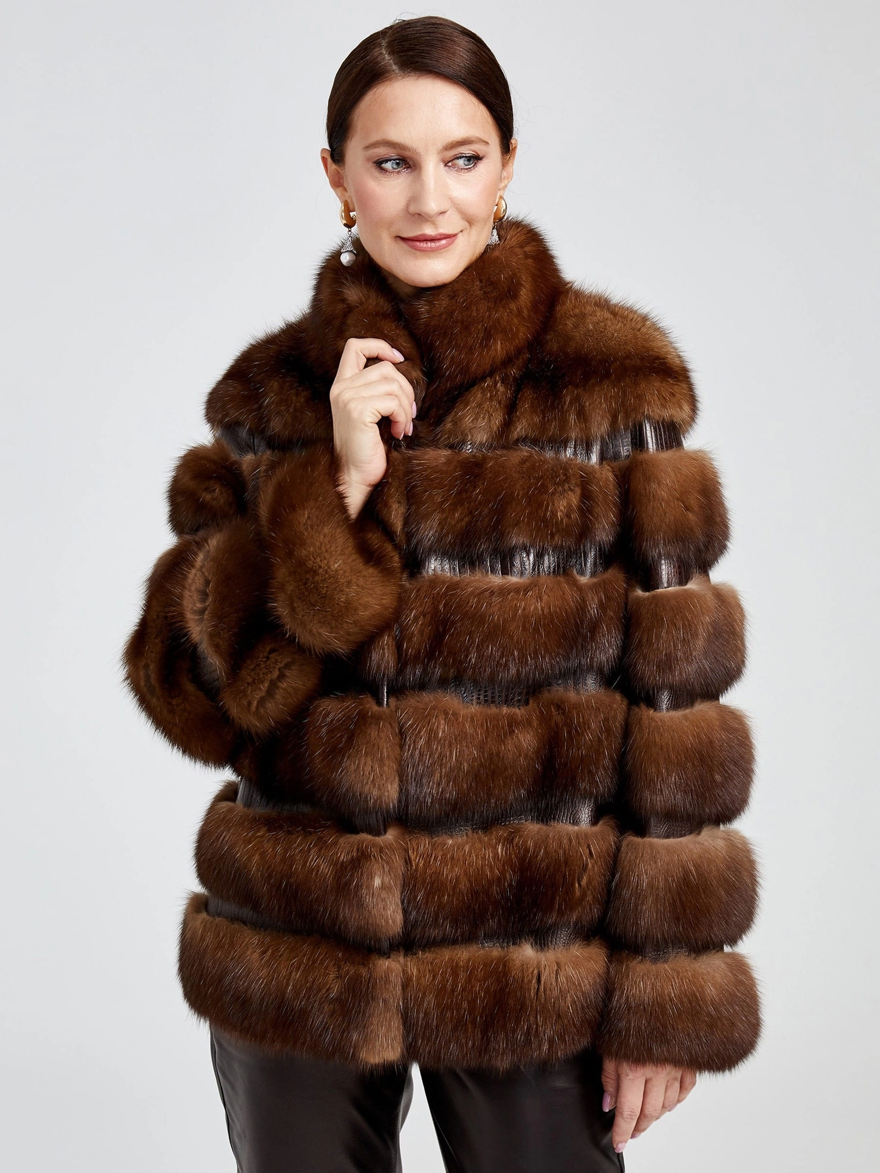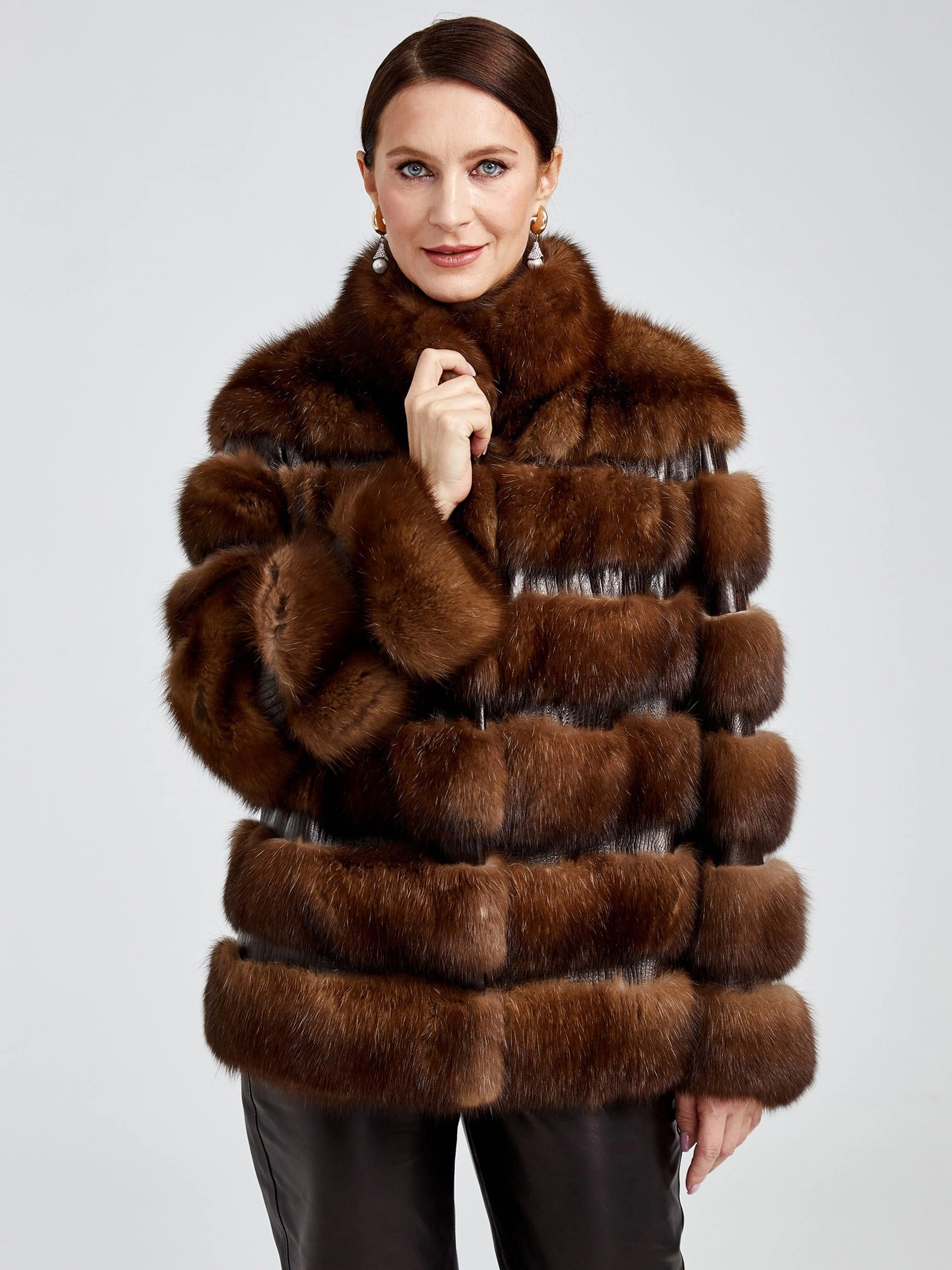 Товар зимний комплект женский: шуба из меха соболя с-2 ребекка + брюки 02, коричневый/черный, р. 44, арт. 111317.
